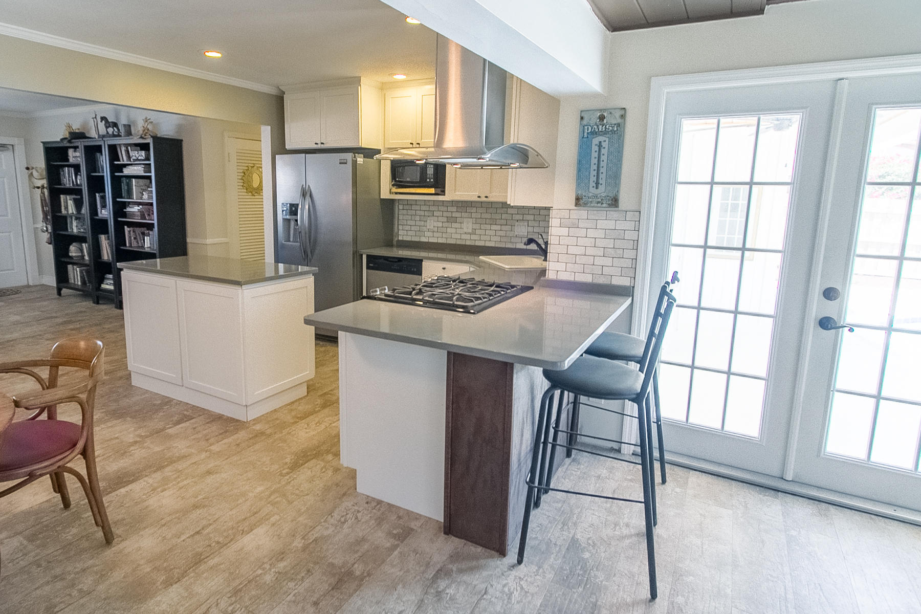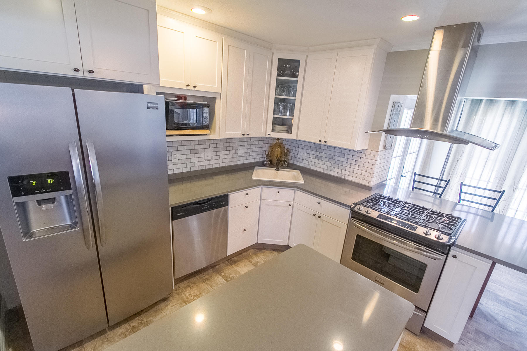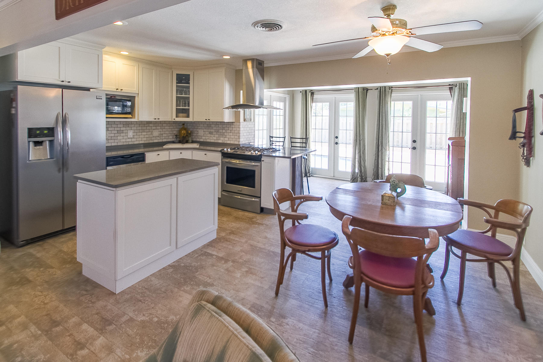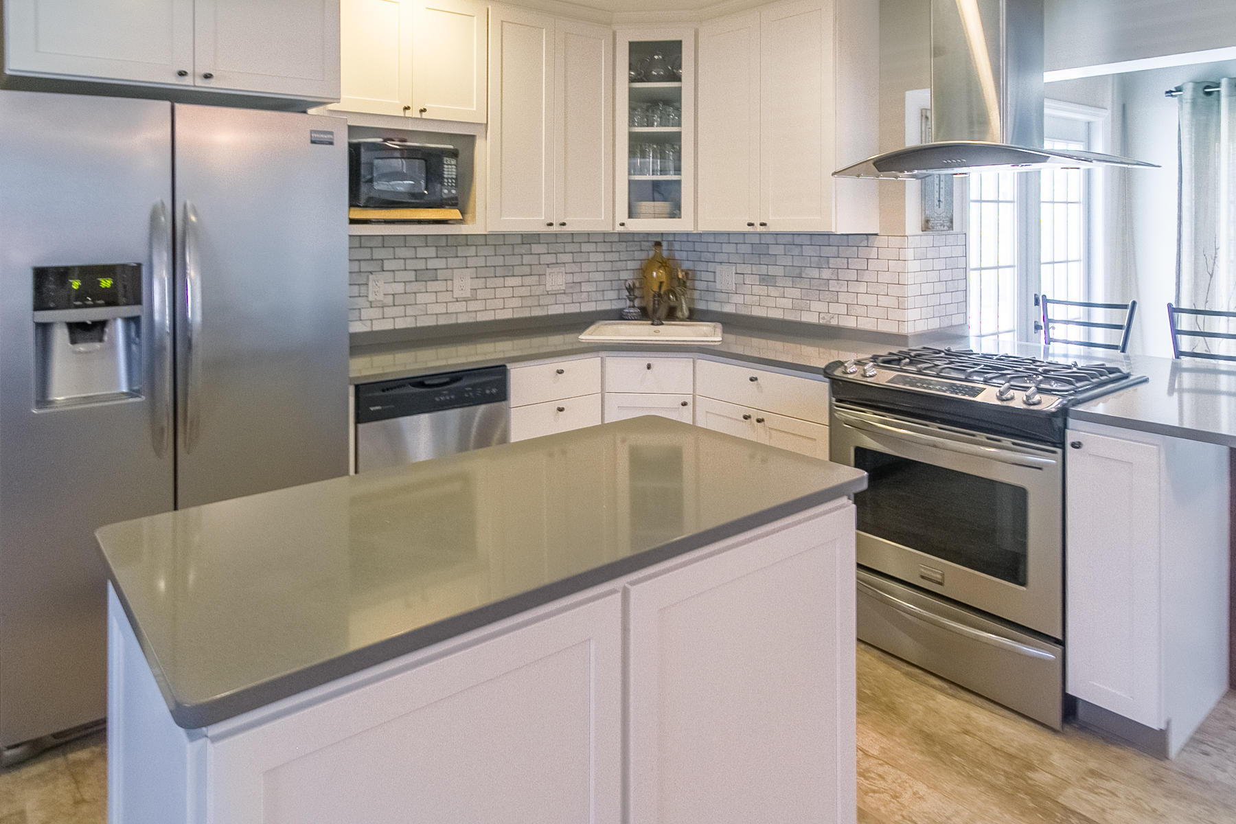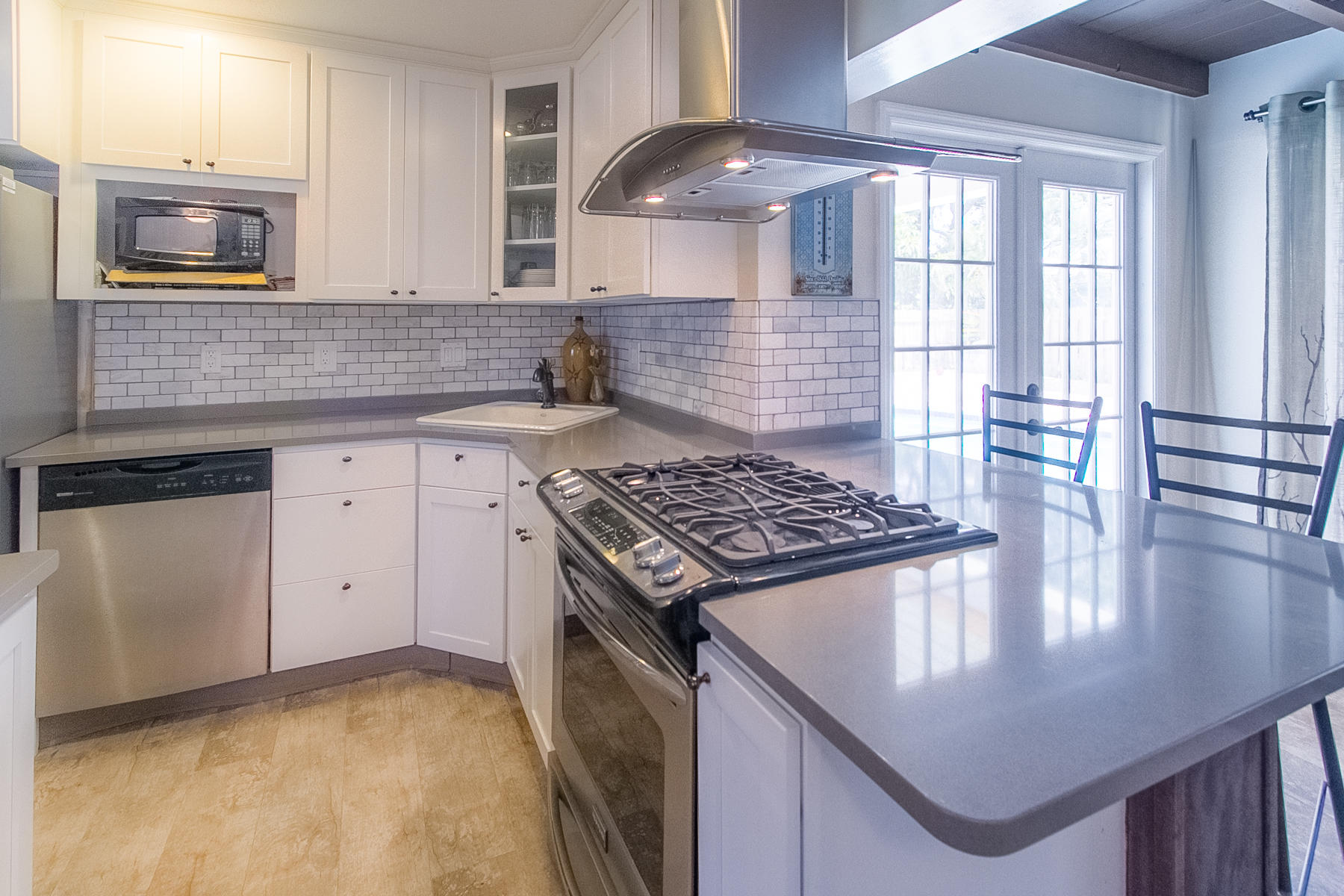 Charming Boca Raton pool home in high demand Boca Raton Square with highly rated schools with great features including and a completely redesigned open kitchen in with gas range and stainless appliances, new beautiful neutral porcelain flooring THROUGHOUT the home, bathrooms remodeled all in 2013, gutters installed in 2011, newer A/C condenser (2014) and newer S-style roof installed in 2011, storm protection with use of impact windows, accordion shutters, and wood shutters, cabana Bath directly off the pool, gas from city for the range and hot water heater, new electric panel and house rewired 2012, brick driveway 2013 and large brick patio adjacent to pool, fence doors and wood beamed ceiling in dining area off pool, and sought after SE exposure.