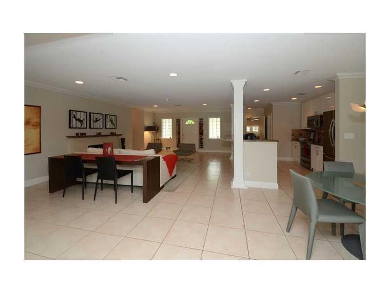 Contemporary 4BR/2.5BA offers a sought-after open floor plan with a modern, open kitchen, impact windows/doors, a fireplace and private, fenced yard with resort-style heated pool and brick terrace. Colorful tropical gardens surround the homes entry and le ad to a welcoming front porch. The quad-split bedroom design offers privacy and flexibility of use. Interior space is ideal for entertaining with public rooms flowing one to the next and opening onto the pool.
