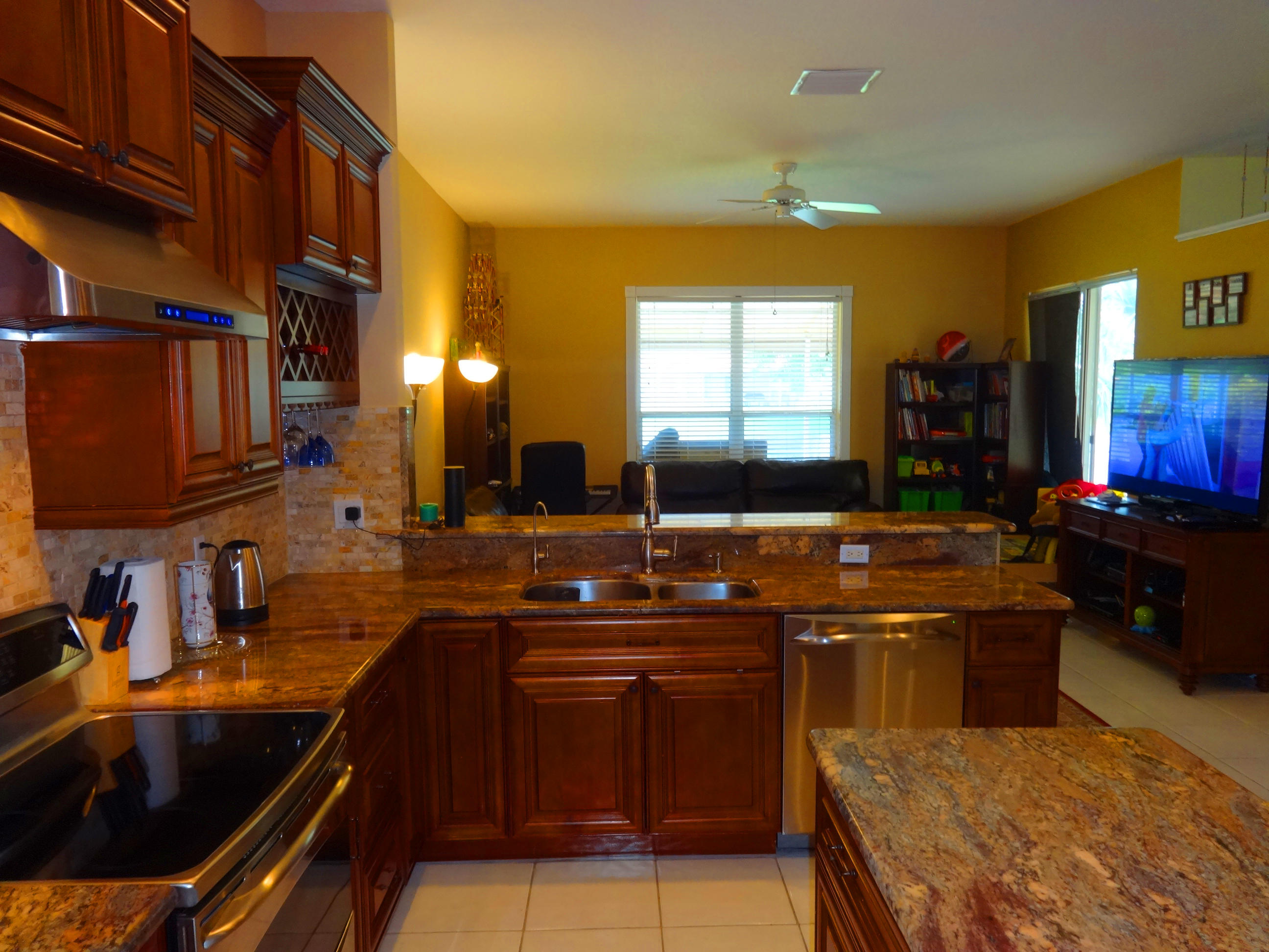 Stunning 3 bedroom waterfront home with fenced backyard. Newer High end custom wood and granite kitchen. Spacious sun filled rooms whit popular layout. Screened patio over looking lush landscaping and tranquil lake.Kitchen & Appliances fully gutted and renovated Full solid wood cabinet panels and 3/4'' marine grade plywood frames,Soft Close Mechanism and very spacious pantry.Grade 3 Granited.Dual Spice Racks. Lazy Susan.All appliance are high end and were chosen personally after extensive research.The range hood is 900 cfm strong, gets the heat & smells from cooking out.Dishwasher is low noise model and you can barely hear it. refrigerator was the latest model with bottom freezer.The microwave has multiple modes including convection.Waters Edge Elementary top 2 in Palm Beach County