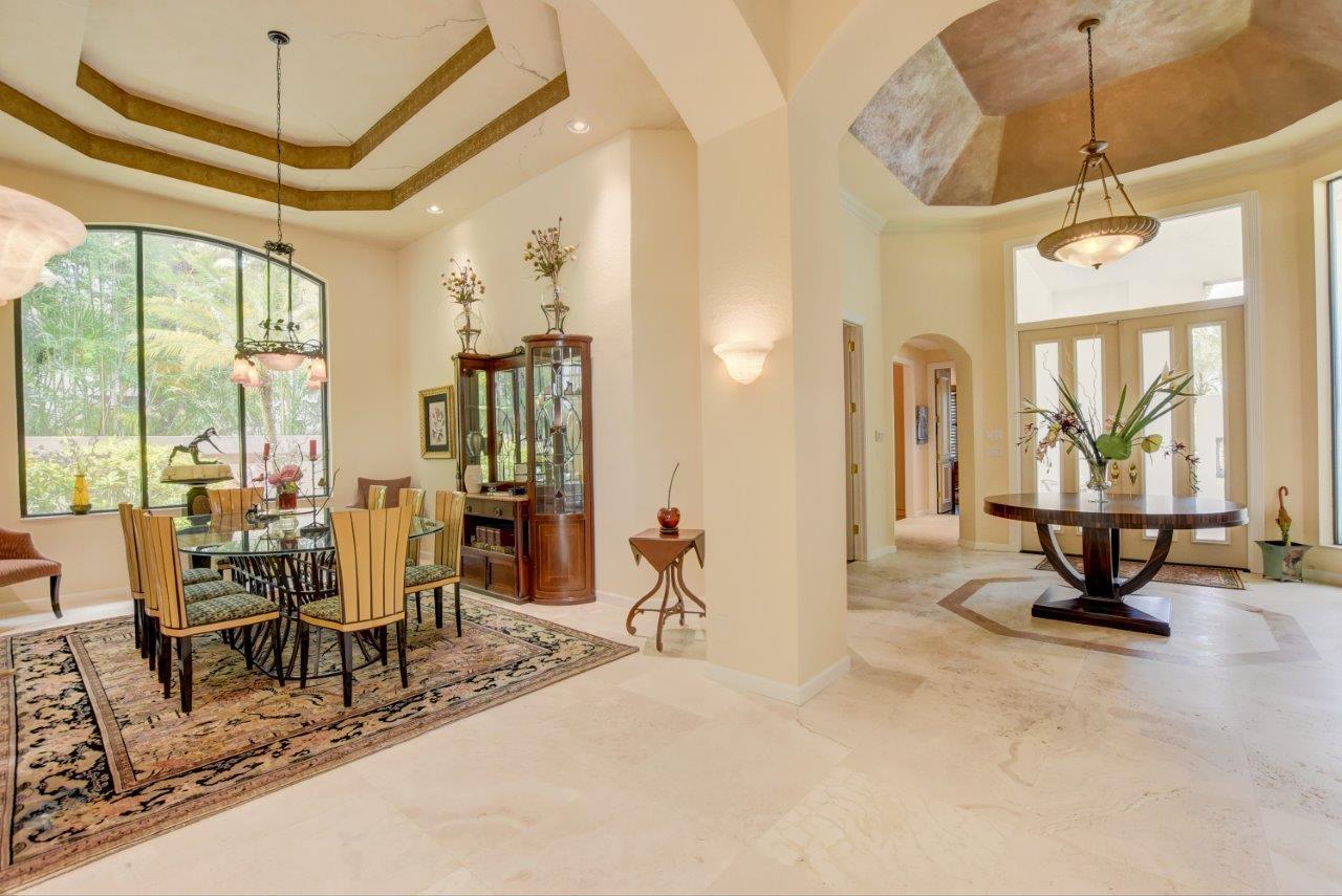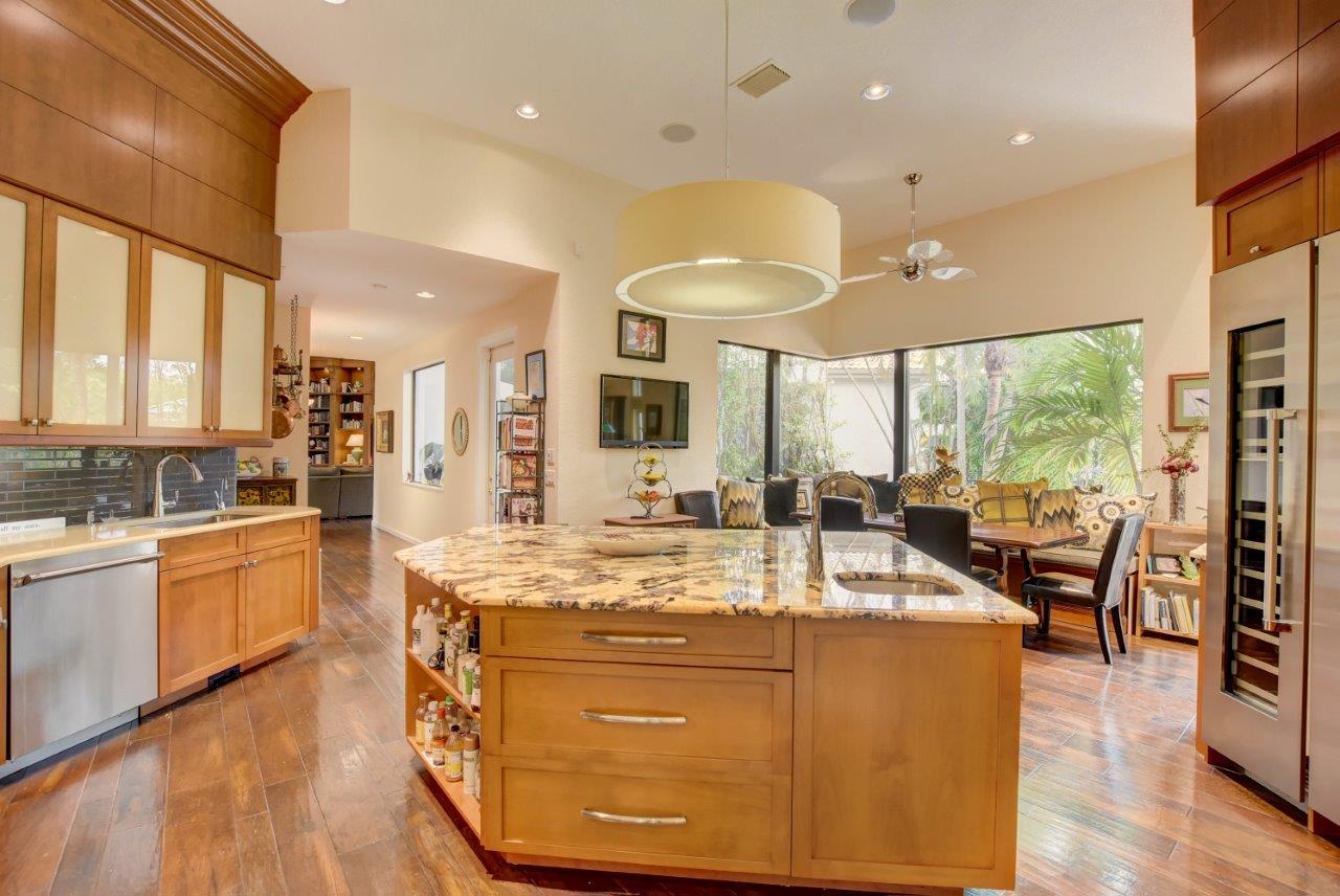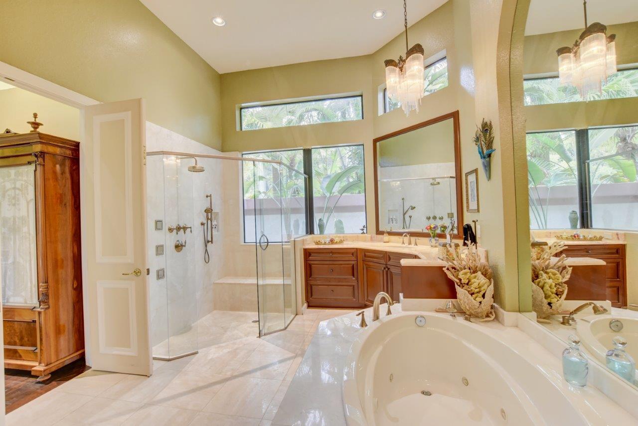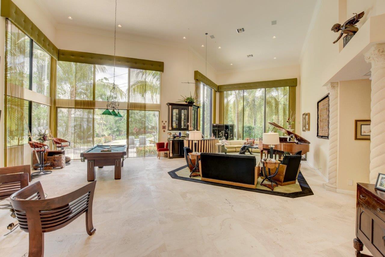 Welcome to Paradise! Situated on a private lot (almost 1/2 acre) with park like grounds this 5 bedroom, 4.5 bath estate home has been lovingly renovated. Marble and wood flooring, state of the art dream chef's kitchen, first floor master suite, floor to ceiling windows , 24' ceilings, and over the top summer kitchen. Designer window treatments and light fixtures and LED lighting thruout home. First floor features master bedroom, and 3 additional guest bedrooms (2 are currently being used as an office and library). Large loft upstairs (could be a 6th bedroom) and another bedroom and full bath. Roof is original and leak free, but seller is offering $35K credit towards roof or for 1/2 membership fees. Grand Oaks is located in Boca Raton's premier Country Club