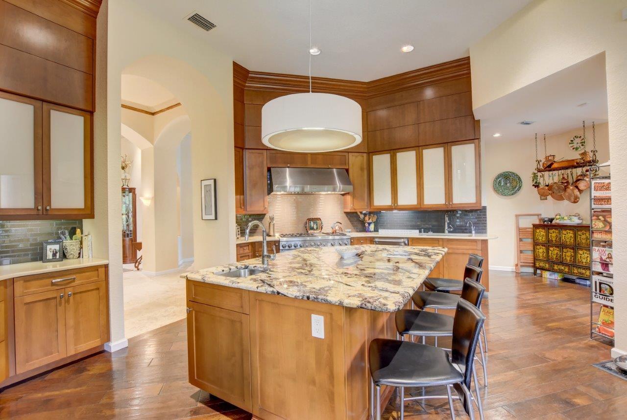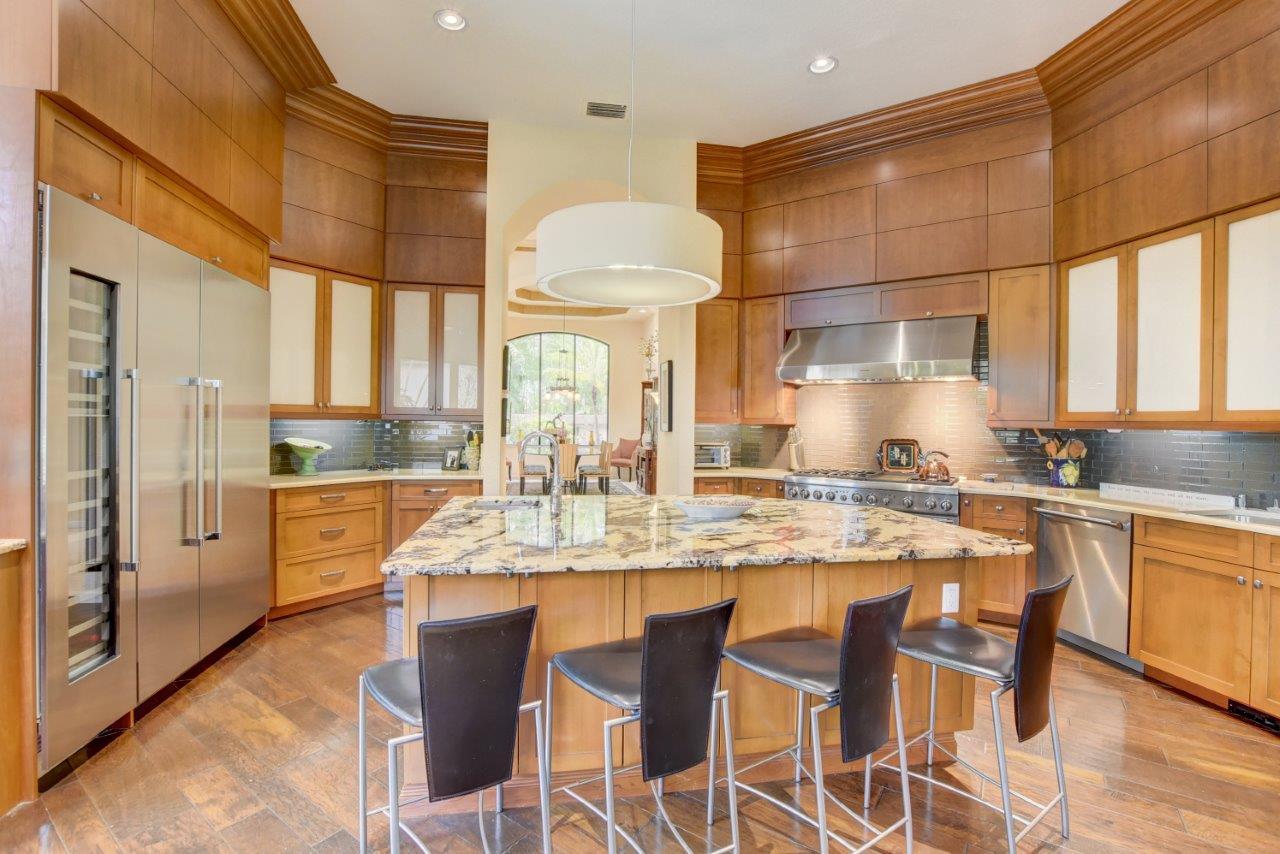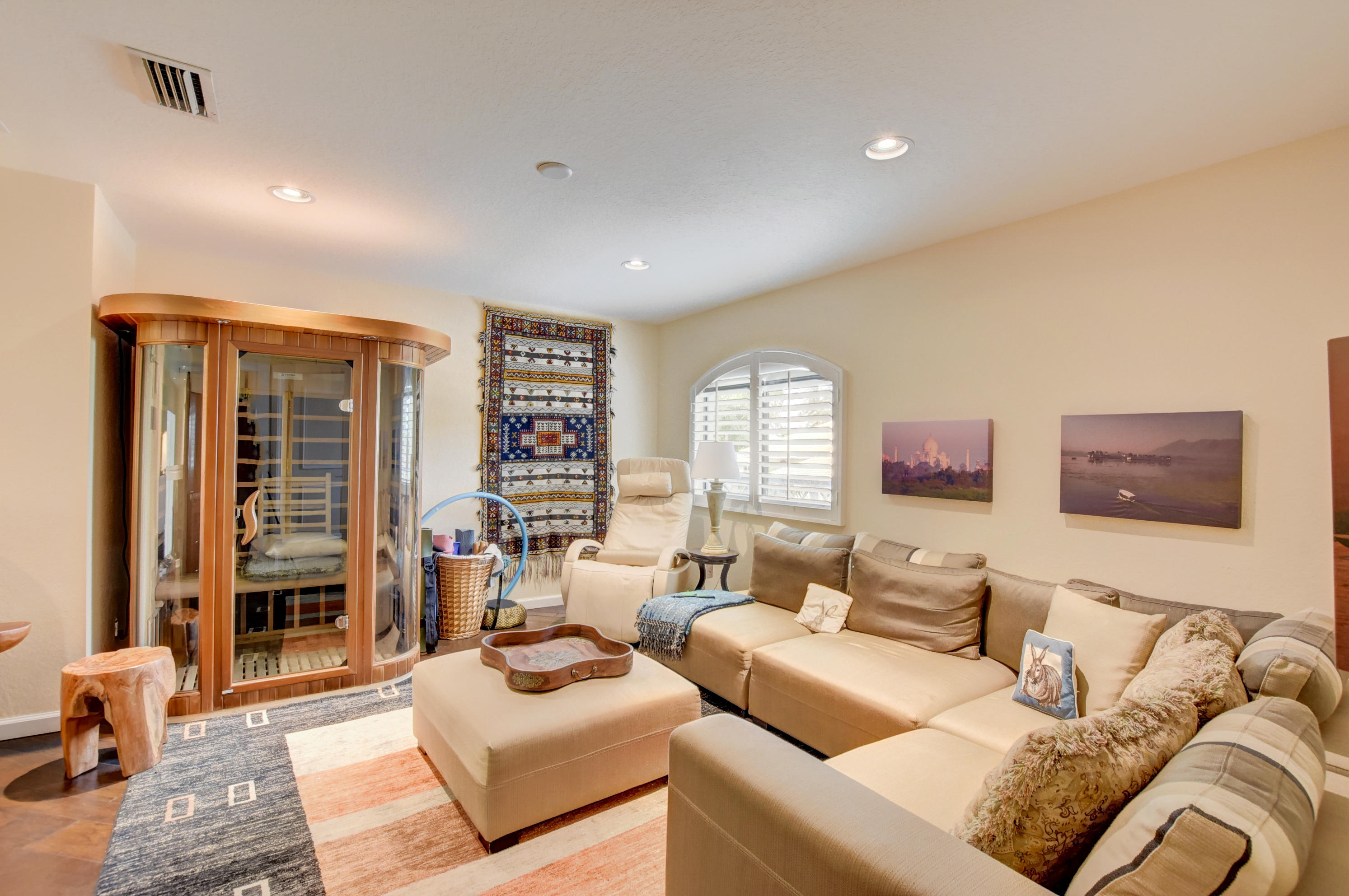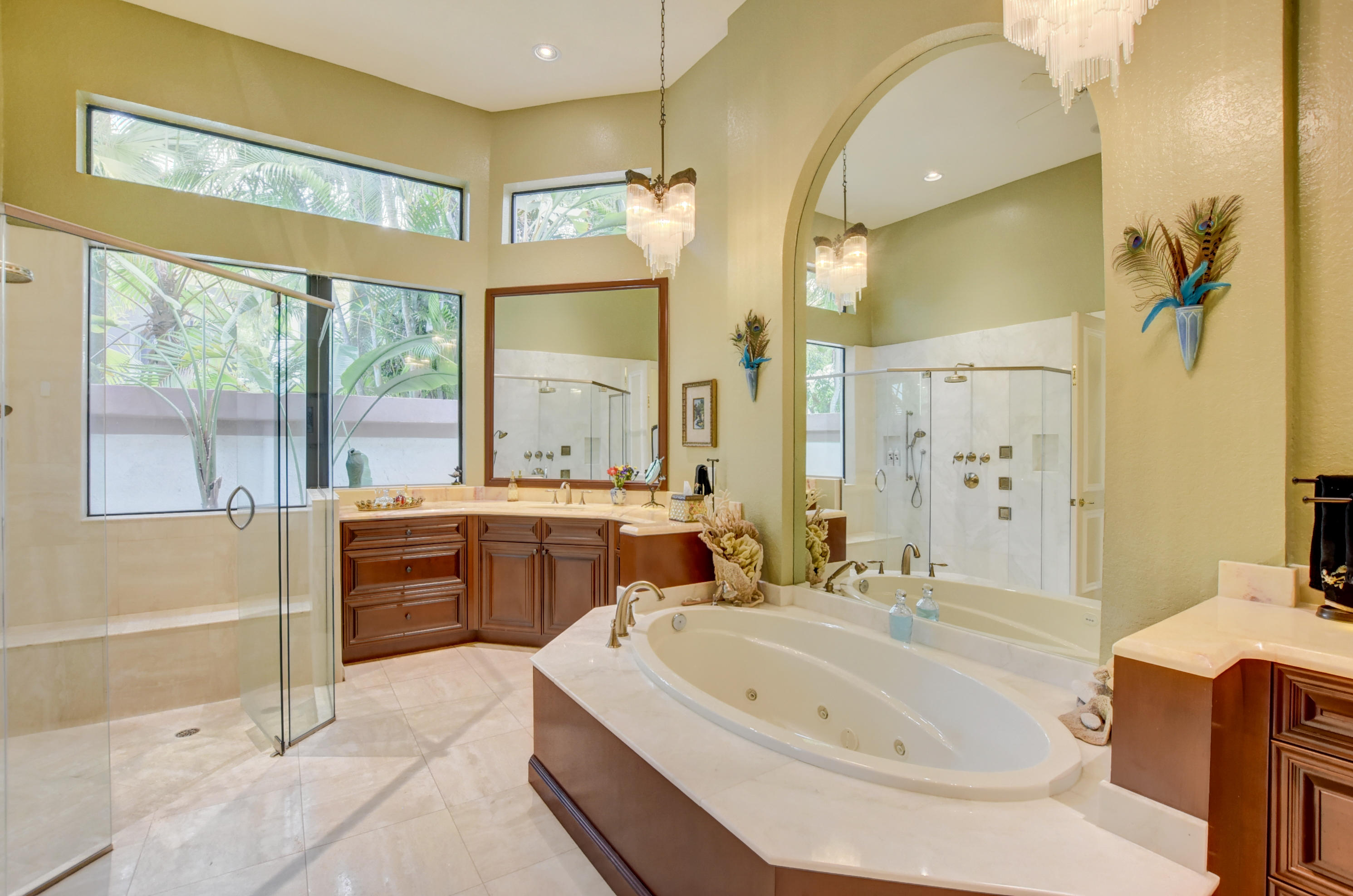 Welcome to Paradise! Situated on a private lot (almost 1/2 acre) with park like grounds this 5 bedroom, 4.5 bath estate home has been lovingly renovated. Marble and wood flooring, state of the art dream chef's kitchen, first floor master suite, floor to ceiling windows , 24' ceilings, and over the top summer kitchen. Designer window treatments and light fixtures and LED lighting thruout home. First floor features master bedroom, and 3 additional guest bedrooms (2 are currently being used as an office and library). Large loft upstairs (could be a 6th bedroom) and another bedroom and full bath. Roof is original and leak free, but seller is offering $35K credit towards roof or for 1/2 membership fees. Grand Oaks is located in Boca Raton's premier Country Club