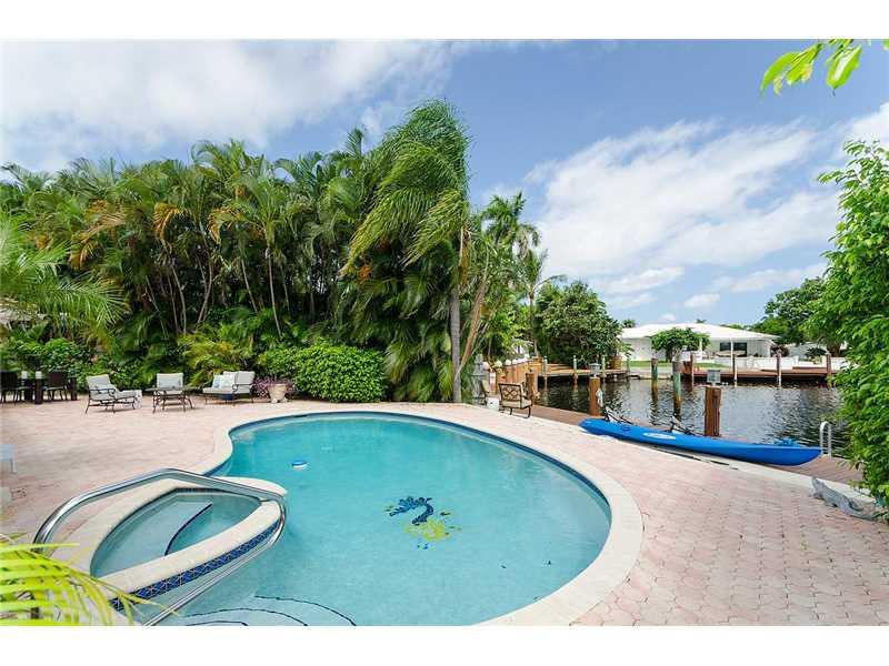 It's easy to live your luxury lifestyle in this beautiful waterfront home with ocean access in desirable Coral Ridge! This masterfully renovated, open floor plan home boasts high-end touches like hardwood, travertine and marble flooring, polished cherry w ood doors and molding and more! With 5 bedrooms, 4 bathrooms, a chef's kitchen with gas range, 4 car garage, circular driveway, free-form swimming pool, upgraded dock with power and post lighting and amazing views, you may never want to leave home!