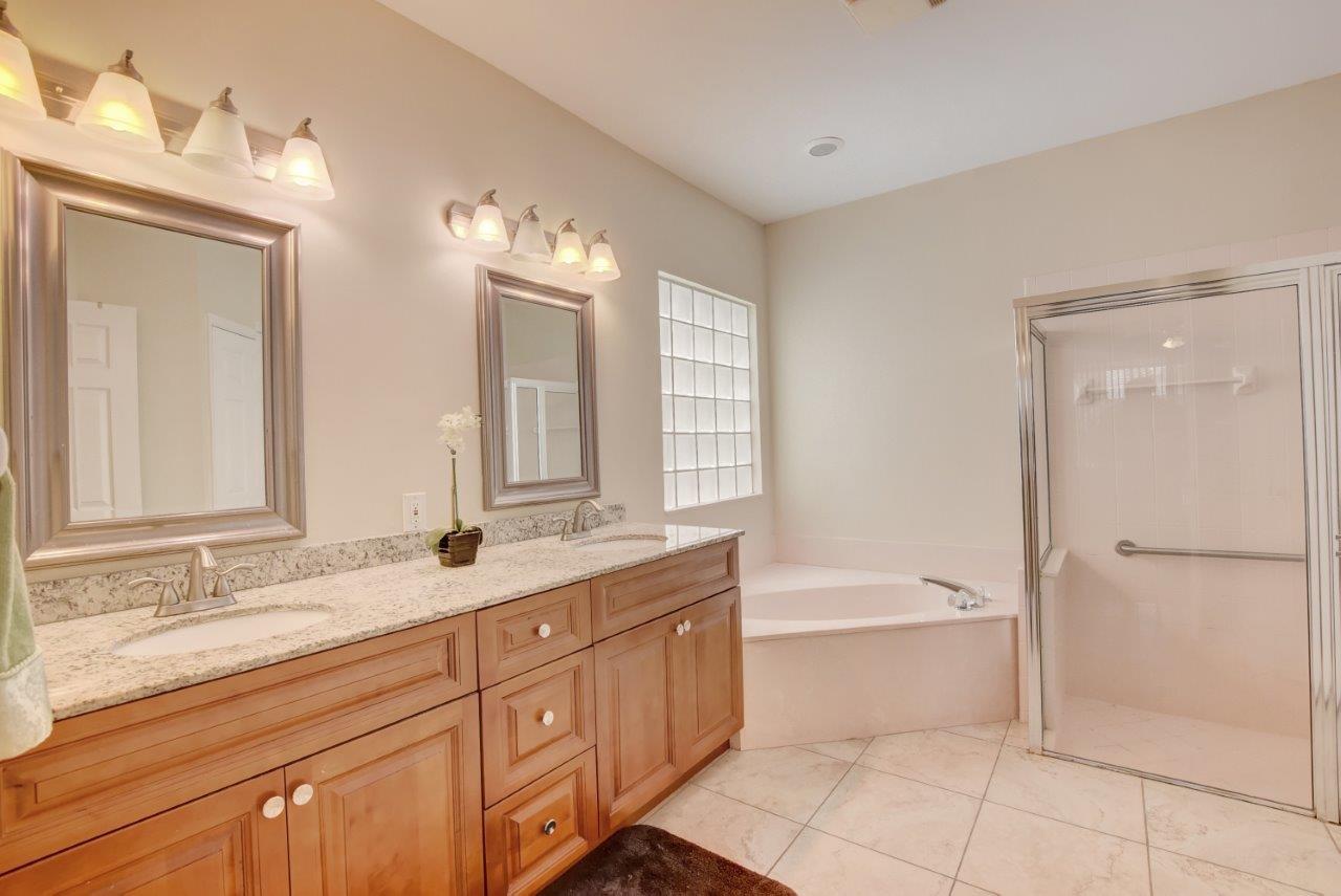 Welcome home to Mayfair at Parkland! Gorgeous, highlydesirable Ferncroft 1 model. Beautifully appointed. Freshly painted throughout. Gourmet kitchen with stainless steel appliances, upgraded cabinets that are trimmed with molding and granite counter top. The flow of this home makes living and entertaining a breeze! Covered, screened patio look out to landscaped yard with planted floral and fruit trees. Oversized lot, perfect for play sets and pool addition. Accordion shutters on all levels. Walk in closets, whirlpool tub with separate shower complete your private paradise. 3 more bedrooms and newly remodeled full bath upstairs. Enjoy the Parkland lifestyle you deserve!