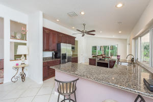 Spectacular lake views, beautiful landscaping & completely updated home. Spacious main living area and large bedrooms. Master bedroom, master en-suite & main bath all re-designed. Master bath has seamless glass shower with 24'' marble from floor to ceiling plus whirlpool tub. Master and main baths have beautiful 24'' marble floors & double sinks, marble/wood vanities. Main living areas have neutral 18'' diagonal tile throughout. Kitchen remodeled with custom cherry cabinets, granite counter tops and stainless steel appliances. all windows and sliders upgraded with impact glass. Expansive 3 panel slider opens living area to large lanai & pool area with roman columns, new fencing, coping and pavers. New 5 ton a/c & new sprinkler system with commercial pump-cont'd in additional remark