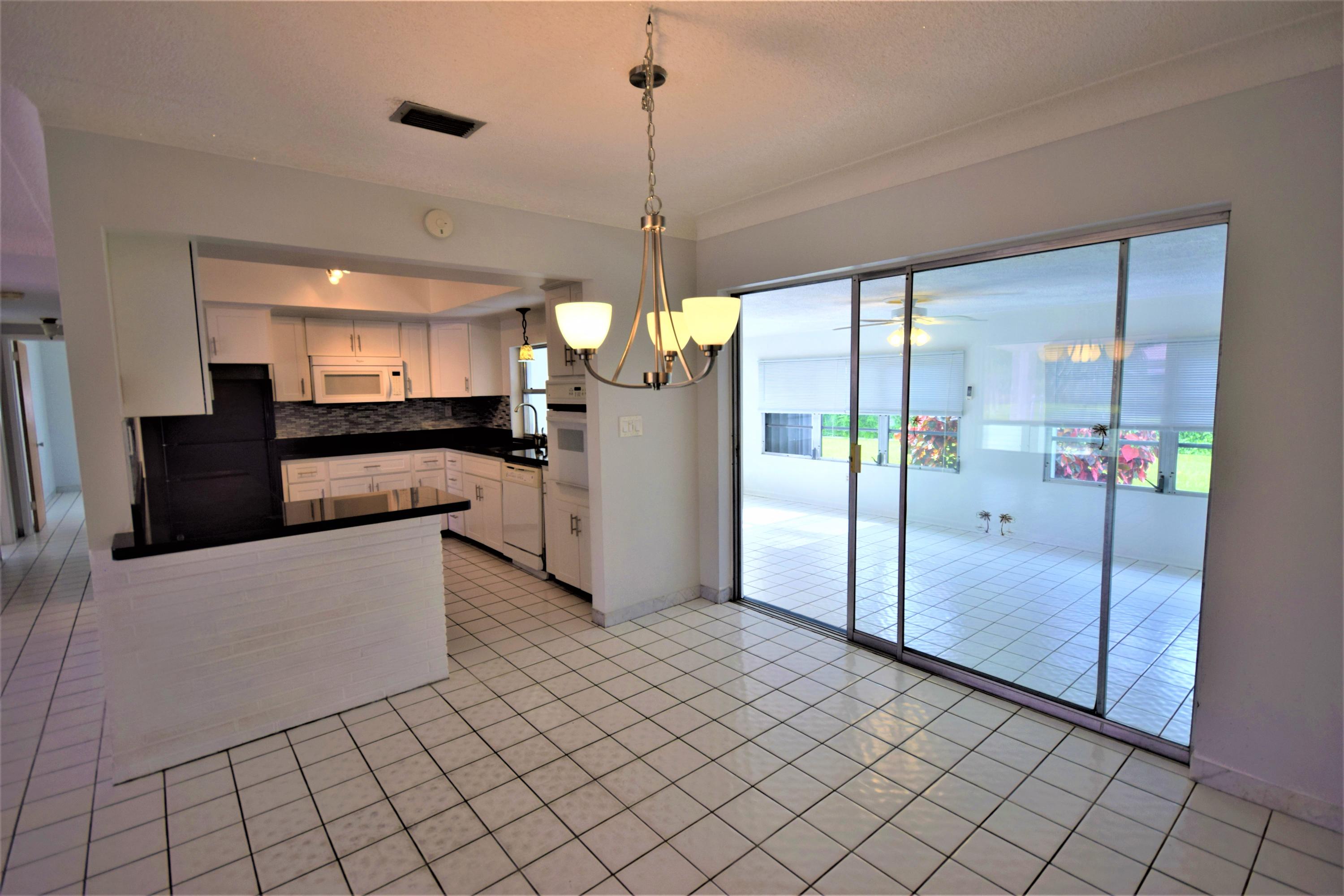Charming Florida House with Modern Features! This East Boca Bungalow is ideally situated in a quiet, established neighborhood only 1 mile to the beach and close to shopping, restaurants, Mizner Plaza, FAU, and I-95. The large (1600 SF!) 2 bedroom, 2 bathroom house has an open floor plan with lots of natural light. Tile floors run throughout the entire house. Fresh paint throughout. Perfect for entertaining with large living room, eat-in kitchen with granite counters, & huge Florida room. Plenty of outdoor space in the large, fenced back yard with patio. Attached one car garage has an extra refrigerator, automatic door, and ample storage space. Kitchen was recently updated with stylish granite and backsplash and is equipped with new flat-top stove, wall oven, new refrigerator...