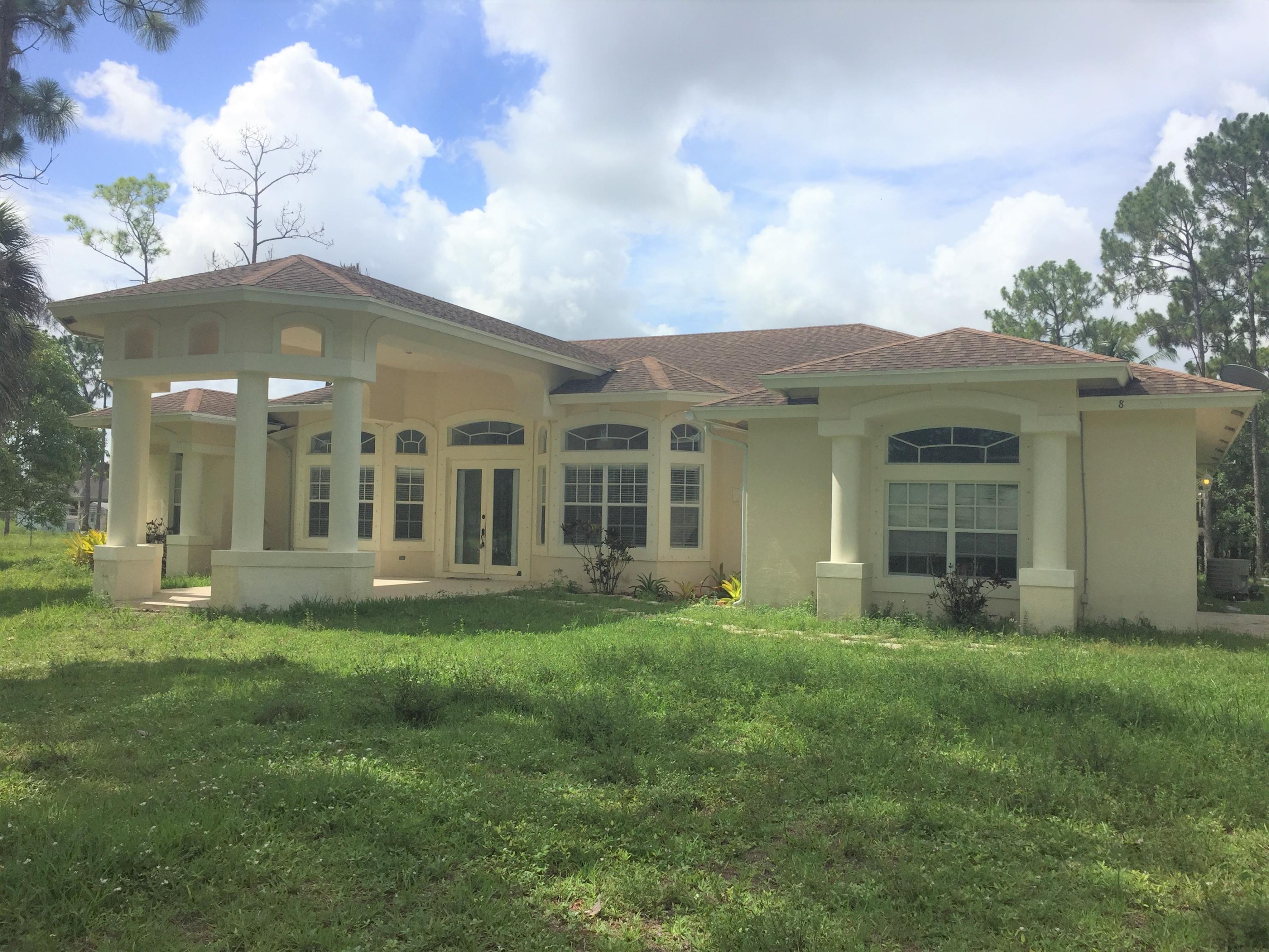 THIS SPACIOUS (OVER 3000 SQUARE FEET UNDER AIR) AND INCERDIBLY WELL LAID OUT SPLIT FLOOR PLAN HOME FEATURES 4 BEDROOMS, AND OFFICE/DEN, 3 AND A HALF BATHS, A FORMAL DINING ROOM, FORMAL LIVING ROOM, BREAKFAST NOOK AND A HUGE FAMILY ROOM. SOARING CEILINGS, FRENCH DOORS, CABANA BATH, JACCUZI TUB, SCREENED PATIO, CBS CONSTRUCTION BUILT IN 2003, FULLY FENCED YARD, HURRICANE SHUTTERS THROUGHOUT, GREAT LOCATION AT THE END OF A DEAD END ROAD AND NORTH OF NORTHLAKE BLVD. GREAT SCHOOLS. THIS IS BY FAR THE BEST PRICED HOME FOR ITS AGE AND SIZE IN THE ACREAGE!!