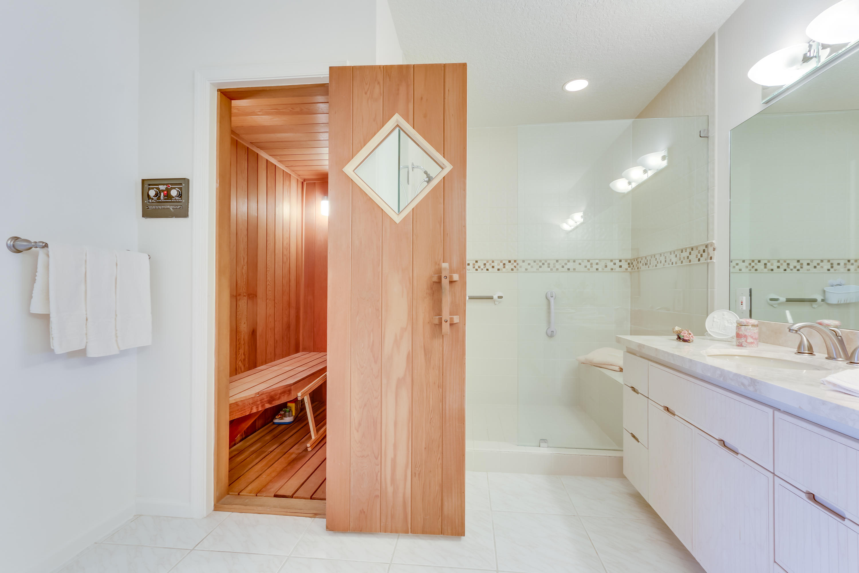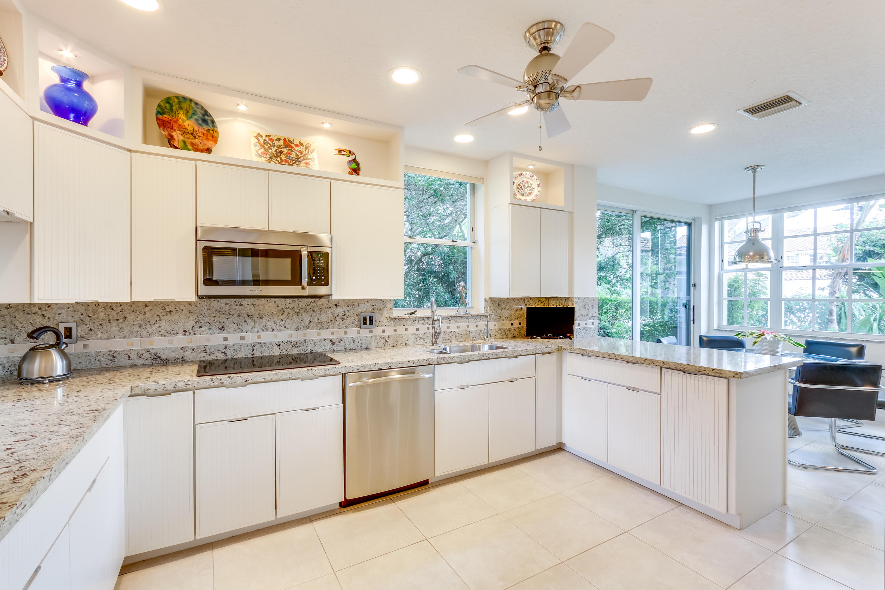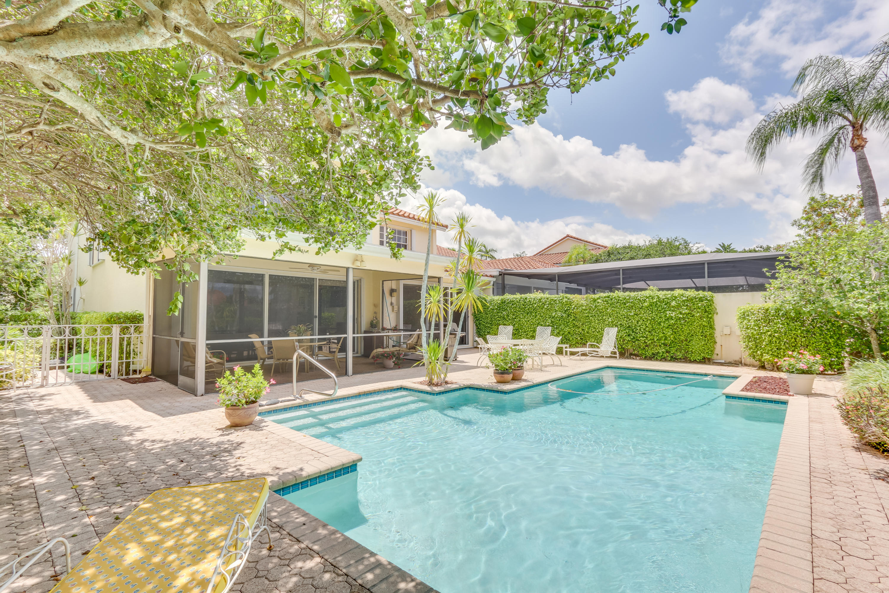 Spectacular 4 Bedroom Townhome located on the golf course with an screened in patio and beautiful pool with tropical landscape surrounding it! This home is immaculate and bright, 2 master suites, one upstairs and one downstairs, updated kitchen and bathroom, sauna, garage has newly redone floors & lots of storage, new hot water heater, water softener, electric shades & plantation shutters. Home has hurricane shutters throughout. Golf course is under construction, home will have a brand new golf course view! Broken Sound is a beautiful community with 2 golf courses, clubhouse, game room, pool, putting green, tennis and much more!