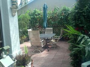 This Unique Beautiful Home has 3 bedroom 2 1/2 bath rooms a den that could be used as an 4th bedroom or office. Large Porcelain Tile on diagonal through out bottom floor living area. Absolutely Gorgeous Kitchen with Custom Solid Wood Cabinets and pull outs, Kitchen island and built in desk. There is an enclosed sun room addition that extends the living area and had a hurricane rated door with tile flooring! There is high end Mahogany trim, crown molding, and front door that was from the Coca Cola House on Palm Beach that is stunning. The Yard is fenced and is beautiful landscaped and a private secluded patio to enjoy and is great for entertaining! This home is priced to sell and will not last! The clubhouse has pool, play ground, tennis, racket ball,