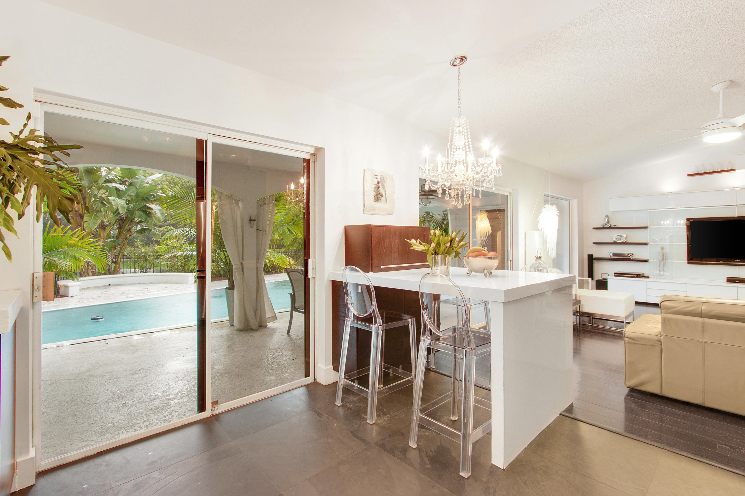 WELCOME HOME to Timbercreek--lakefront living on a private, oversized cul-de-sac lot at 2425 NW 26th Street in Central Boca. Move right into this renovated home: Hurricane garage door 1.5 yrs, HydroJet hot water heater 4 yrs, new Kenmore washer/dryer, brand new Diamond-Brite, renovated kitchen w/stainless Kitchen Aid appliances, glass tile backsplash, 3'' thick quartz countertops, European wood/glass cabinetry, slate & wood laminate flooring, recessed lighting, modern master bath w/geometric sinks, floating vanities, AXOM hardware, master suite w/Hunter Douglas blinds, plantation shutters in bedrooms, hurricane panels throughout, cabana-style lounging deck & fenced-in pool overlooking picturesque lake, new designer landscaping, low HOA, A-rated Boca schools!