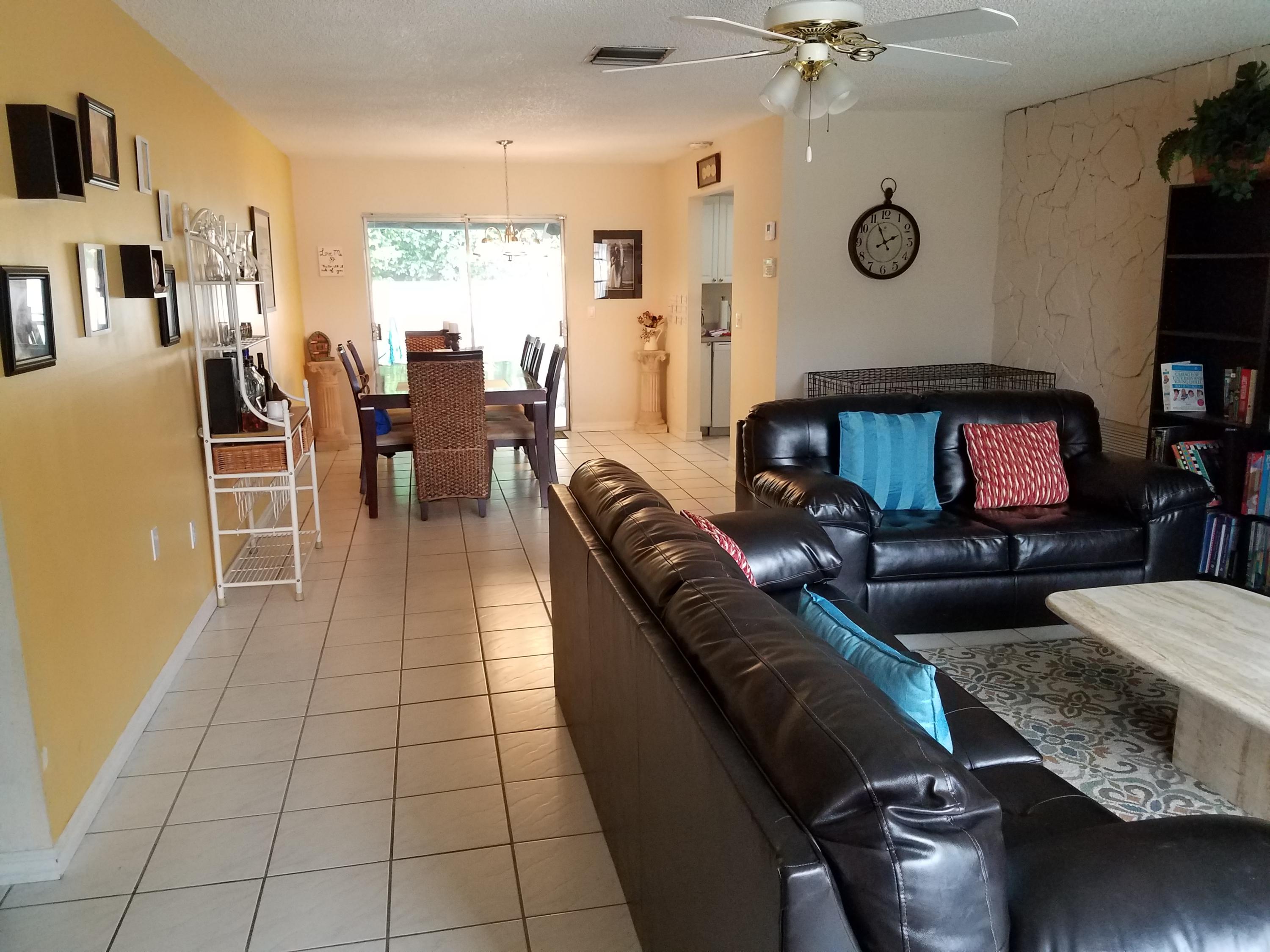 Lovely 3 bedrooms, 2 baths single family detached home with private in-ground pool and 1 car garage. Built in 1977 this one story Ranch style home features a new roof, and an open and bright floor plan. The living, dining & kitchen area feature ceramic tile floors. All bedrooms have carpets, ceiling/light fans. The master bath has updated vanity & tiled shower stall. The second bath features a tub/shower with newer vanity and toilet. Central air conditioning in the laundry room with washer/dryer. The screened enclosed covered tiled patio is great for entertaining. There is a fenced backyard with in-ground pool and brick paver deck. The 1 car garage with automatic opener and hurricane panels complete this fantastic home.