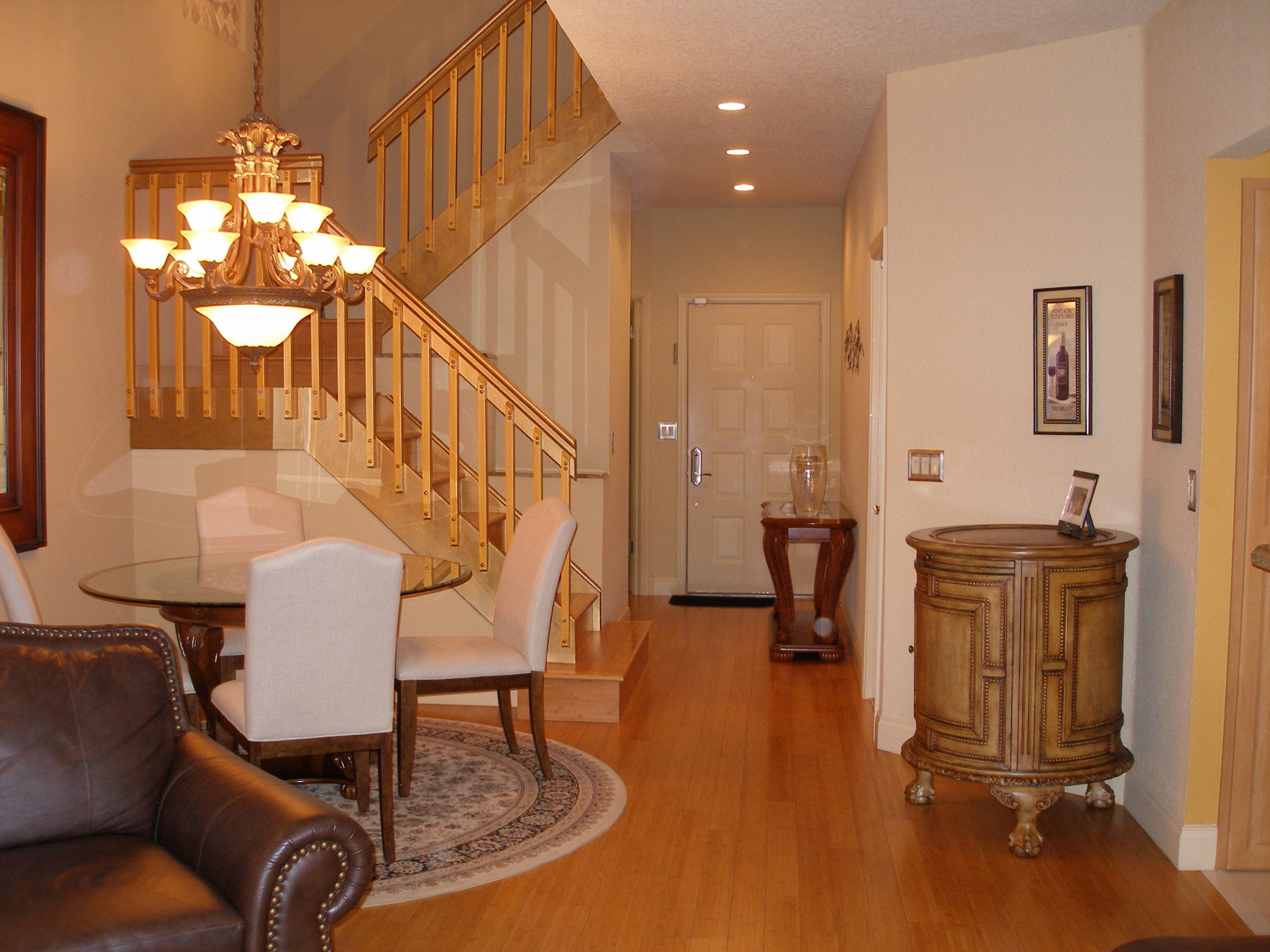 Elegant 3 bedroom townhouse is ready for a new family. Beautiful attention to detail throughout this home shows it like a designer model. Bamboo and tile flooring, granite counter tops, stainless steel appliances, crown molding, accent tiles, granite sills, working fountain and designer lighting are some of the beautiful upgrades in this unit. It has a private back patio that is just steps to the pool. Allegro is conveniently located near major highways, shopping, entertainment and restaurants. This immaculate home has it all to please the most discerning buyer.