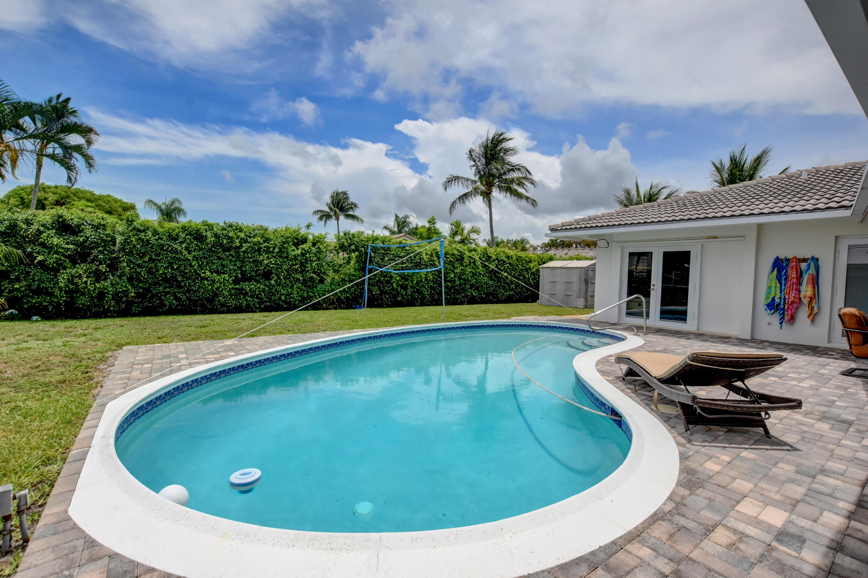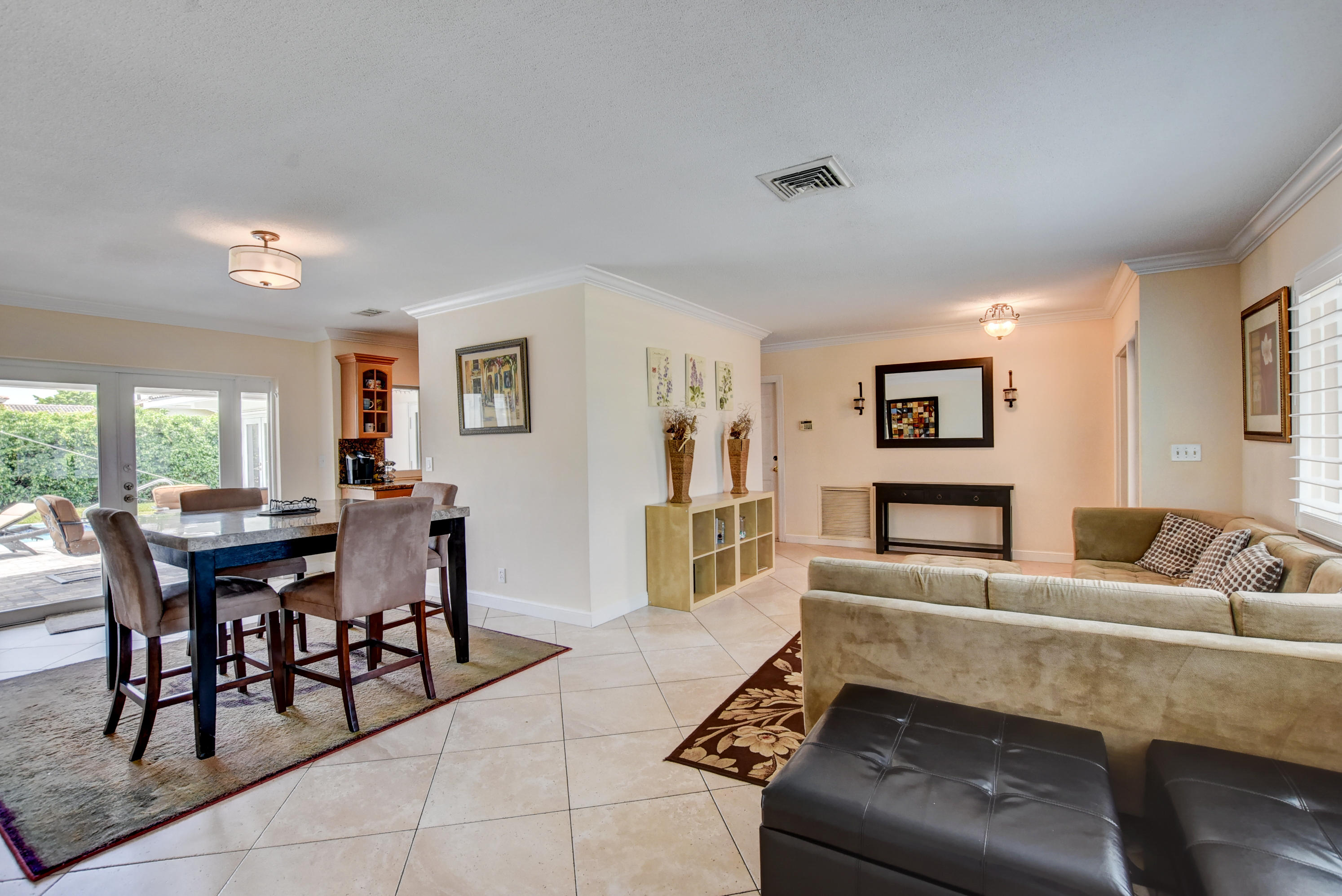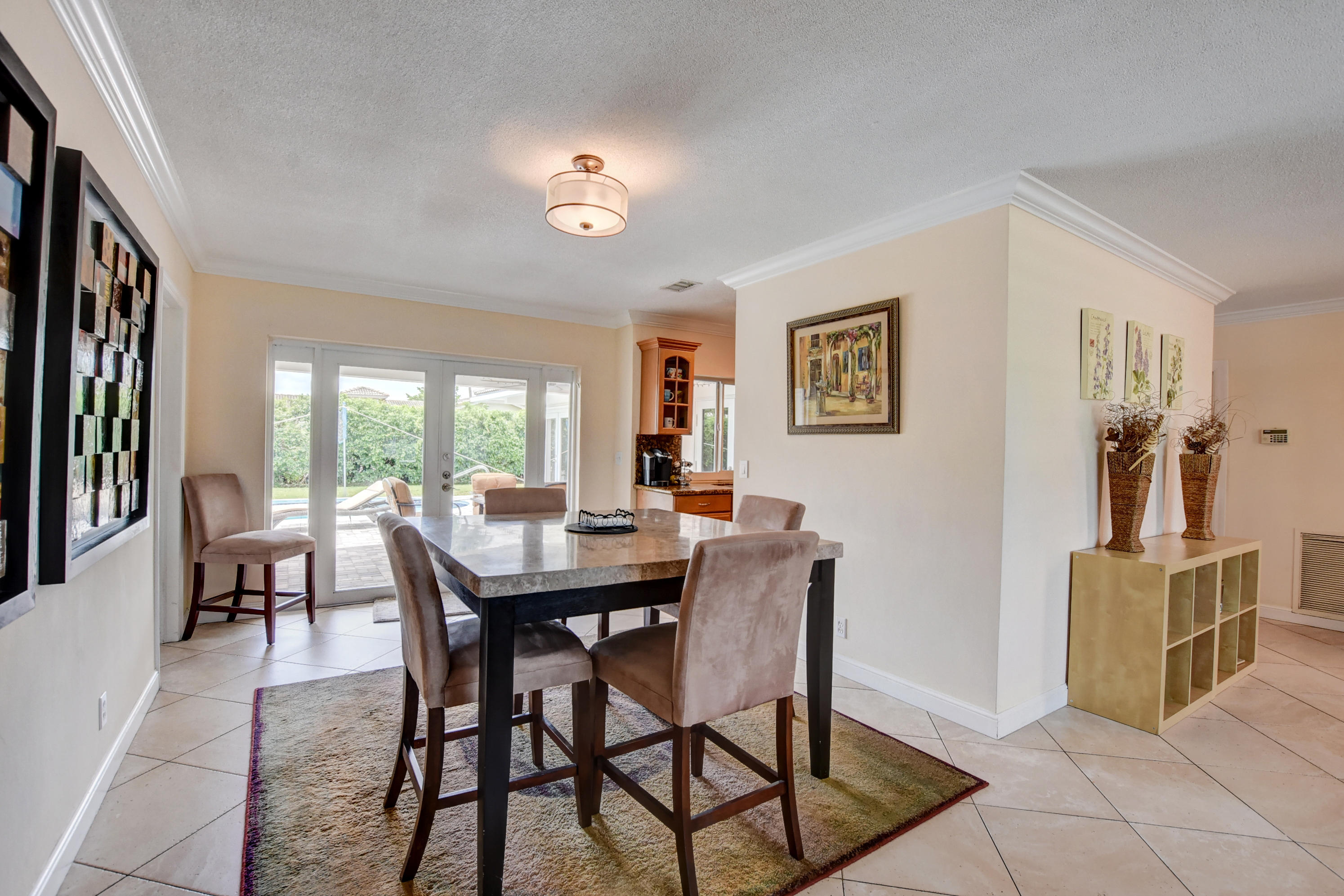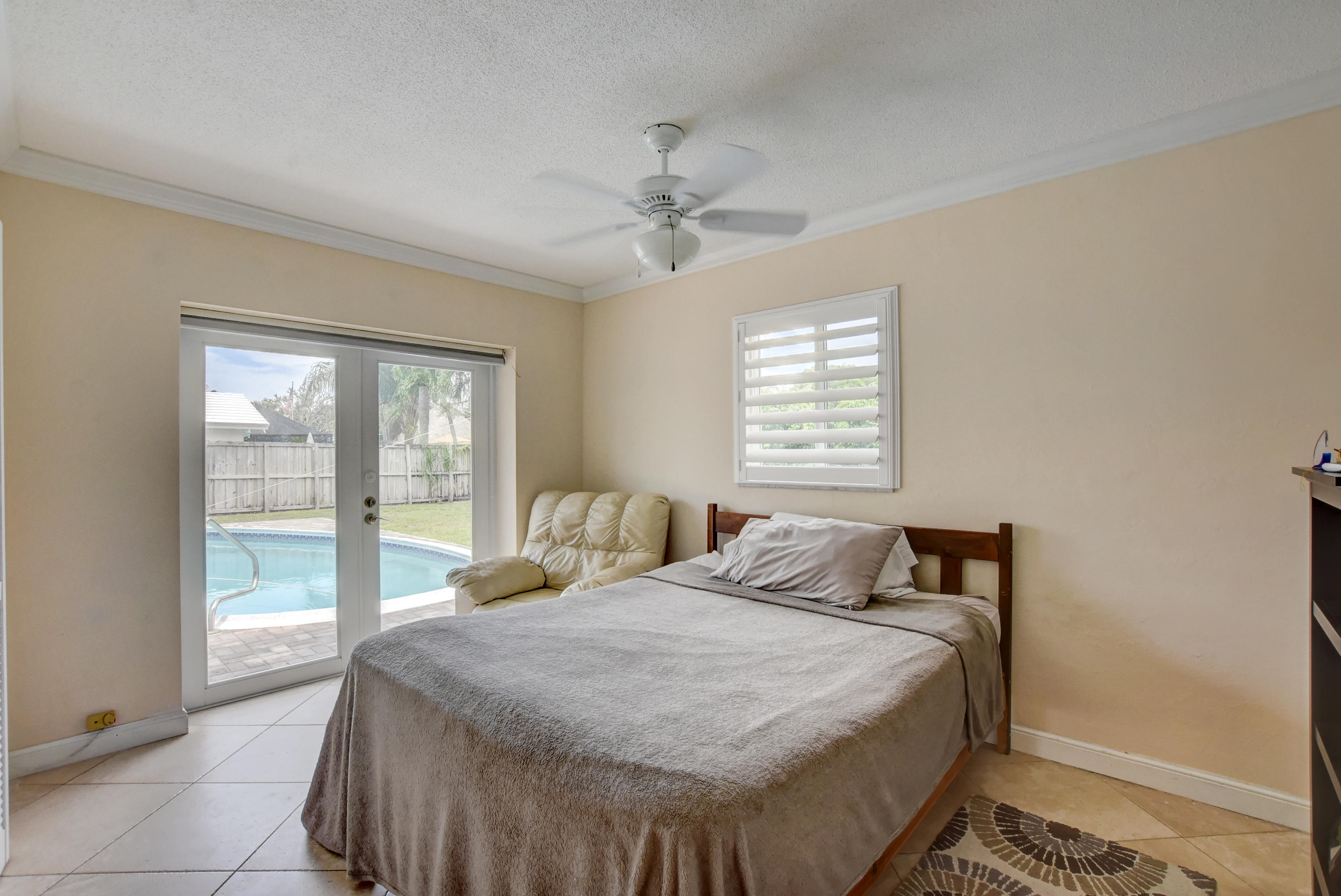 Rarely available 5BR/2BA pool home in highly sought after Boca Square. This home features an updated kitchen w/beautiful wood cabinets & granite counters, plantation shutters, tile & laminate flooring, crown molding in living areas and 3 bedrooms, 4''baseboards, and a large interior laundry room. Updated master bath has large, step-in shower & dual sinks. Exterior features include barrel tile roof, paver patio, & circular driveway. Large fenced yard has gate access & side space for boat/trailer storage. House has hurricane impact windows, impact French door in rear bedroom, newer (non impact) French doors in family room, dining room & master bedroom. A/C replaced in 2013. Fabulous East Boca location near downtown Boca, shops, restaurants, and beaches. No HOA. Excellent local schools!