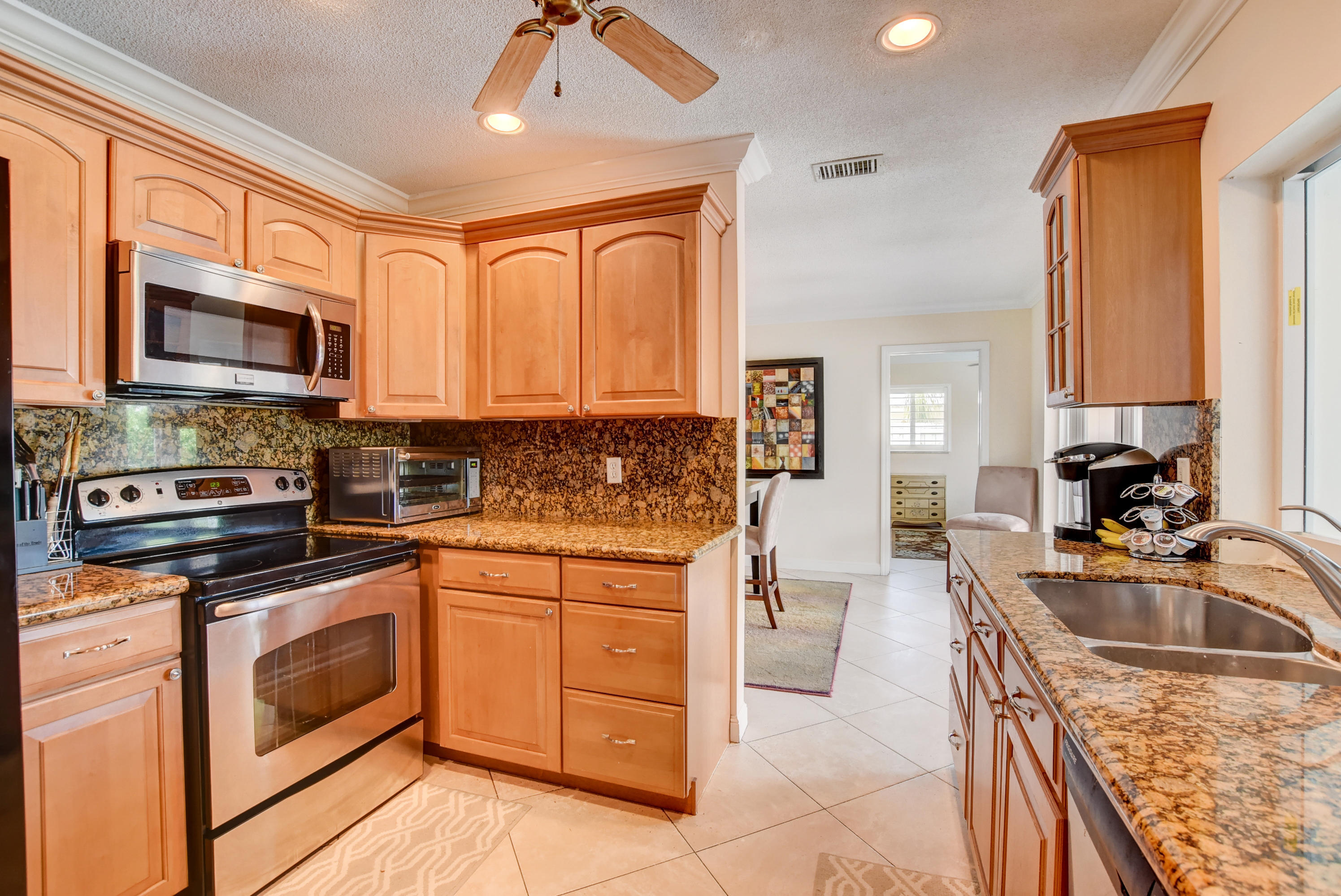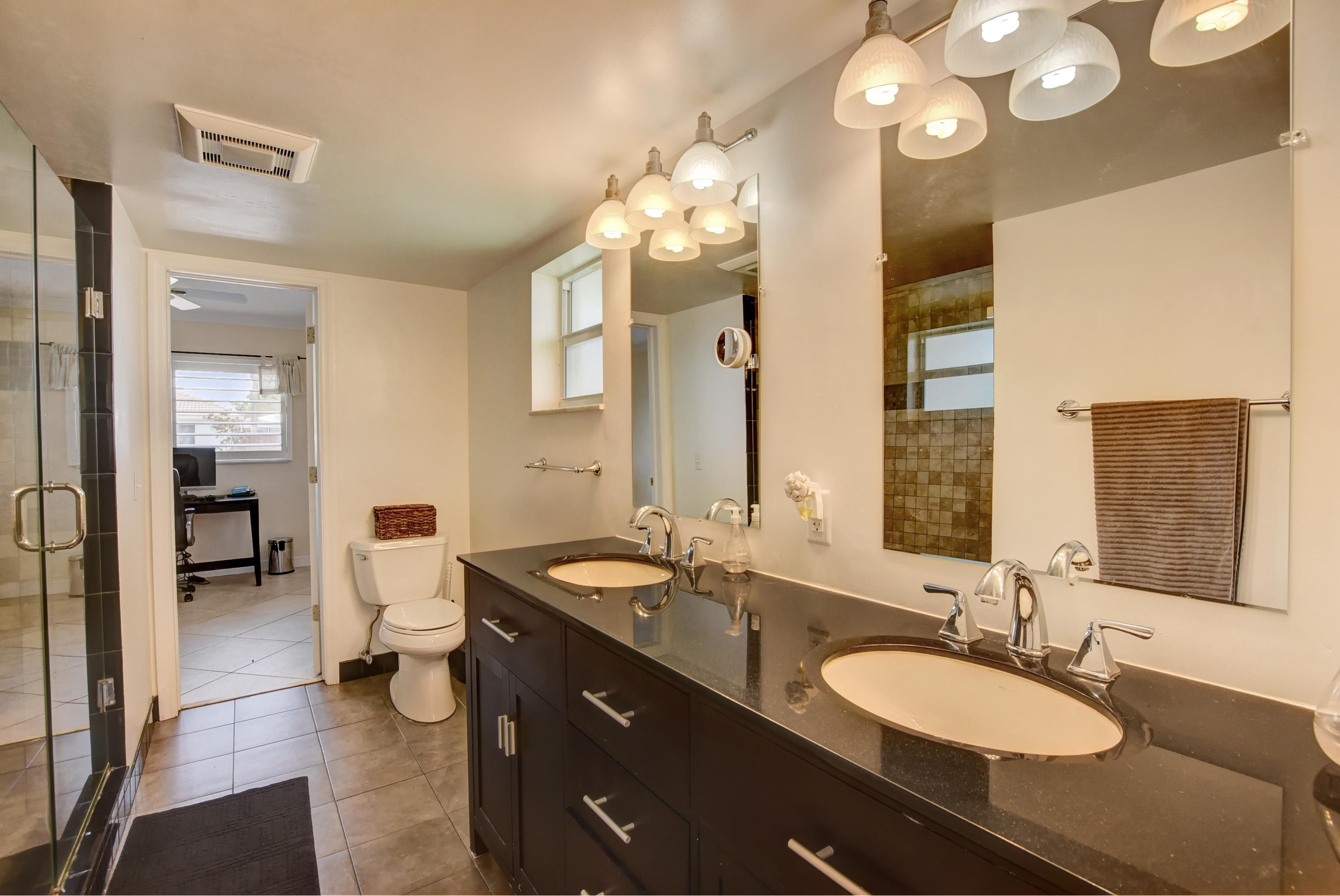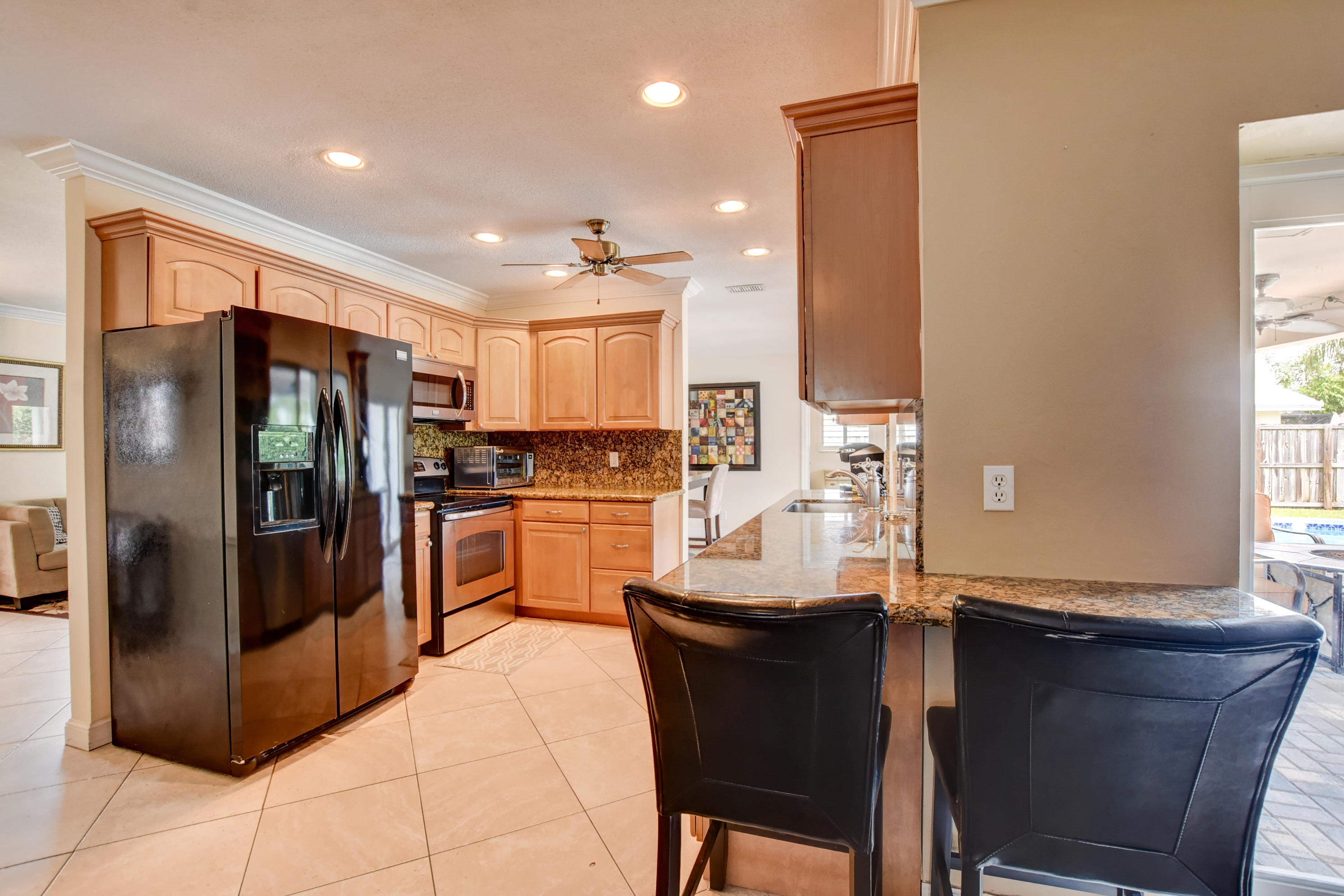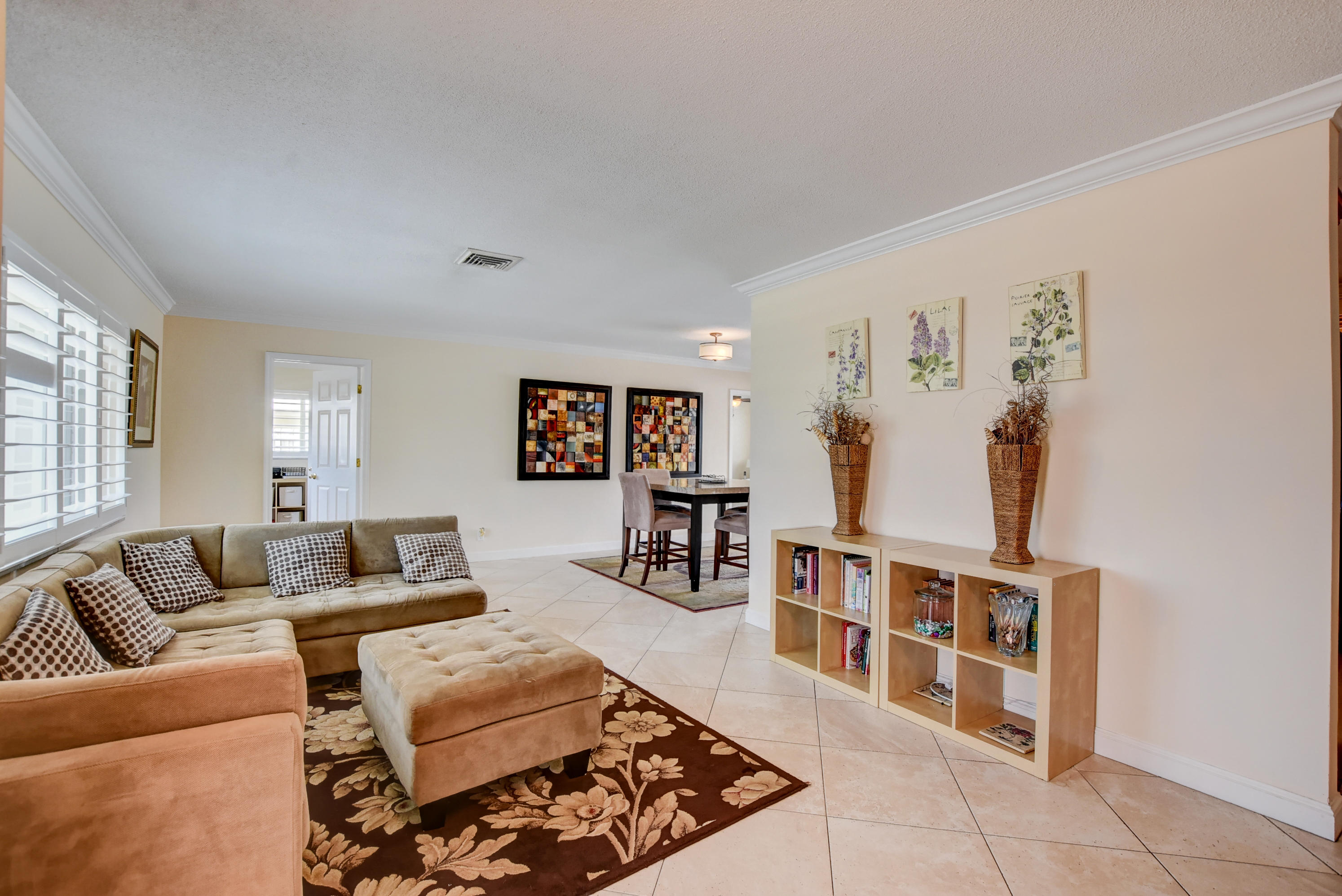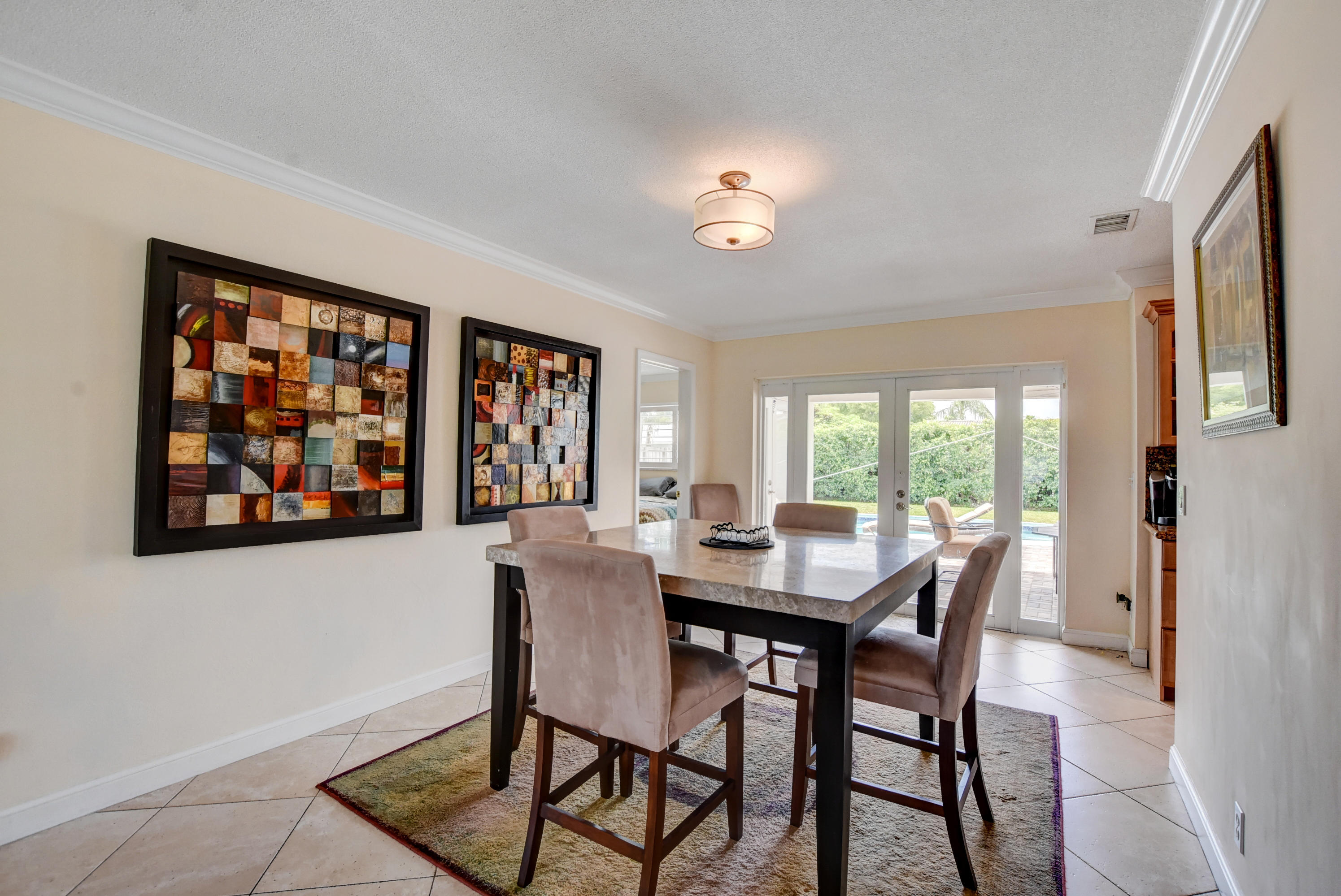 Rarely available 5BR/2BA pool home in highly sought after Boca Square. This home features an updated kitchen w/beautiful wood cabinets & granite counters, plantation shutters, tile & laminate flooring, crown molding in living areas and 3 bedrooms, 4''baseboards, and a large interior laundry room. Updated master bath has large, step-in shower & dual sinks. Exterior features include barrel tile roof, paver patio, & circular driveway. Large fenced yard has gate access & side space for boat/trailer storage. House has hurricane impact windows, impact French door in rear bedroom, newer (non impact) French doors in family room, dining room & master bedroom. A/C replaced in 2013. Fabulous East Boca location near downtown Boca, shops, restaurants, and beaches. No HOA. Excellent local schools!