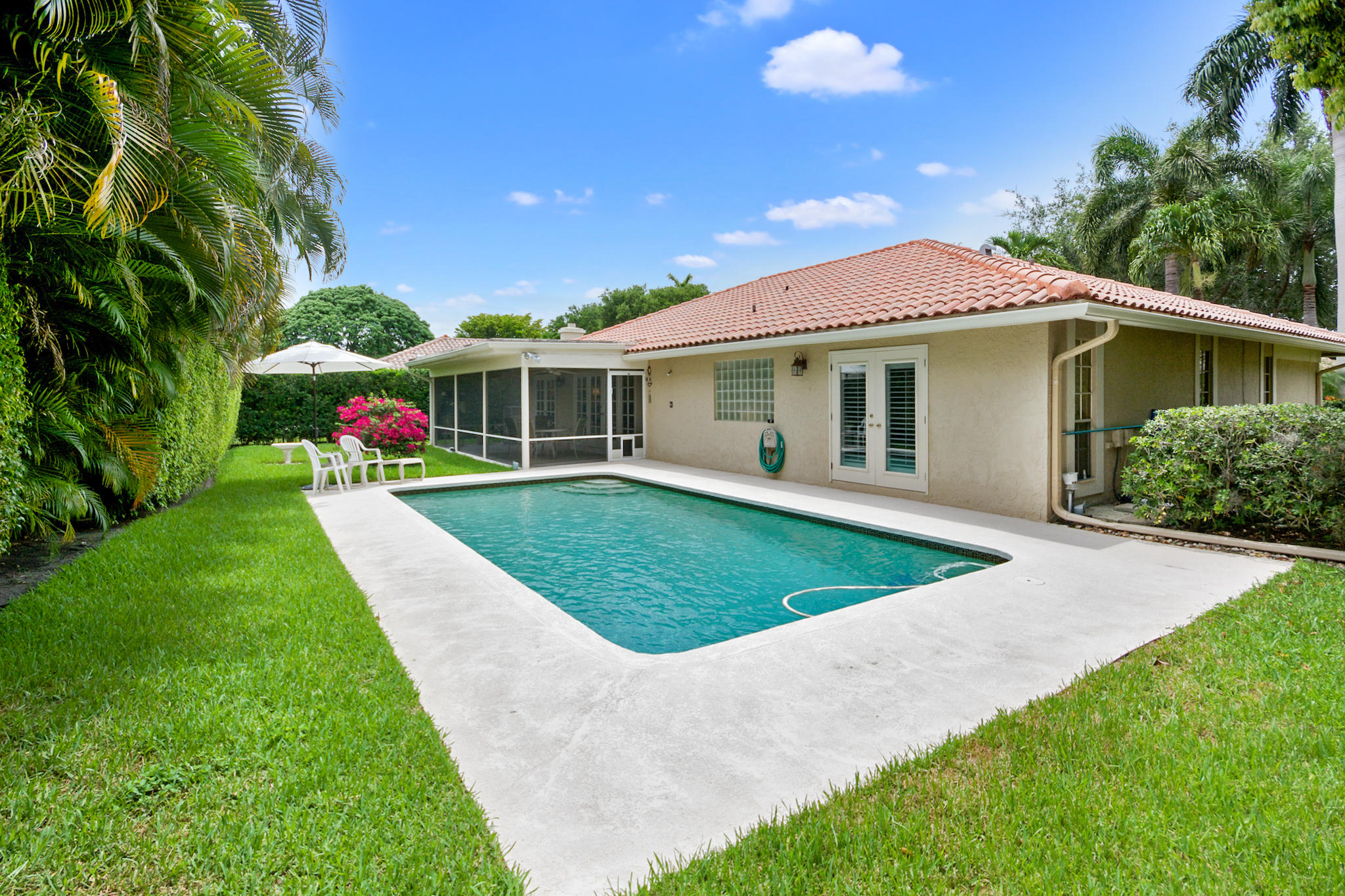Charming and quaint Mediterranean home with open floor plan, high ceilings, updated spacious kitchen with stainless appliances, updated baths with tumbled marble and maple colored cabinetry,screened patio area open privatre pool on quiet interior lot, Chicago brick walkway, roof 2006, ac 2012, plenty of storage,and much more!