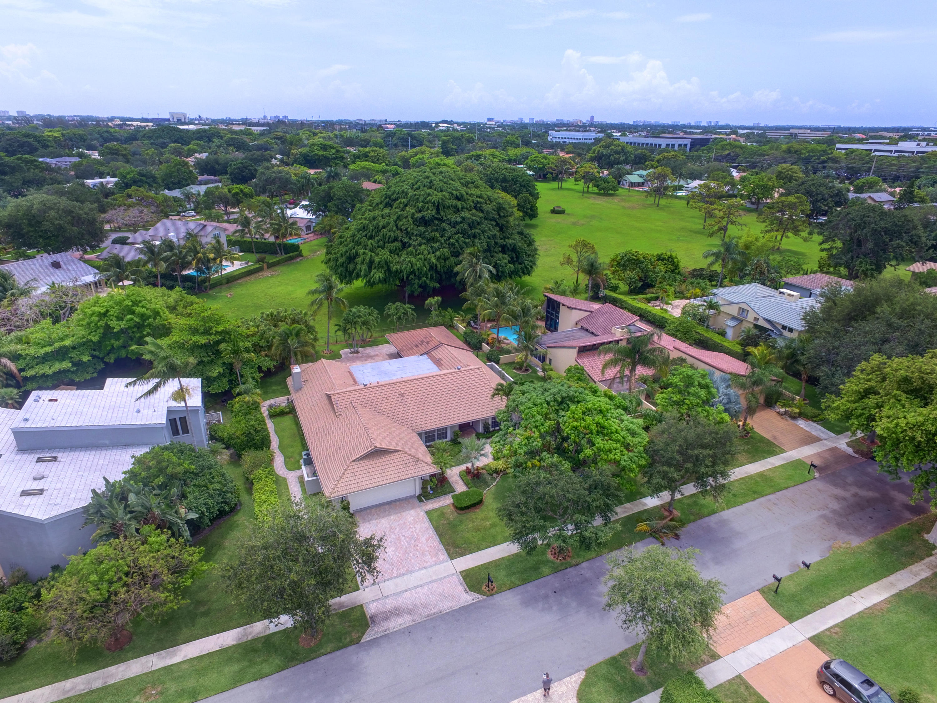 This home is paradise, beginning with one of the most delicious large mango trees planted in front of your home. As you enter the double front doors, there is a direct view to the pool and 6 acre park which sits behind the home. 4 bedrooms plus a large office, two huge living spaces and an expansive dining room looking out to the garden make this home ideal for entertaining. The master suite and en-suite guest room make up one side of the home, while the additional two bedrooms are on the other side. The office is situated privately away from the bedrooms. The details in this home are not to be missed from the up lit ceiling in the master seating area to the custom fireplace in the family room. A rare move in ready find in one of the most desirable neighborhoods in Boca.
