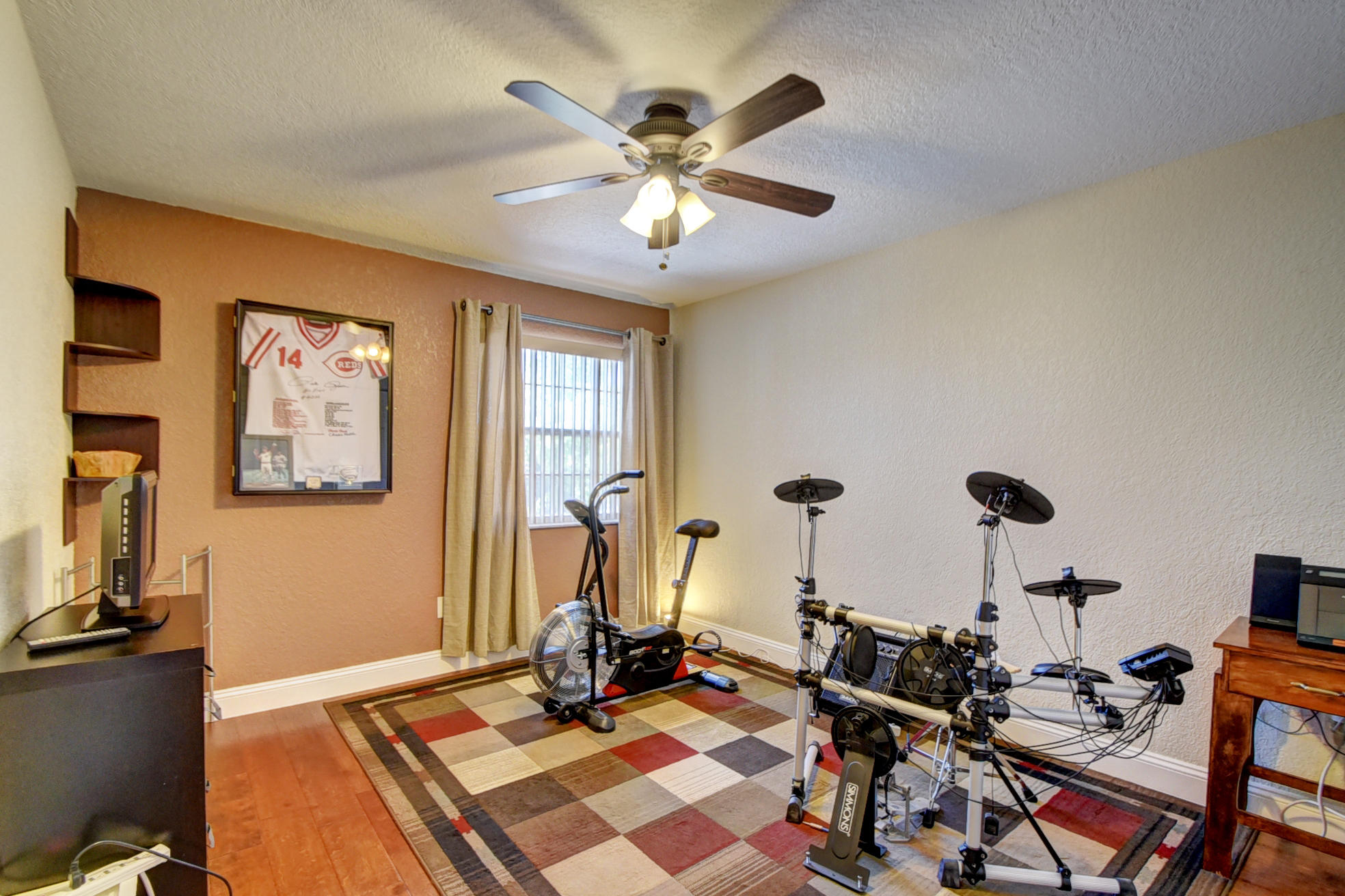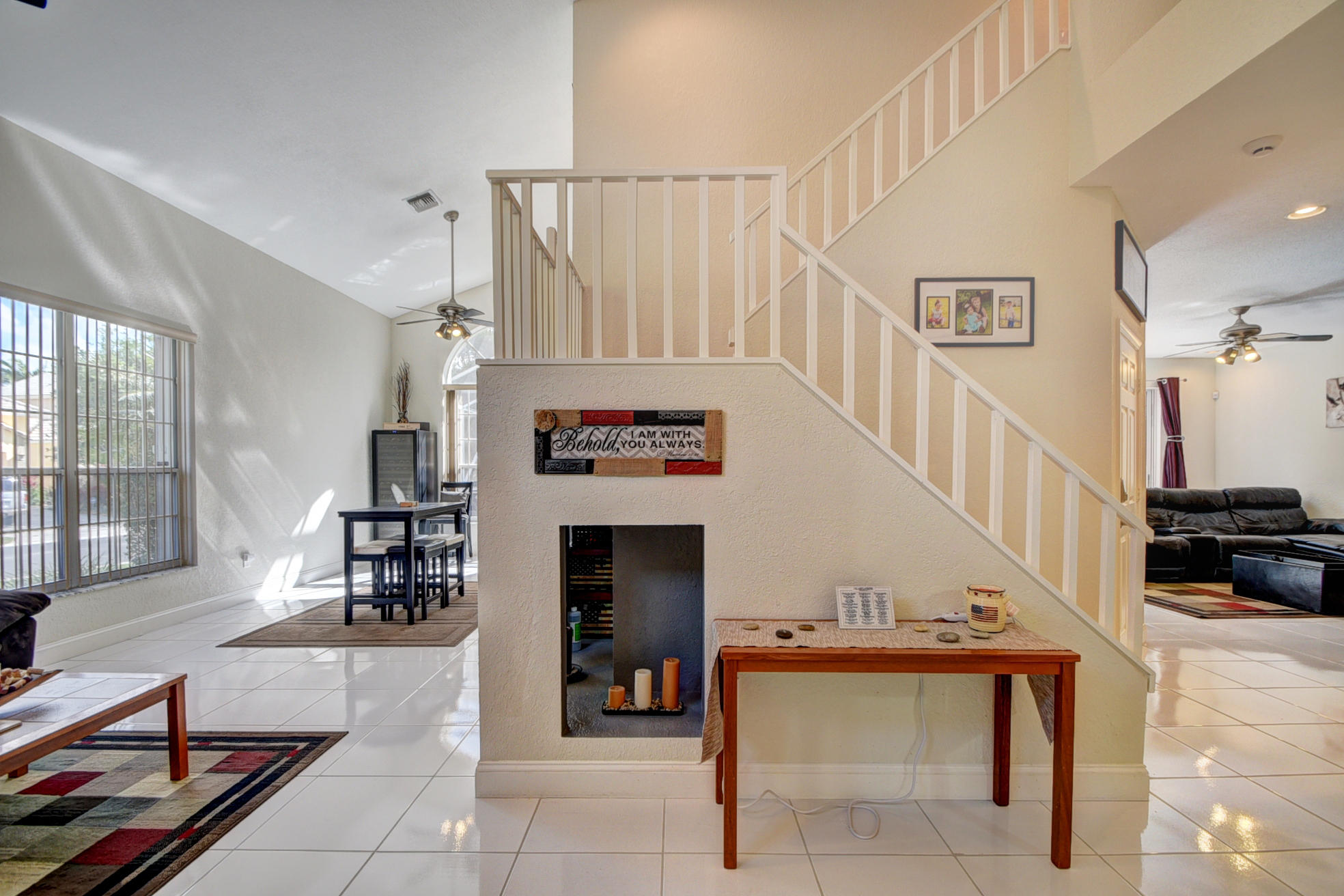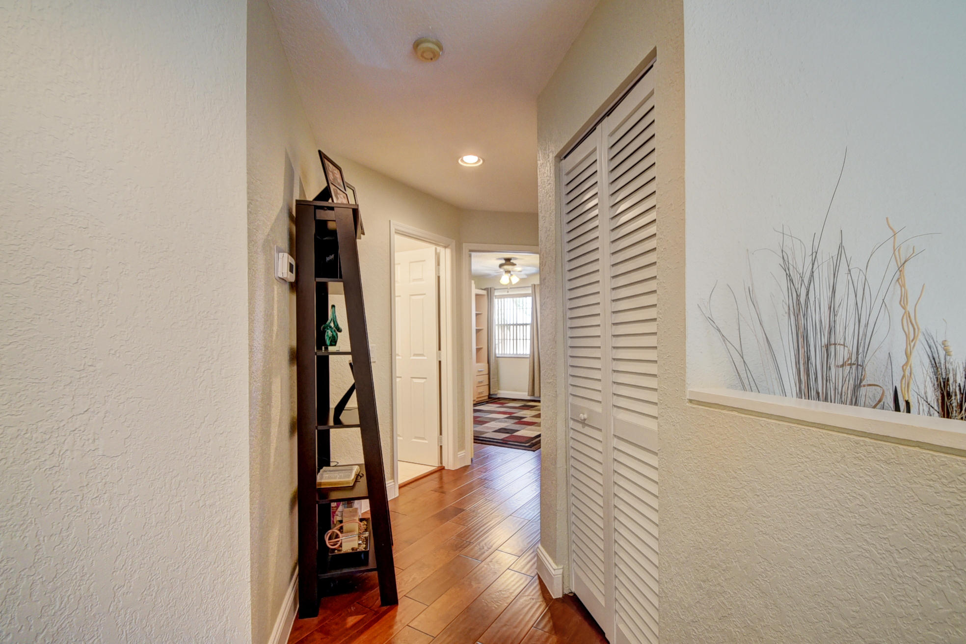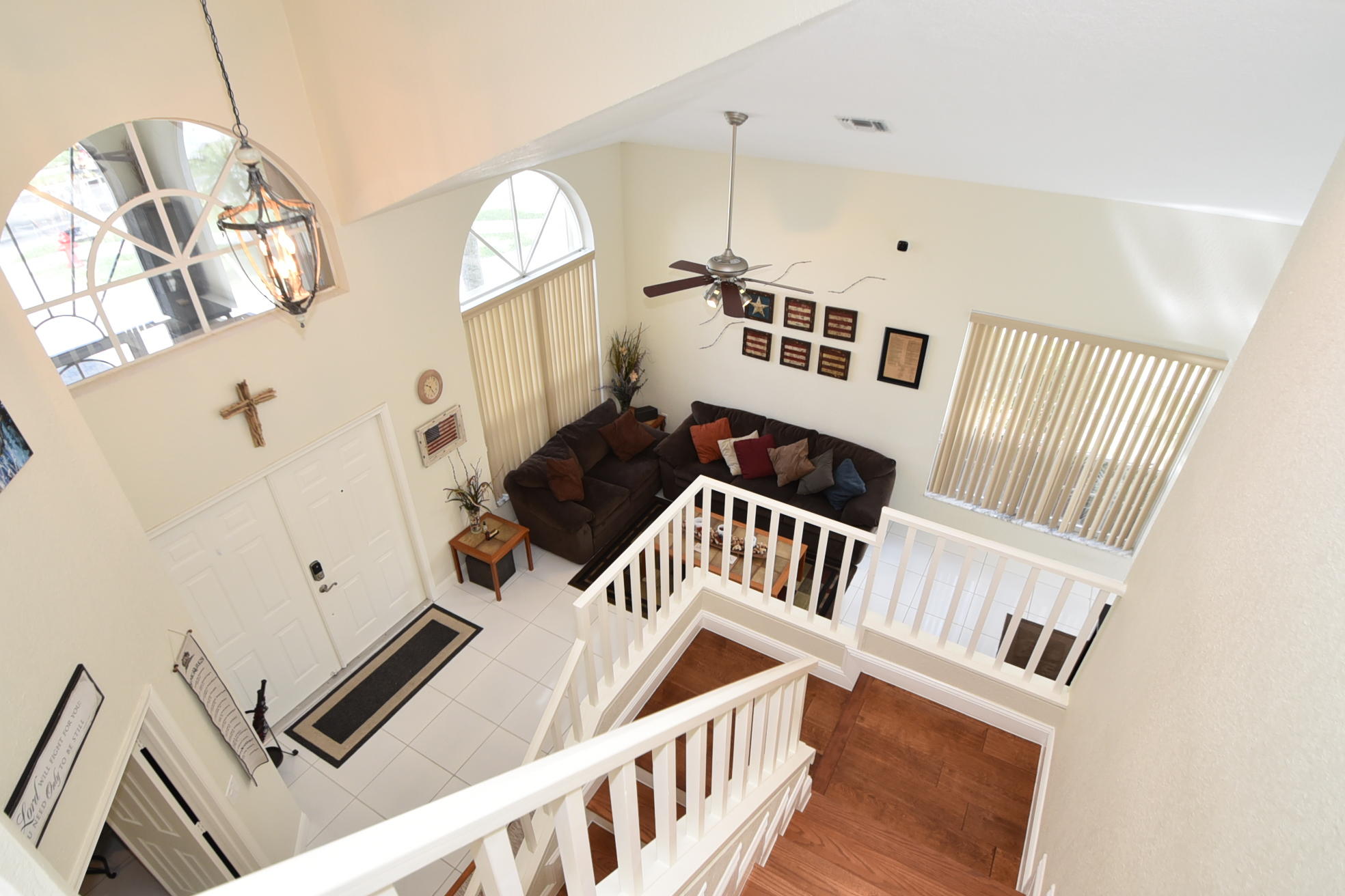 Beautifully maintained pool home on corner lot. Circular drive (pavers)installed when home was purchased by seller. Upgraded kitchen features granite counter tops, back splash and stainless steel appliances. Kitchen opens to family room and looks out to the screened pool and patio. Pool pump is approx 4 years old. Master bathroom has two separate sinks and shower has been updated. New wood flooring on steps and entire second floor including all three bedrooms. Tile throughout first floor, no carpeting! Fourth bedroom is on the first floor and is currently used as an office. High ceilings in the living and dining room. Laundry room is located inside the house on the first floor. Second bedroom Murphy bed is built-in. Secured storage under the stairs.