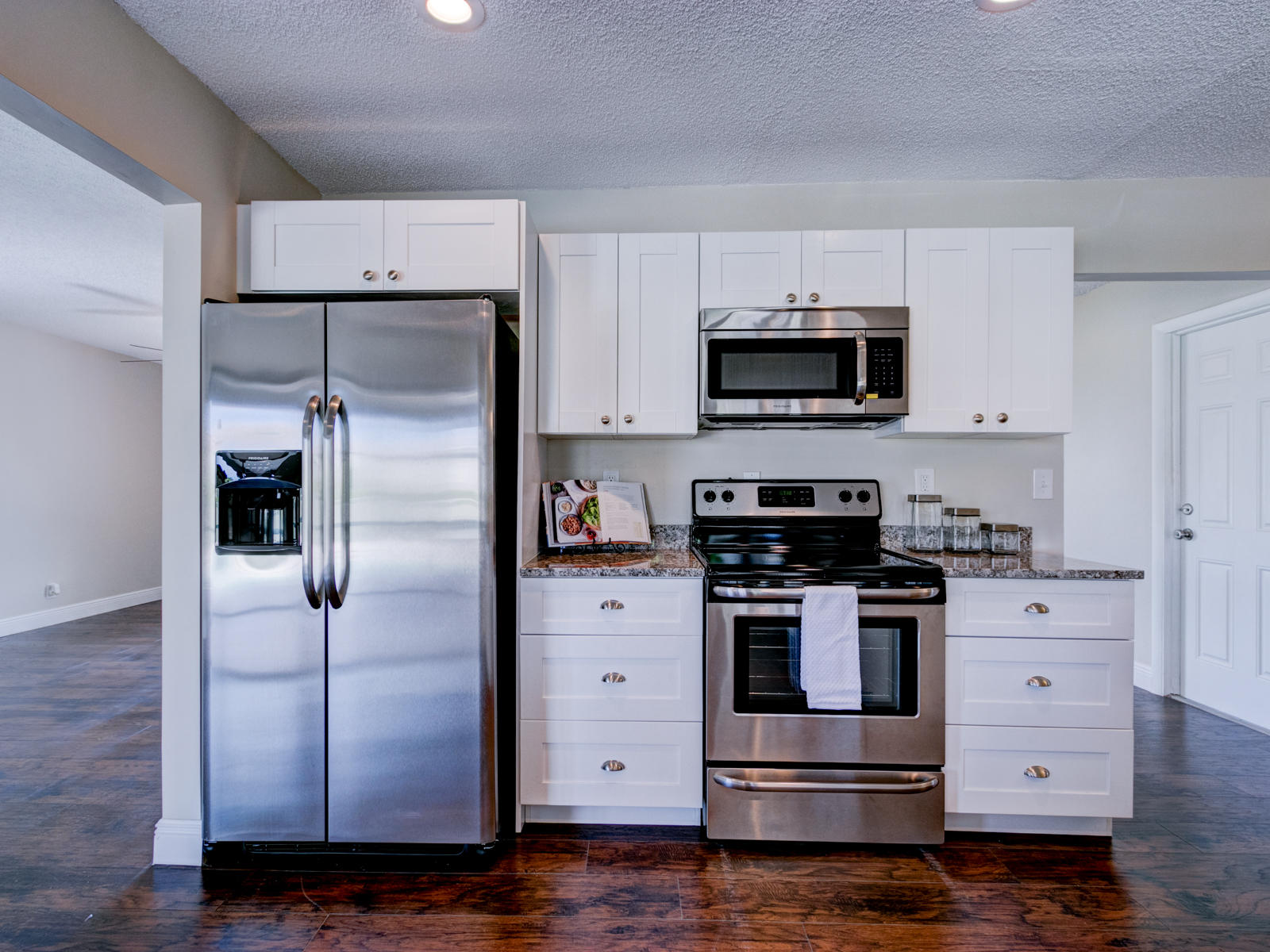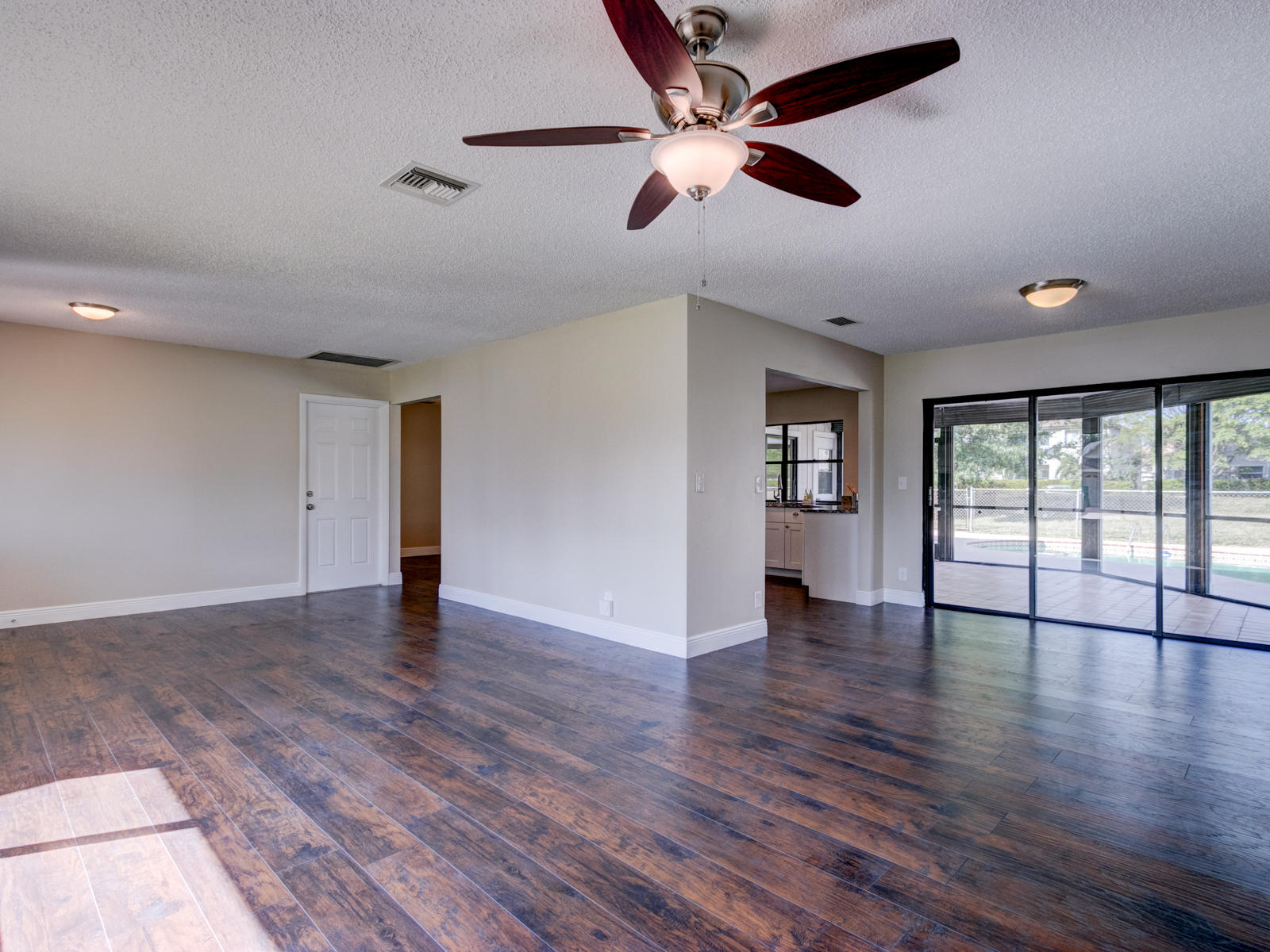 Beautifully remodeled 4/2/2 in Riviera Beach on quiet street in wonderful golf course community Lone Pine Estates. This home has it all! Updated granite kitchen w/ stainless appliances, fresh interior/exterior paint, laminate flooring throughout, new brushed nickel light fixtures, fans and door hardware. Split floor plan highlighted by master suite w/ walk in closet and fully remodeled designer bathroom. Large screened in patio off dining room overlooks sparkling POOL with no rear neighbors. Come see it today!