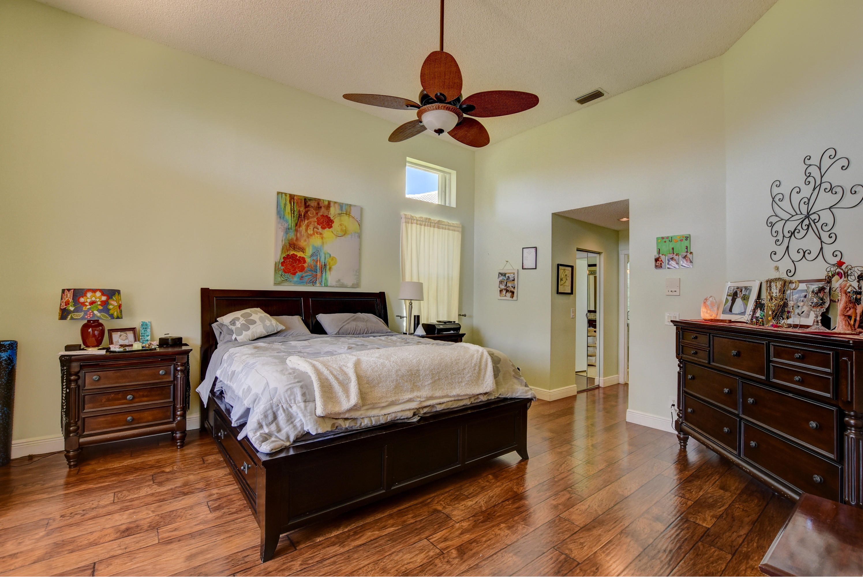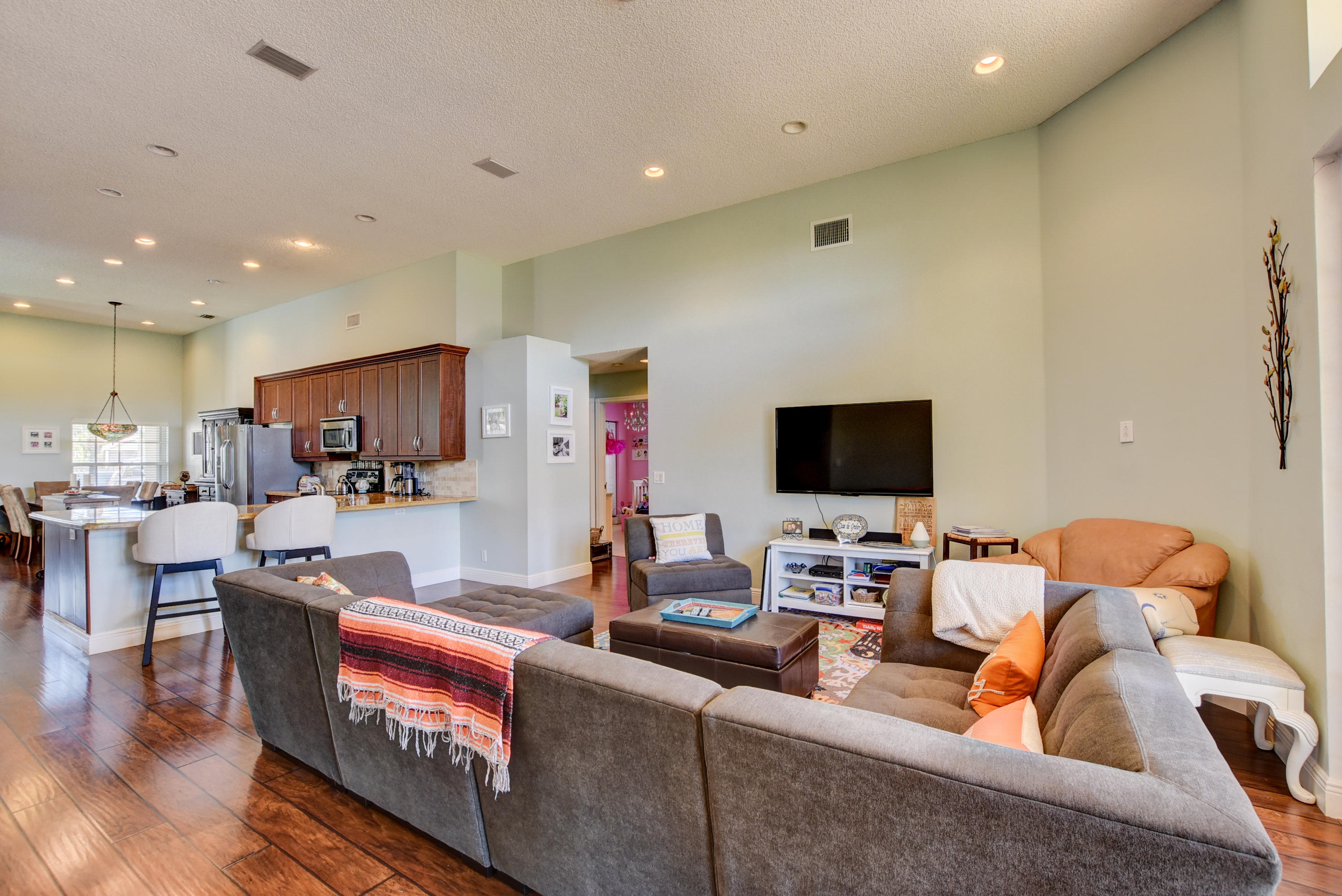 Spacious and open floor plan on a pie-shaped cul-de-sac lake lot!! New hardwood floors, updated kitchen stainless steal appliances. Split one story floor plan with two car garage. Spacious yard with room for a pool. Reverse osmosis water system! Resort style community with low HOA. HOA includes guard-gate,fitness,resort pool/spa,tennis,meeting rooms,party rooms,high speed internet and premium TV
