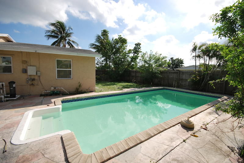 Beautiful two bedroom and one bathroom pool home. Tile floors throughout. Arched door openings. Central HVAC. Big open kitchen, with white cabinets, dishwasher, range, and microwave. Open floor plan. Nice sized bedrooms. Bonus room next to the pool with washer and dryer hook ups. Close to restaurants, shops, parks, schools, etc...