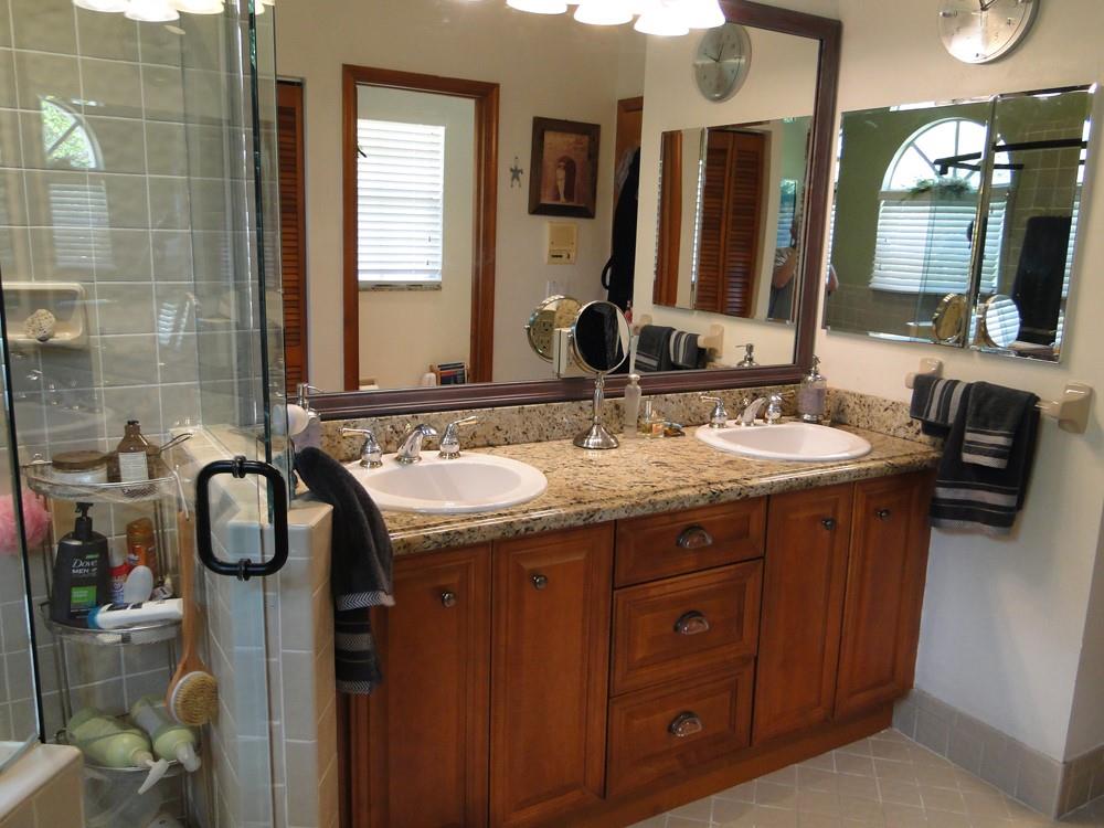 Stunning 1,000 ft. lake views from 6 rooms in unique Rock Creek designer home created by architect F. Snedaker Jr. On quiet, private street. French doors in MBR, BR2 open to 27 ft. balcony. Din. room & Fam. room French doors open to big patio. Major redecorating 2011-13. Cook's kitchen w/ deluxe wood cabinets, quartz counters. Full baths w/granite counters. Woodburning fireplace, 8 paddle fans, skylight, security system. 20" porcelain floor tile. New tile roof in 2013. Deck/dock w/roofed table f