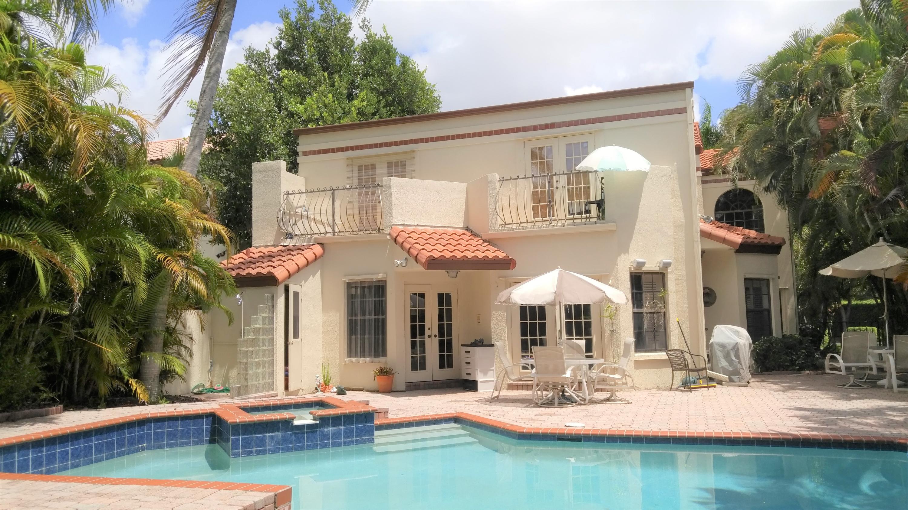 Spacious home in Boca Pointe with soaring ceilings and lots of light on a lushly landscaped lakefront lot. Fenced back yard, cabana bath and outside shower. Large master suite on ground level looks out to pool. Master bath offers both walk-in shower and Roman tub. Two upstairs bedrooms with balconies overlooking pool and lake. Valencia Boca Pointe is a manned gated community with optional membership in Boca Pointe Country Club. Country club membership is not mandatory.