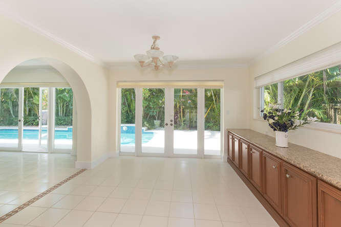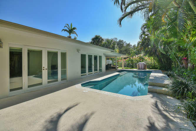 Step into this immaculate home and take in the long view to your own pool oasis. Located in a quiet east Boca location near schools, Boca Regional Community Hospital, dining and shopping. Home has great detail with elegant archways and crown molding. All impact windows and doors throughout the home. Mature landscaping provides privacy on the large corner lot. Fruit trees include mango, avocado, and starfruit. Circular driveway, fenced yard and quiet, private lot. Pool is a salt system and has a heater but owner did not use and provides no warranties on the heater. TV and mount on patio will convey. TV and mount in master bedroom does not convey. All measurements approximate.