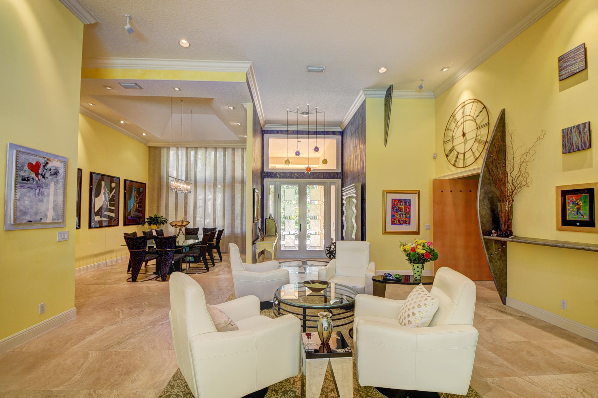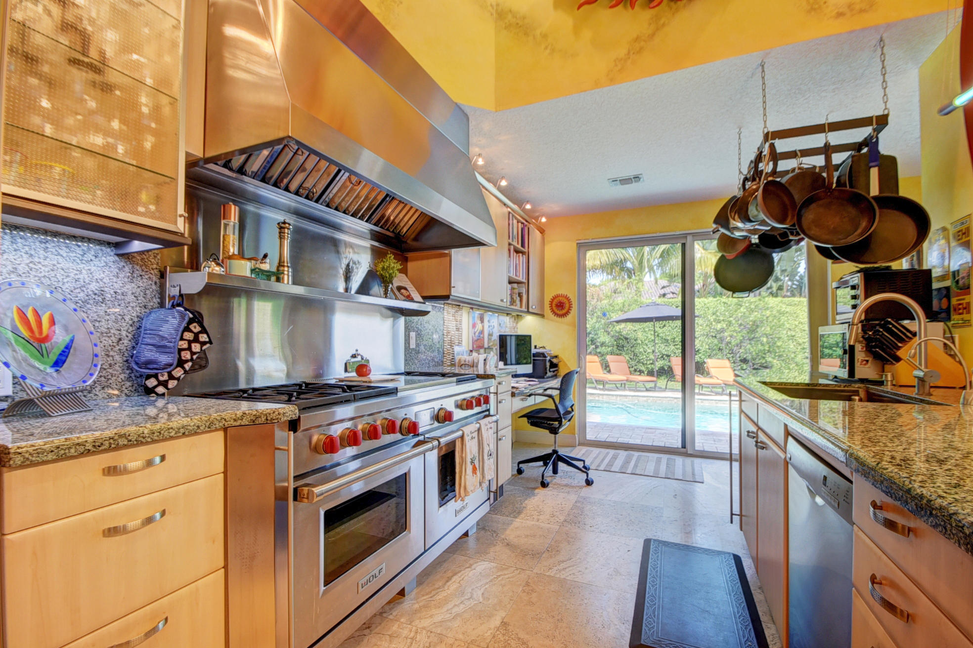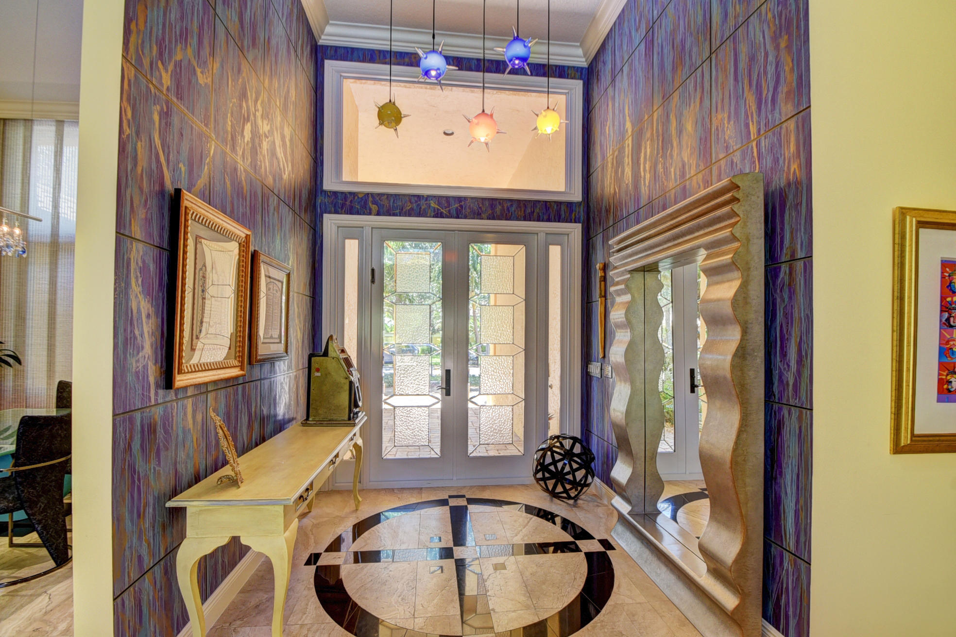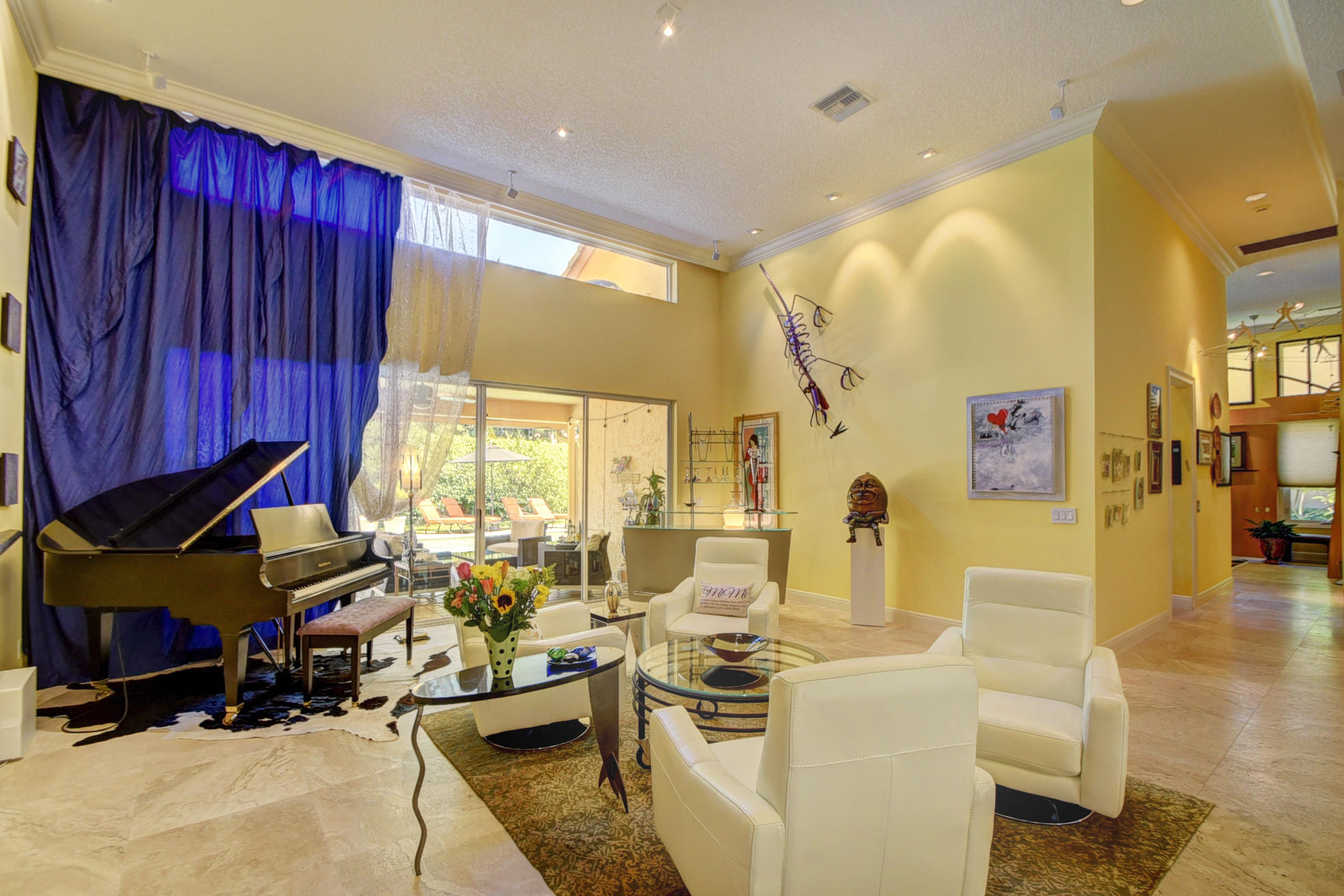 *BACK ON MARKET PRICED TO SELL* The moment you pull up to the marble circular drive and see the contemporary impact glass doors you will know that this is no ordinary home. Located on a private interior lot, the Saturnia floors welcome you to a spacious living room and formal dining room and family room. The huge custom kitchen featuring a professional Wolf gas range, Sub-Zero refrigerator/freezer and Bosch dishwasher is designed for a family who loves to cook and entertain! Behind a unique pivoting door you will find 3 spacious bedrooms and 2 bathrooms as well as the recently remodeled Master Suite. Relax by the pool or play in the yard. A new roof, water heater and A/C's with UV-lights and LED high hats and impact windows have been installed in recent years. Garage for 2 cars + golf car