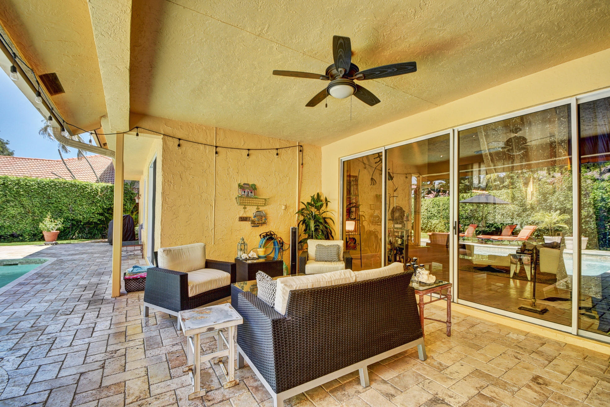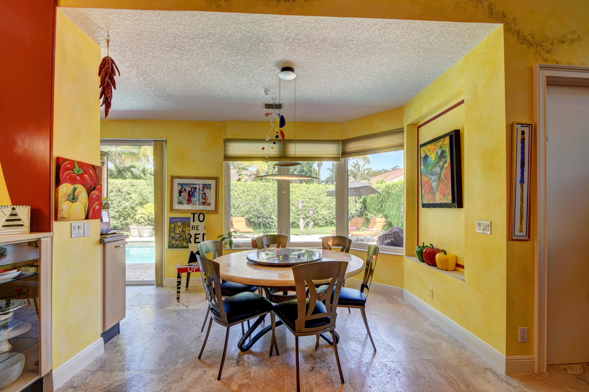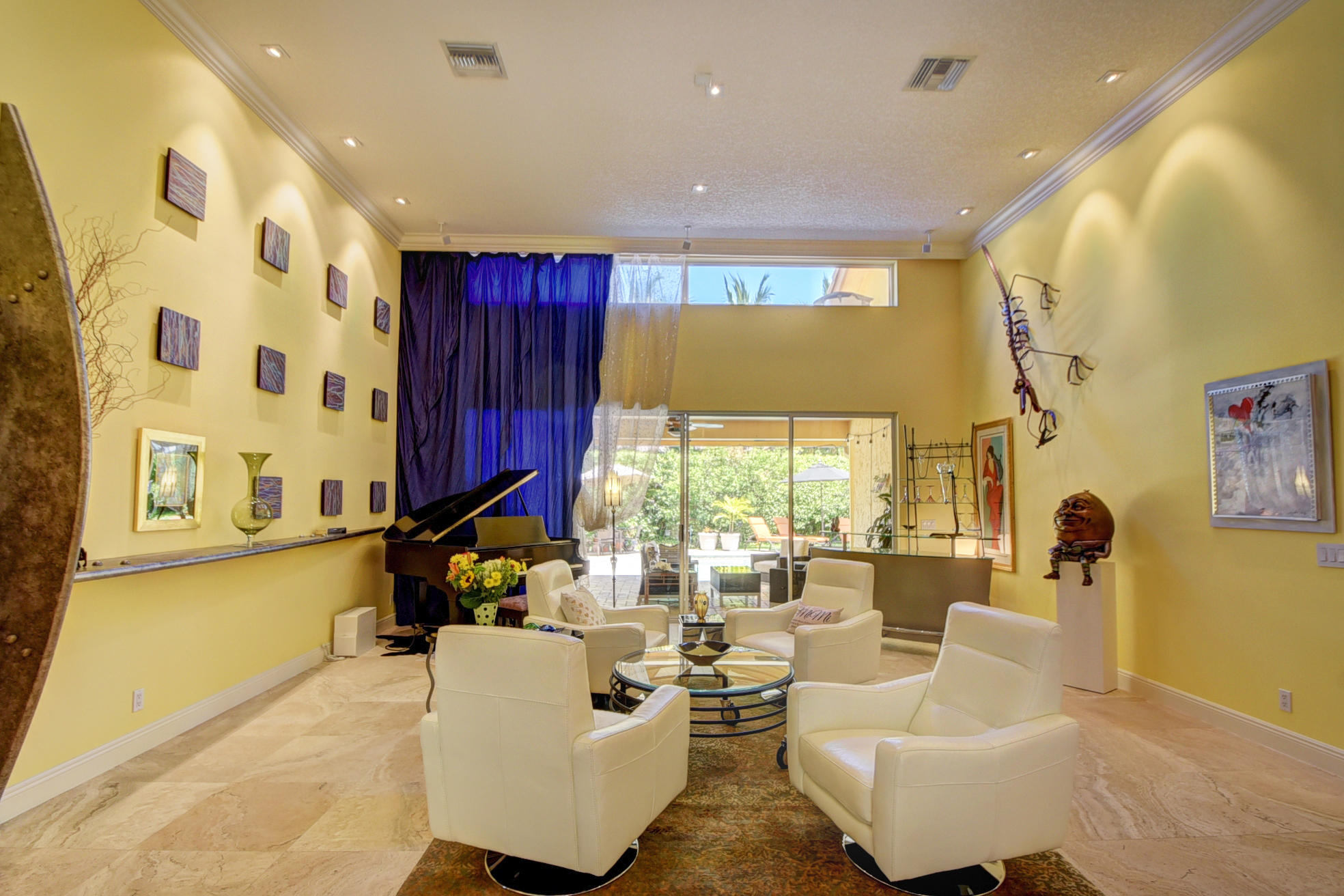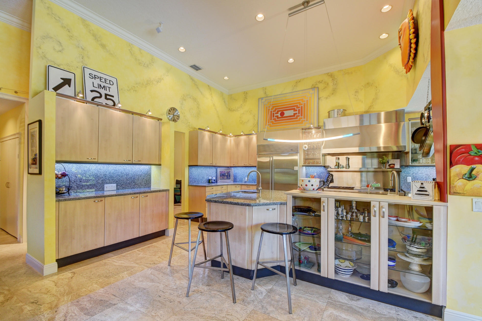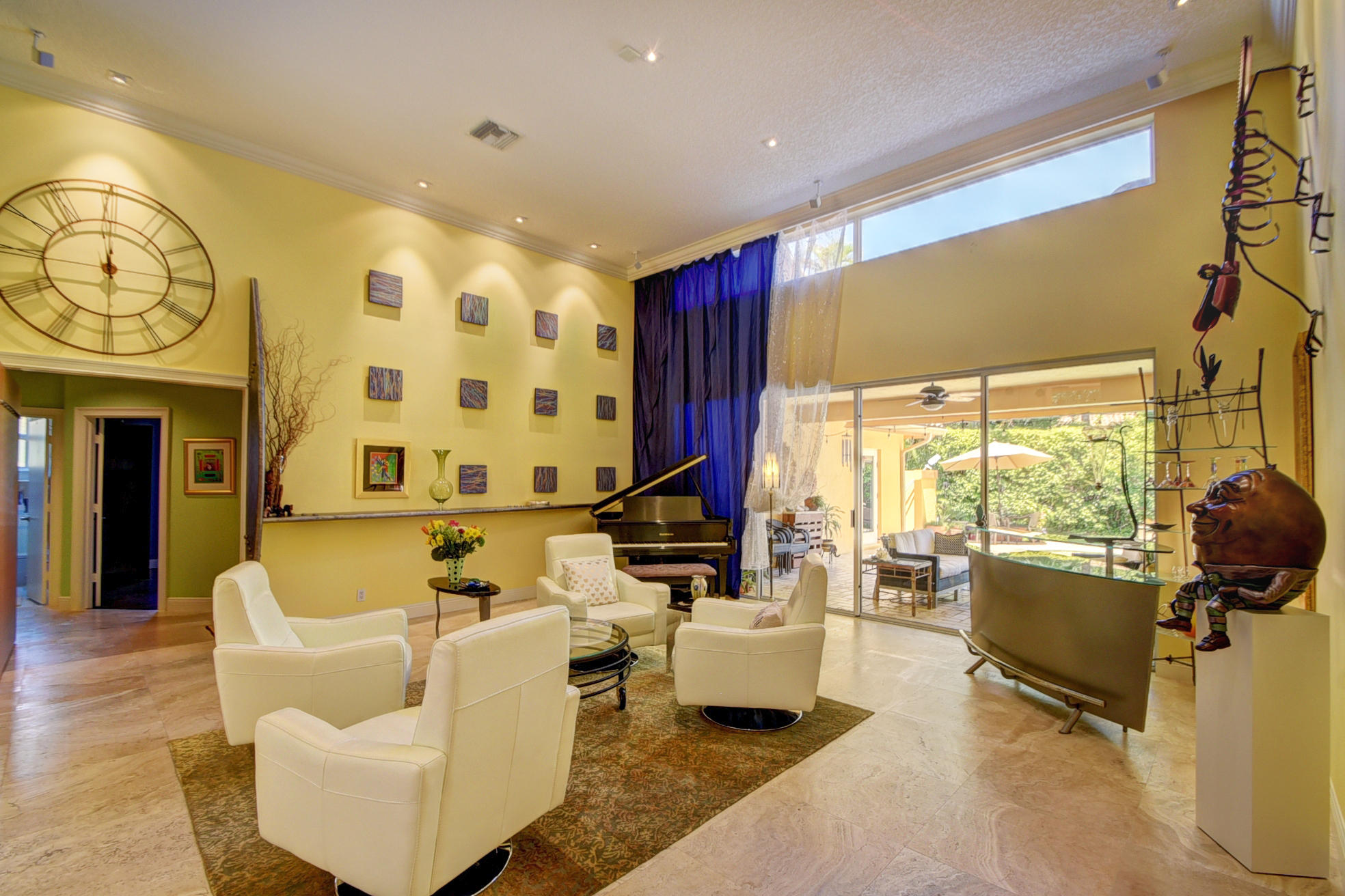 *BACK ON MARKET PRICED TO SELL* The moment you pull up to the marble circular drive and see the contemporary impact glass doors you will know that this is no ordinary home. Located on a private interior lot, the Saturnia floors welcome you to a spacious living room and formal dining room and family room. The huge custom kitchen featuring a professional Wolf gas range, Sub-Zero refrigerator/freezer and Bosch dishwasher is designed for a family who loves to cook and entertain! Behind a unique pivoting door you will find 3 spacious bedrooms and 2 bathrooms as well as the recently remodeled Master Suite. Relax by the pool or play in the yard. A new roof, water heater and A/C's with UV-lights and LED high hats and impact windows have been installed in recent years. Garage for 2 cars + golf car