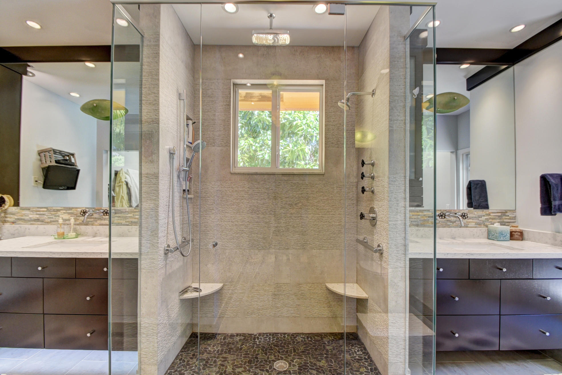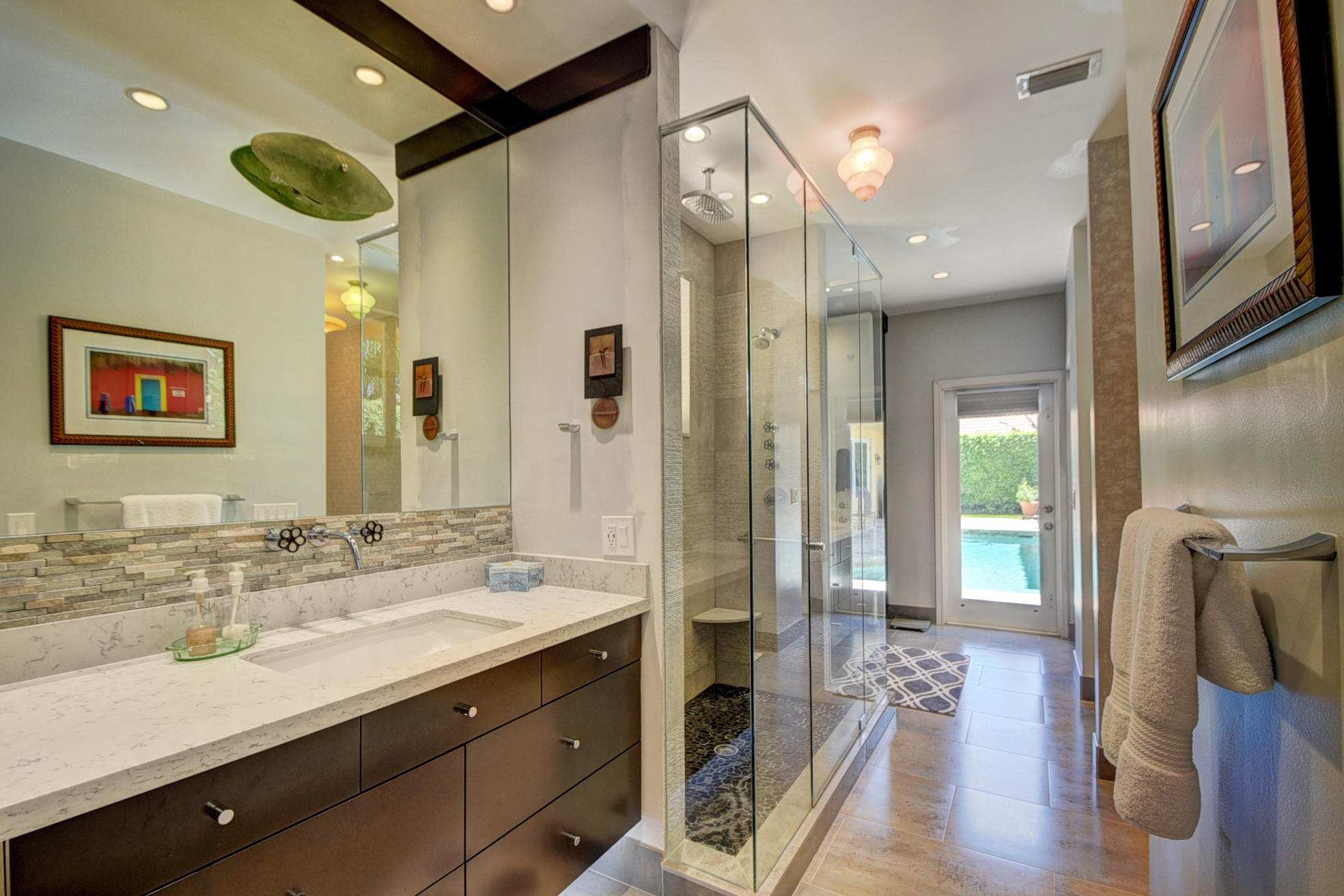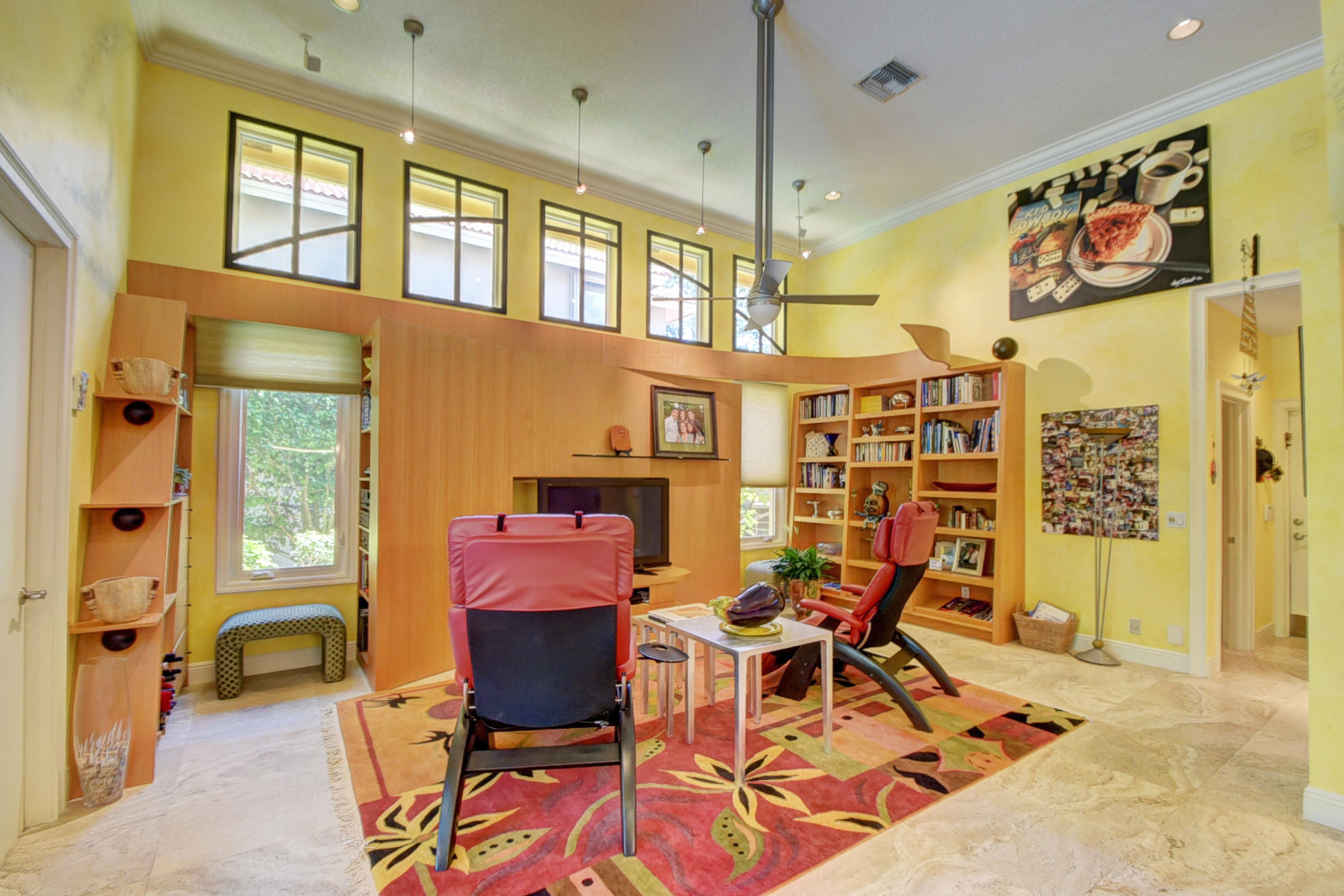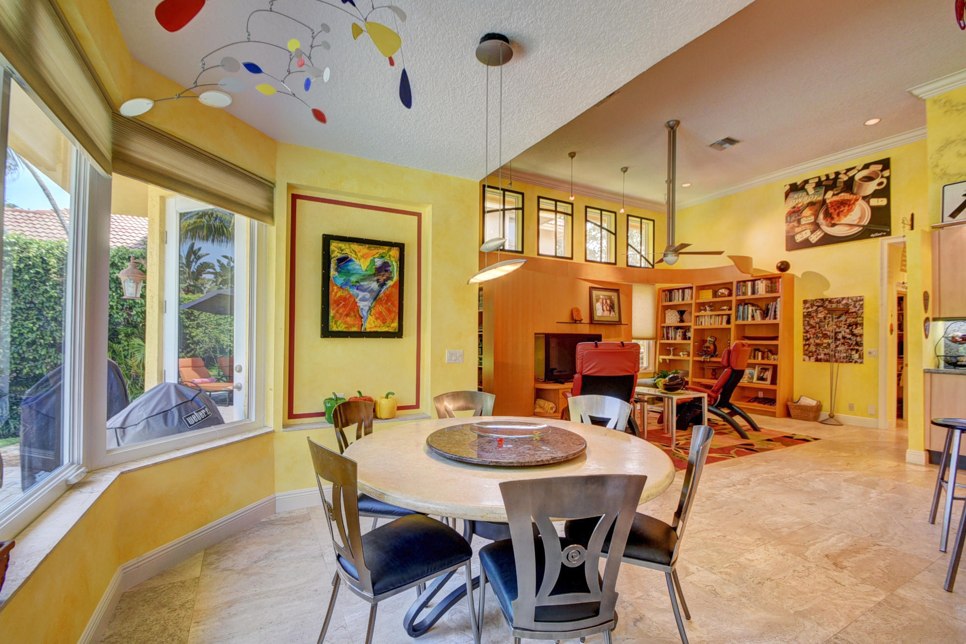 *BACK ON MARKET PRICED TO SELL* The moment you pull up to the marble circular drive and see the contemporary impact glass doors you will know that this is no ordinary home. Located on a private interior lot, the Saturnia floors welcome you to a spacious living room and formal dining room and family room. The huge custom kitchen featuring a professional Wolf gas range, Sub-Zero refrigerator/freezer and Bosch dishwasher is designed for a family who loves to cook and entertain! Behind a unique pivoting door you will find 3 spacious bedrooms and 2 bathrooms as well as the recently remodeled Master Suite. Relax by the pool or play in the yard. A new roof, water heater and A/C's with UV-lights and LED high hats and impact windows have been installed in recent years. Garage for 2 cars + golf car