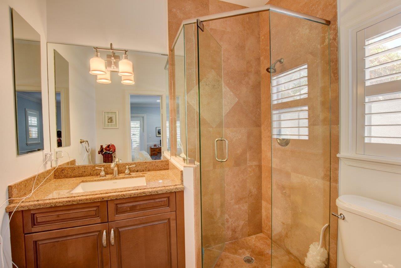 Charleston Place, an award winning community, is delightful! This beautiful corner "smart" townhome has ALL the upgrades! It features LED lights, Tankless water heater, crown moldings throughout engineered wood flooring, freshly painted kitchen cabinets, Sub-zero fridge, Miele dishwasher & double Thermador ovens. Wood burning fireplace in the living room + plantation shutters throughout & ALL en-suite bathrooms. 3rd bedroom - walk-in closet, bathroom w/ marble shower + granite countertops. Master Suite has custom closet built-ins, his/her vanities, marble shower + bidet. 2nd bedroom, custom closet built-ins, granite countertop. Upstairs there is an expansive 400sqft outdoor sanctuary. Tiled garage floor with custom cabinet/sink - use it for a gym, a den, or your car! A/C-2009,Roof-2013