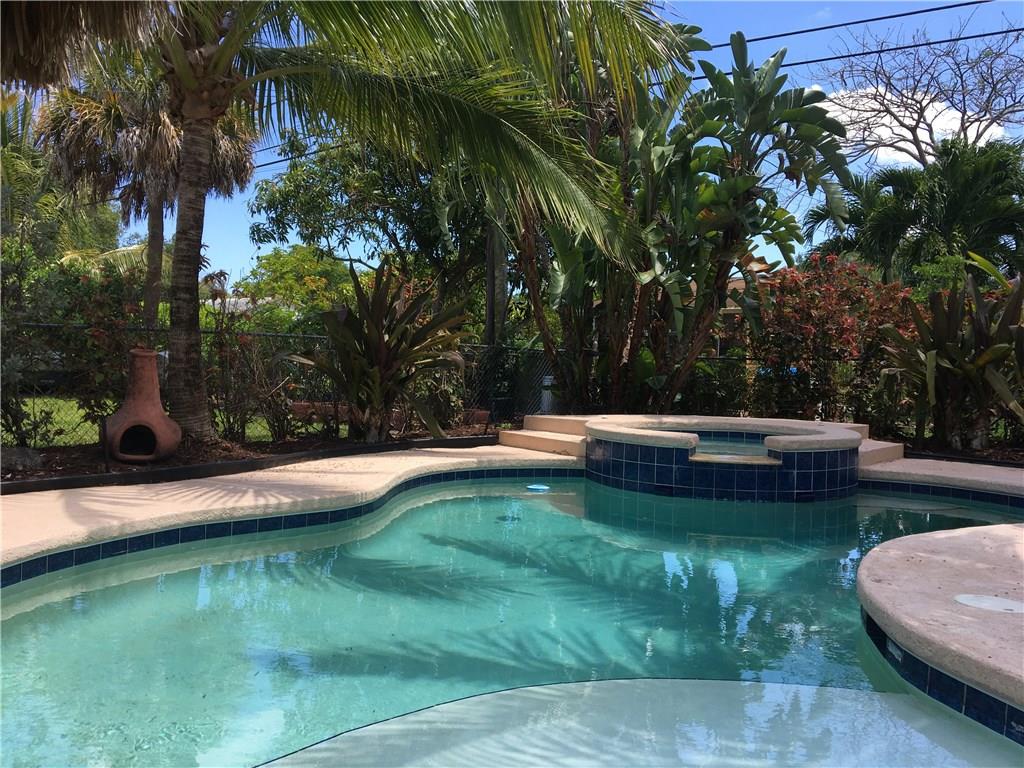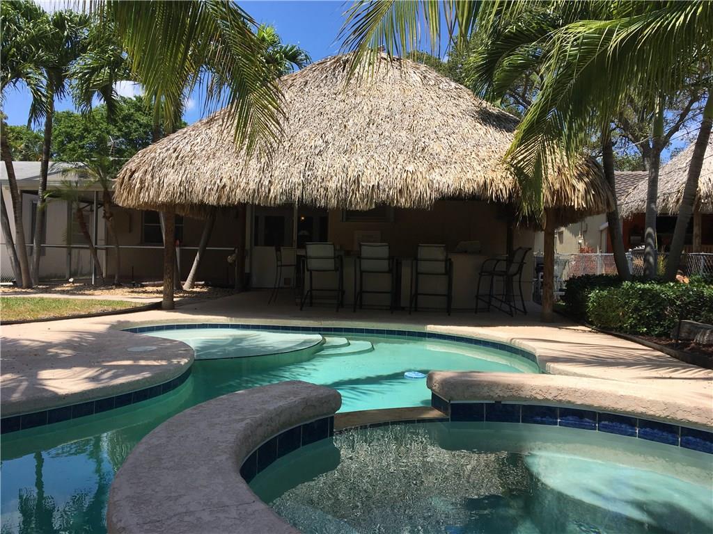 Fabulous 3/2 pool home conveniently located to I95, downtown and the beaches. Tile and laminate wood flooring, upgraded kitchen with stainless steel appliances, large screened in patio overlooking the pool & spa, tiki hut, gazebo and tropical fenced in landscaped yard. Complete stainless steel kitchen under tiki hut and bar for all of your outside cooking and entertainment. New roof installed 2016, newer A/C, freshly painted interior & exterior, 7550 watt generator, accordion hurricane shutters. Must see