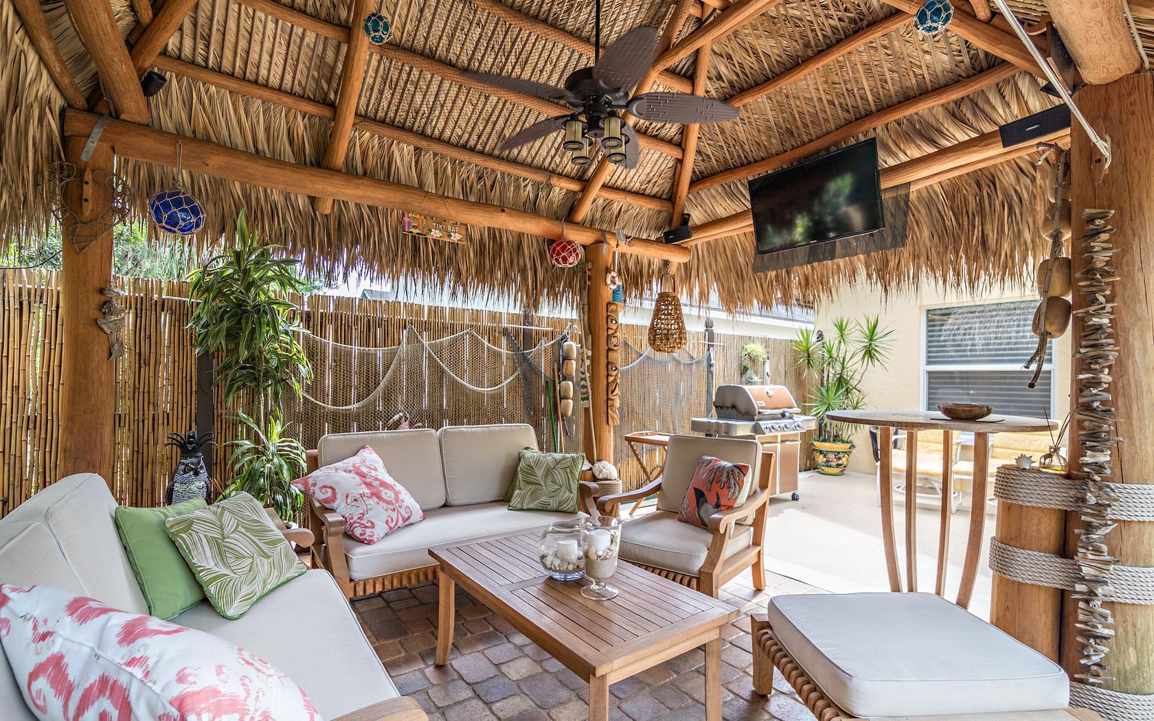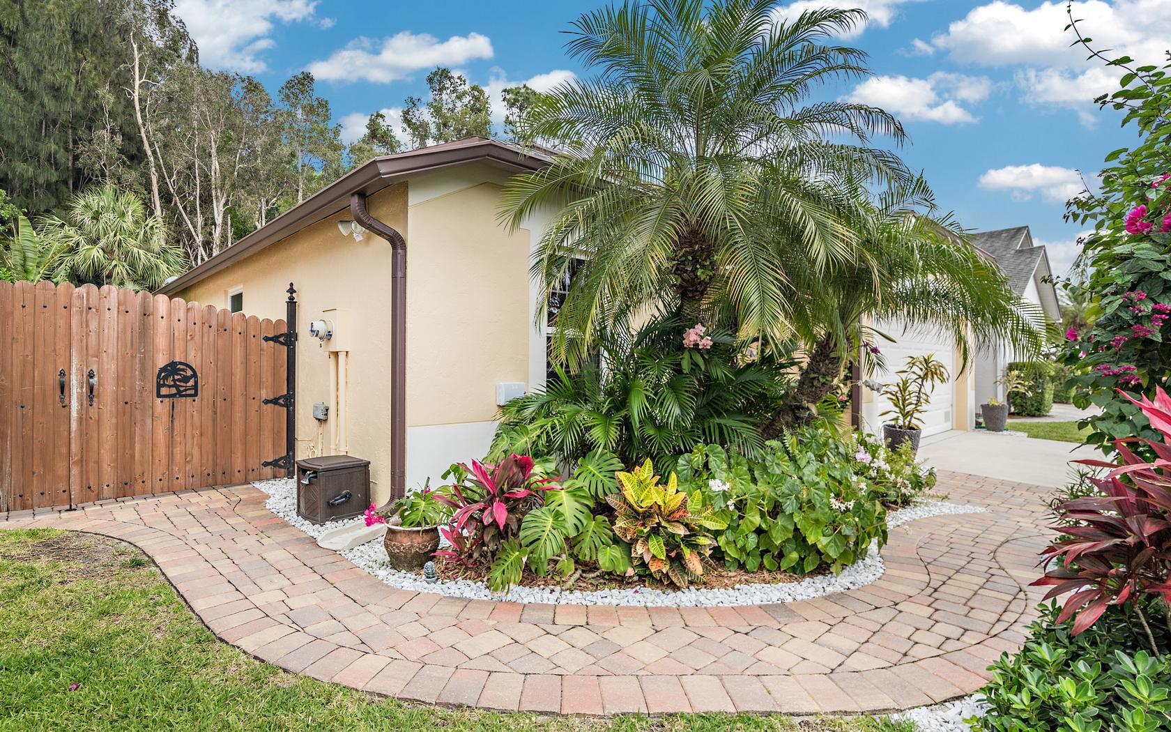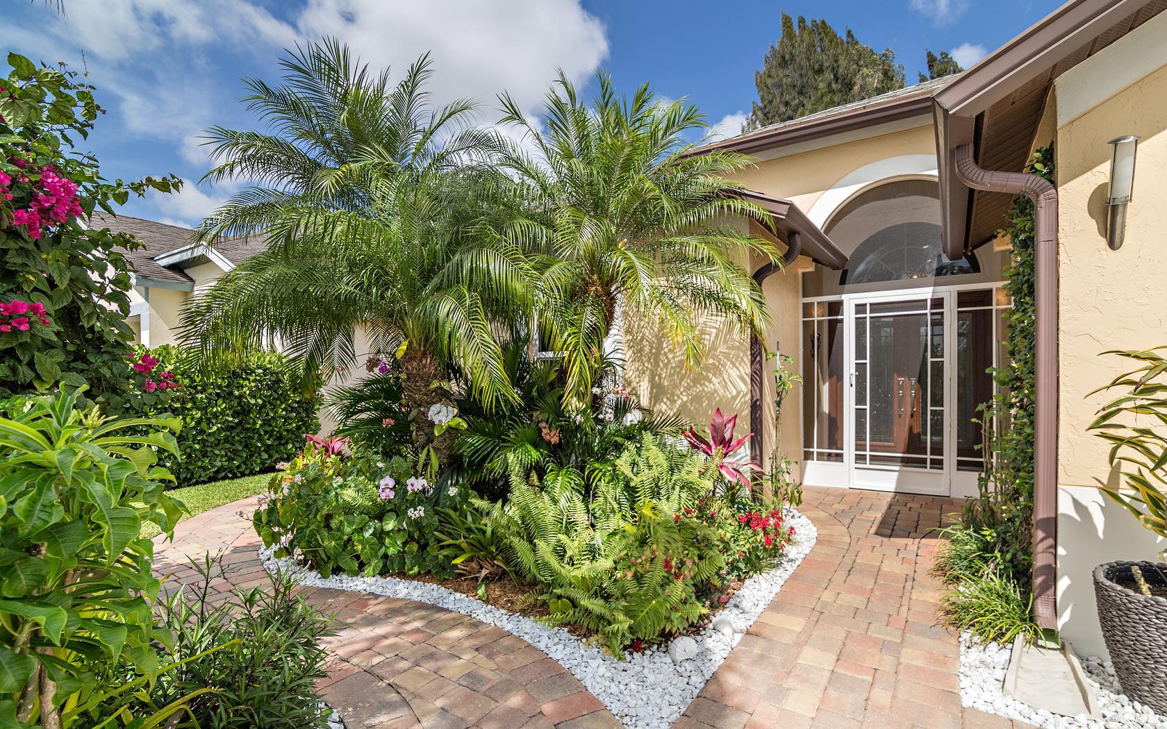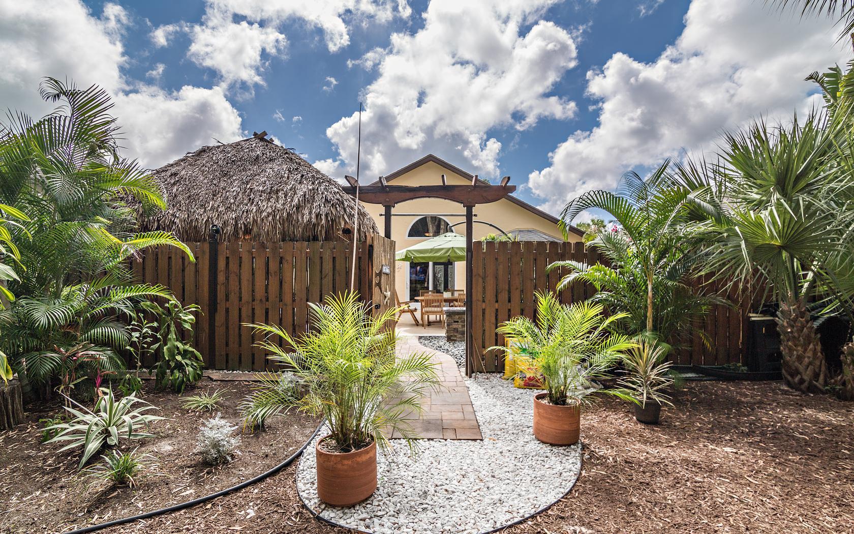 From the immaculately kept front yard with beautiful landscaping to the island like ambiance that welcomes you in the backyard, this exquisitely and completely renovated east facing 3 bedroom/2 full bath home must be seen to truly appreciate the thought, expense and upgraded details. This gated community is within walking distance to the new Palm Beach Ball Park and is in a great location w/in the community with no neighbor behind or in front of the home creating wonderful privacy and space. Very convenient to I-95, restaurants, shopping, & beaches. Presenting a stunning tiki hut and fire pit with lighting for evening gatherings, bamboo fencing, a patio perfect for entertaining day and night all surrounded by lush, tropical landscaping & gorgeous landscape lighting front and back.