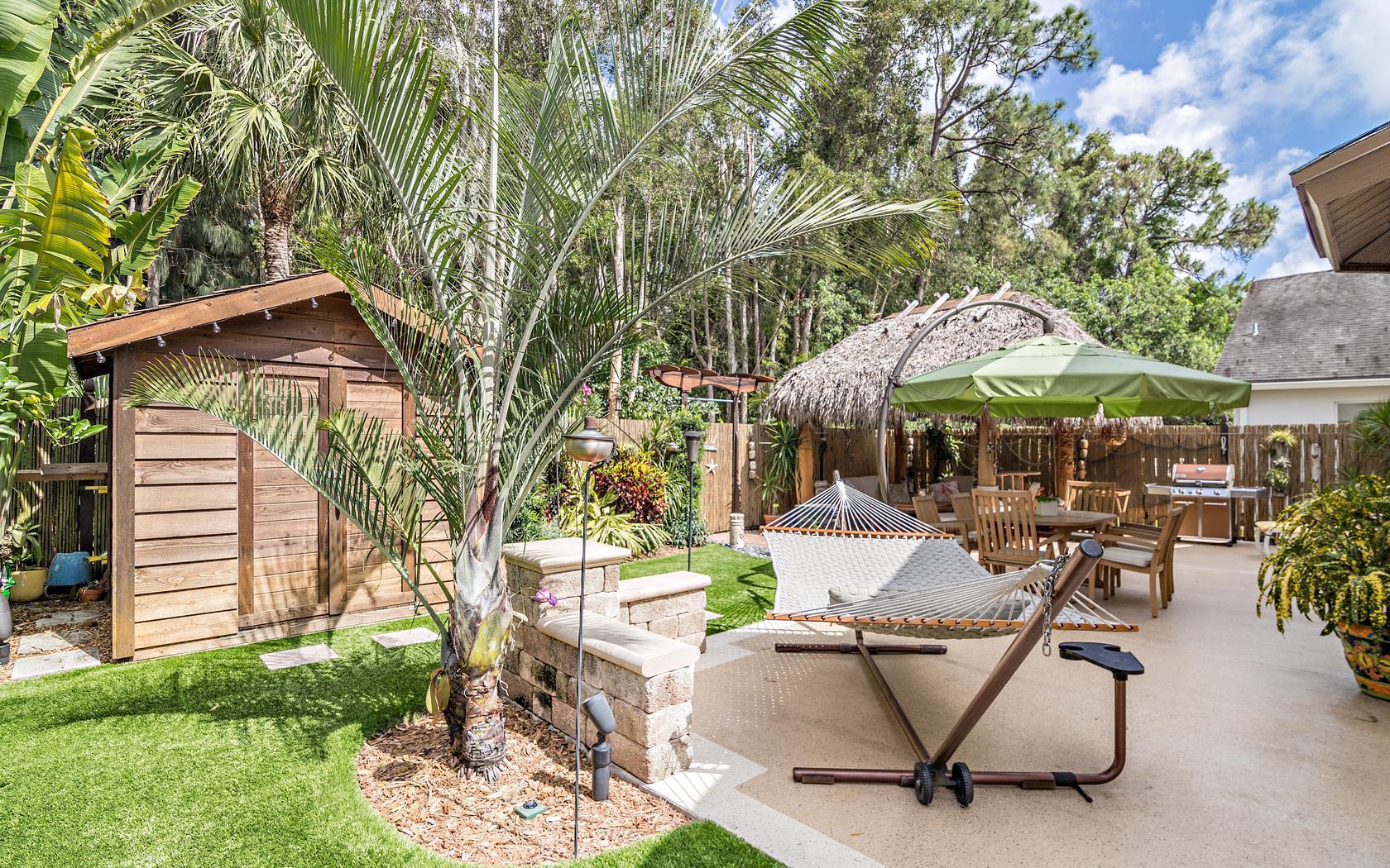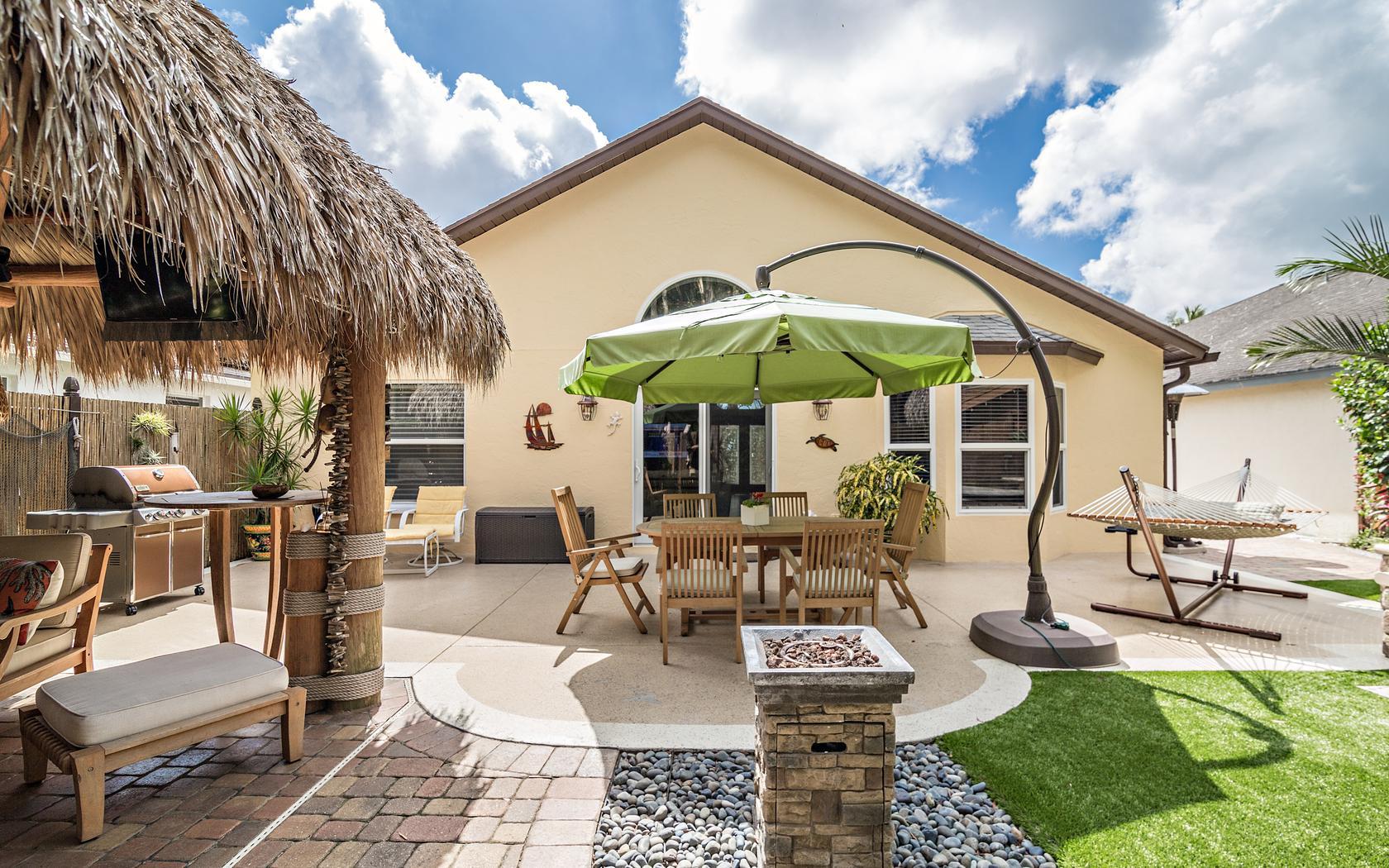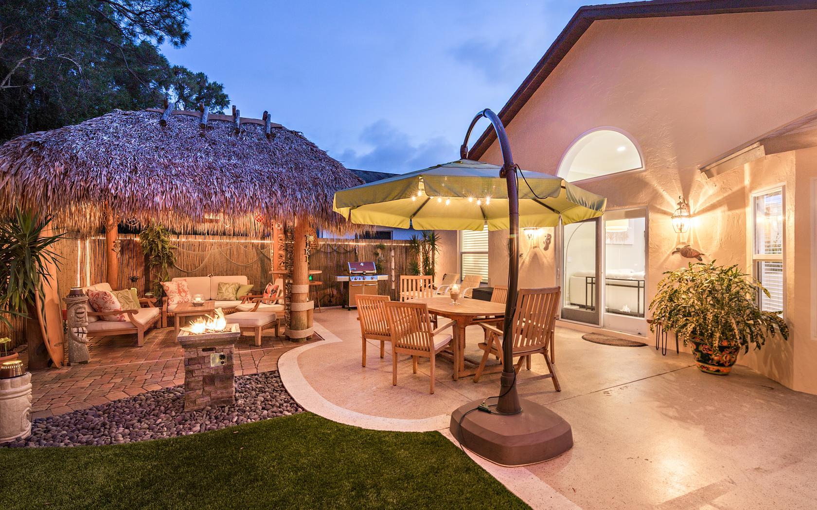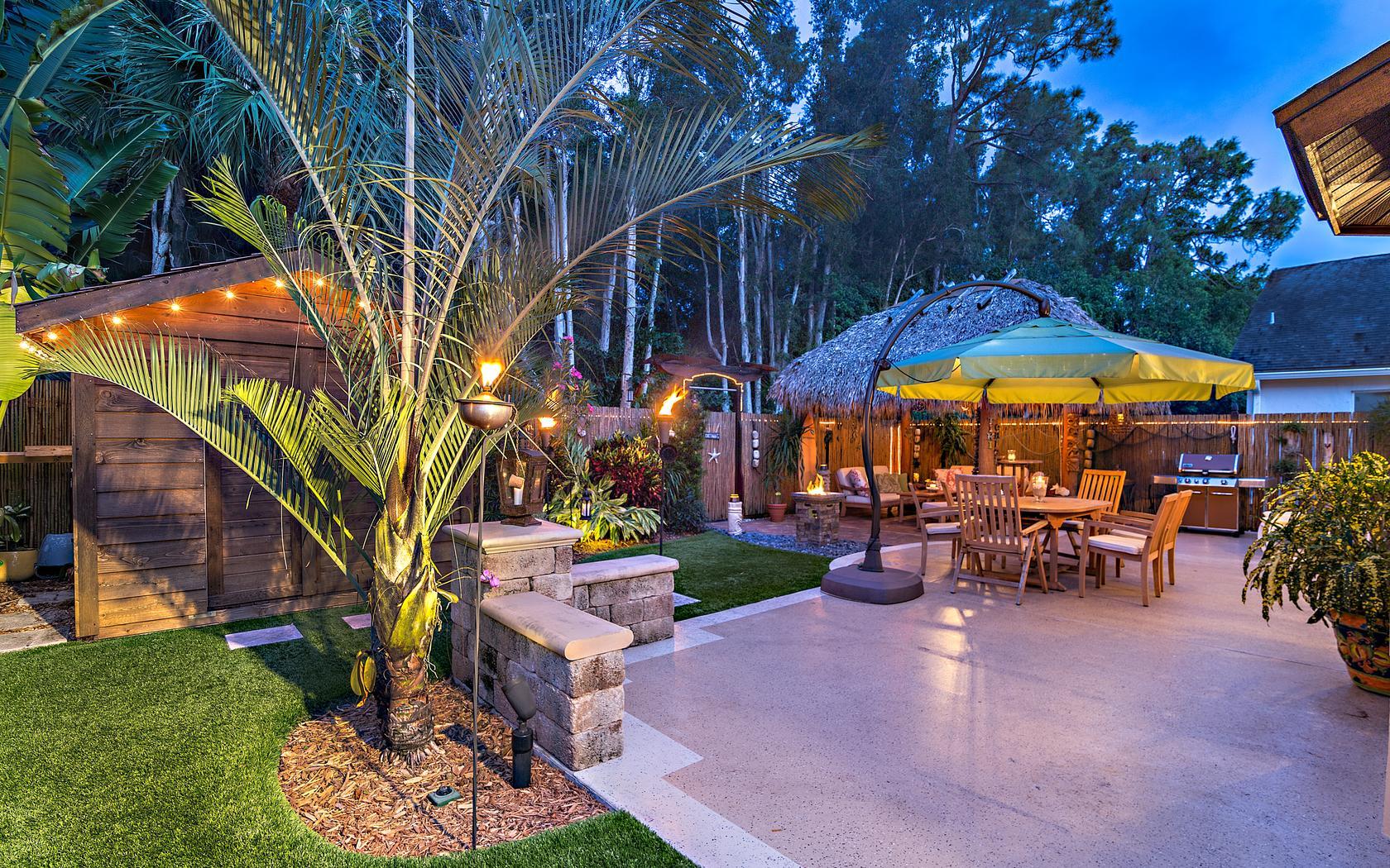 From the immaculately kept front yard with beautiful landscaping to the island like ambiance that welcomes you in the backyard, this exquisitely and completely renovated east facing 3 bedroom/2 full bath home must be seen to truly appreciate the thought, expense and upgraded details. This gated community is within walking distance to the new Palm Beach Ball Park and is in a great location w/in the community with no neighbor behind or in front of the home creating wonderful privacy and space. Very convenient to I-95, restaurants, shopping, & beaches. Presenting a stunning tiki hut and fire pit with lighting for evening gatherings, bamboo fencing, a patio perfect for entertaining day and night all surrounded by lush, tropical landscaping & gorgeous landscape lighting front and back.