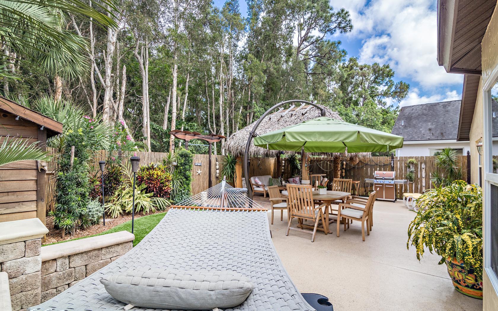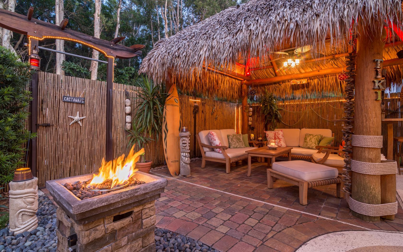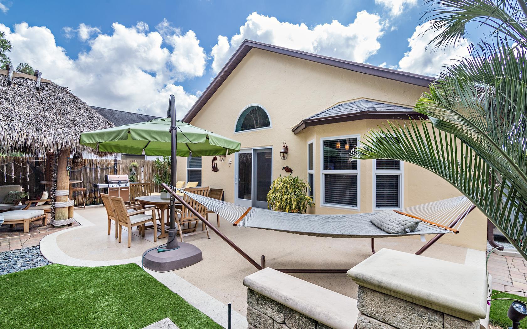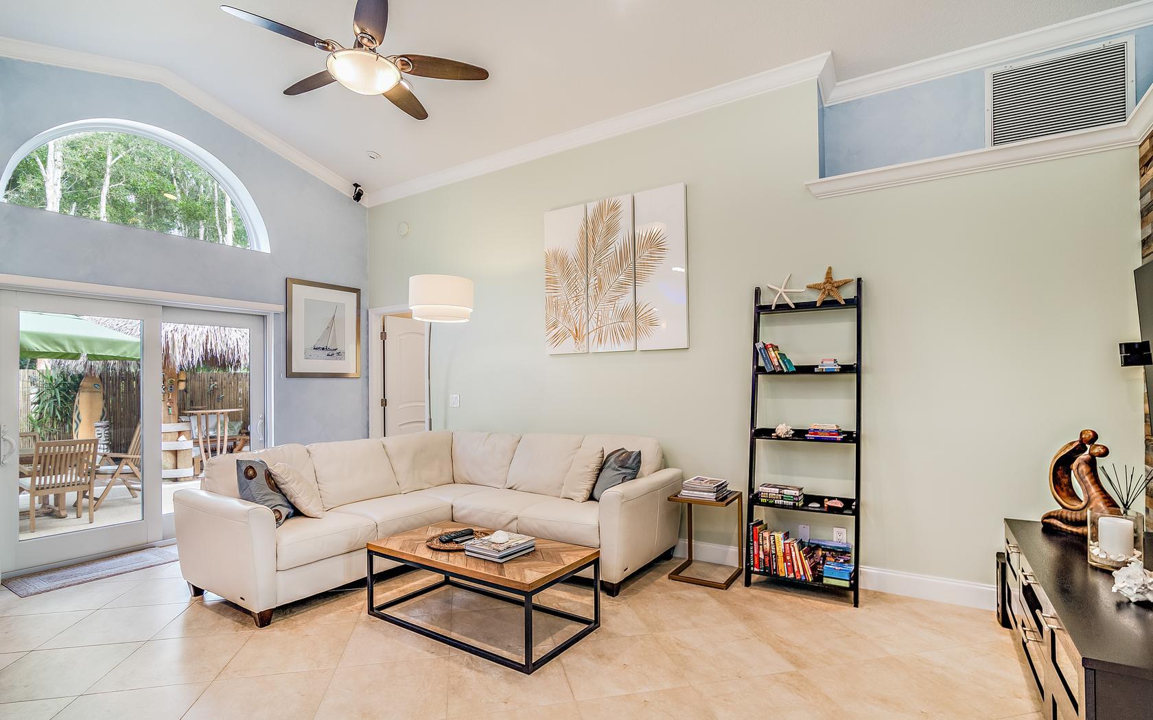 From the immaculately kept front yard with beautiful landscaping to the island like ambiance that welcomes you in the backyard, this exquisitely and completely renovated east facing 3 bedroom/2 full bath home must be seen to truly appreciate the thought, expense and upgraded details. This gated community is within walking distance to the new Palm Beach Ball Park and is in a great location w/in the community with no neighbor behind or in front of the home creating wonderful privacy and space. Very convenient to I-95, restaurants, shopping, & beaches. Presenting a stunning tiki hut and fire pit with lighting for evening gatherings, bamboo fencing, a patio perfect for entertaining day and night all surrounded by lush, tropical landscaping & gorgeous landscape lighting front and back.