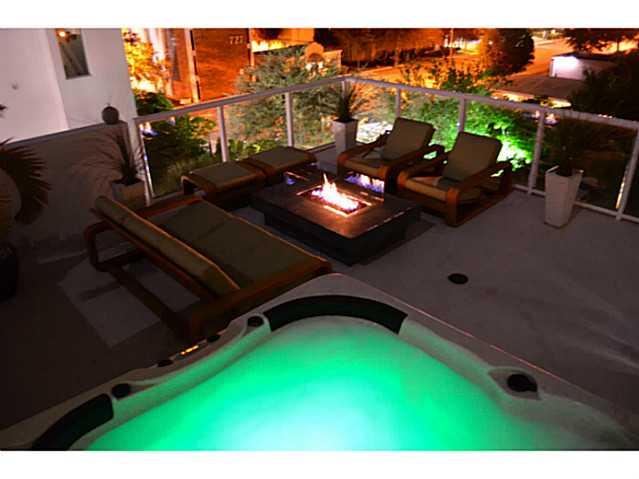 Only unit with this floor plan out of 57 units. Best location in complex, located just off of pool area with private garden & fountain at front door. Custom features include, bay window with eat in kitchen, balconies on 2nd, 3rd floors with rooftop terra ce and outdoor shower and hot tub. 9,10,11 foot ceilings, marble floors, wood stairs, custom shades, baseboards & closet. Granite counter tops, stainless appliances. True 3 bedroom, 3.5 bath. Open and spacious. 2 car garage. Must see. Premium unit.