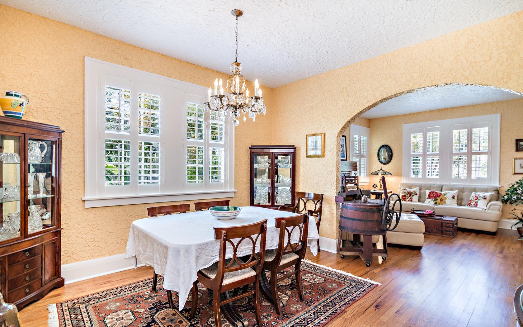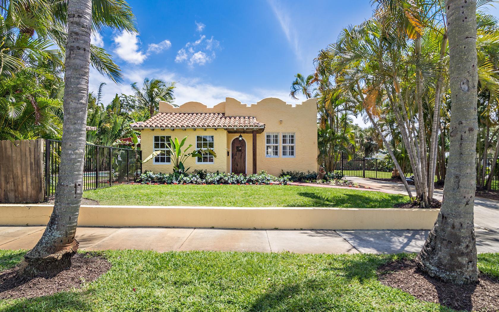 Historic Flamingo Park home situated perfectly on a large 125X125 lot. This Spanish Mission home has 2 bedrooms, 2 baths, private pool, 2 car garage and retains it's original charm while boasting many updates! Impact windows, Bahama shutters, newer roof & new awning are just a few of the current renovations. Built in 1925, this residence has large bright rooms, 9 ft ceilings, hardwood floors, original doors with glass door knobs and arched doorways. As you enter, the unique & original features are wonderfully displayed, the pecky cypress mantel above the fireplace complements the original pecky cypress front door and ceiling in the Florida room. Large kitchen, great master suite, French doors to the covered patio & pool area! All set for Florid living in this beautifully landscaped oasis!