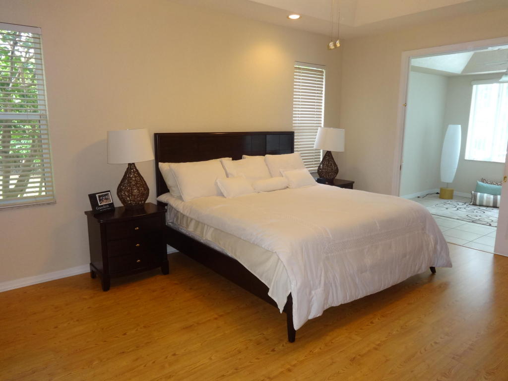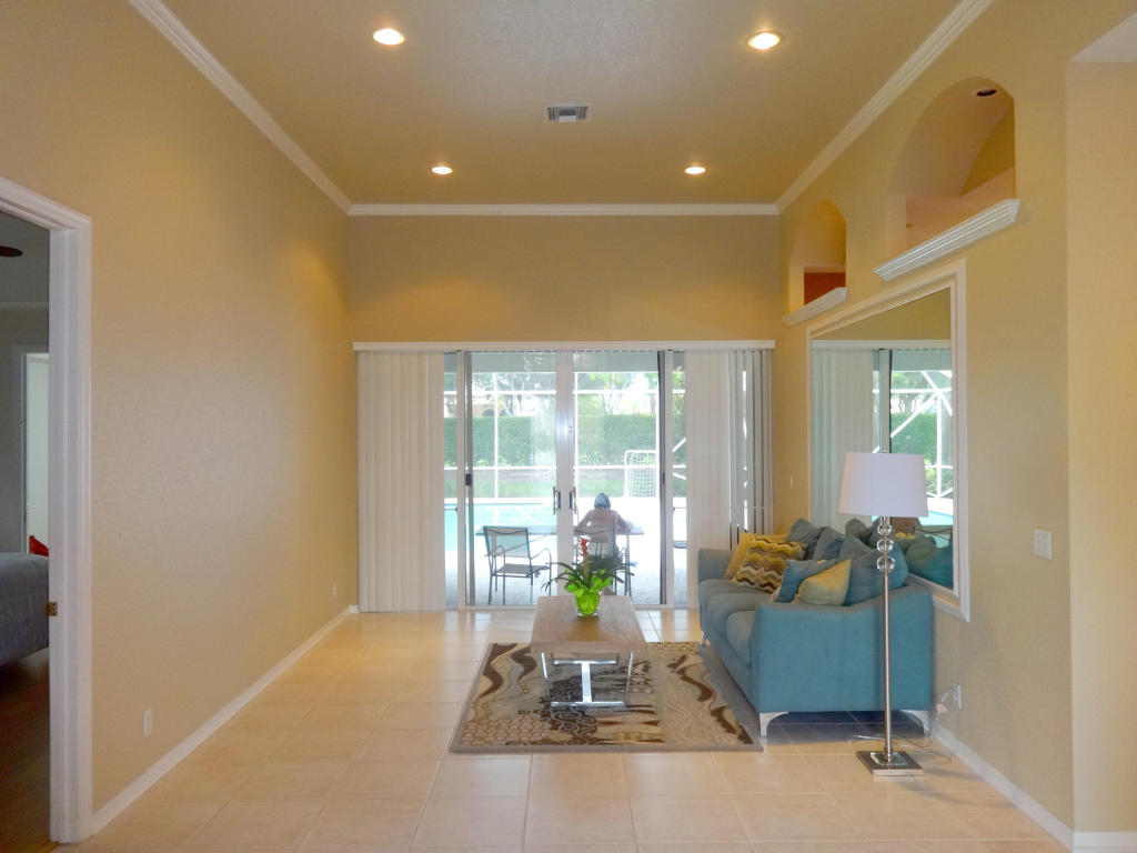 Beautiful 4 bedroom pool home on private cul de sac lot. Popular Hudson Model w/split bedrooms. Luxurious Master Suite w/Jacuzzi Tub plus a bonus 11x12 Den/Sitting Room/Office. Open kitchen w/cozy breakfast area, granite counters, stainless LG refrigerator overlooks family room. Circular decorative driveway. A/C 2003.Crown Moldings. Tile and laminate floors. Spacious Pool/Porch/Patio area is screened w/Kool Deck surface. Nice backyard with room to play. Pretty landscaping w/decorative circular drive and island. Mostly accordion shutters w/some clear panels. ''A'' Rated Schools. 24 Hour Security, Swim, Tennis & Fitness Center
