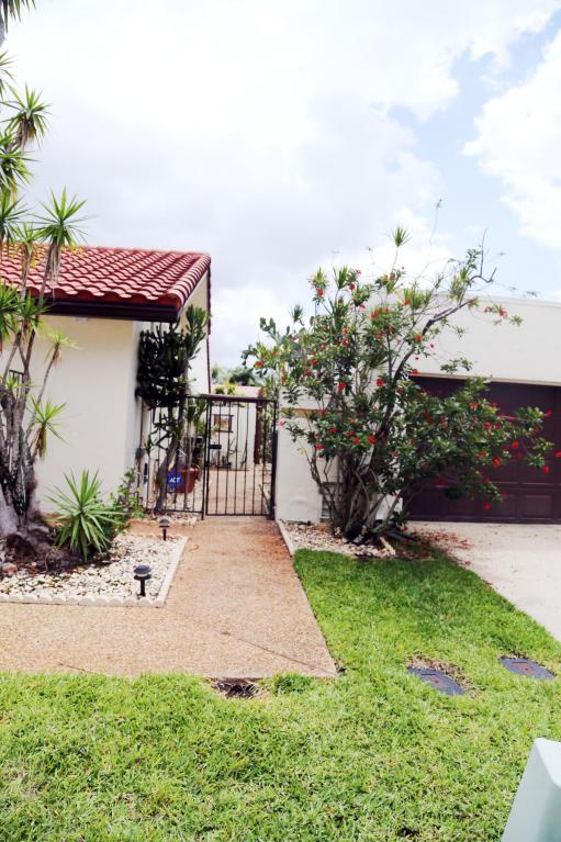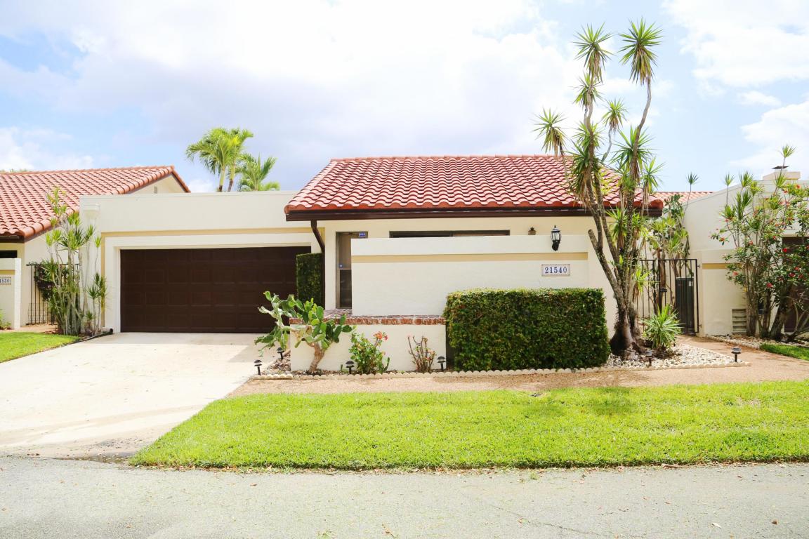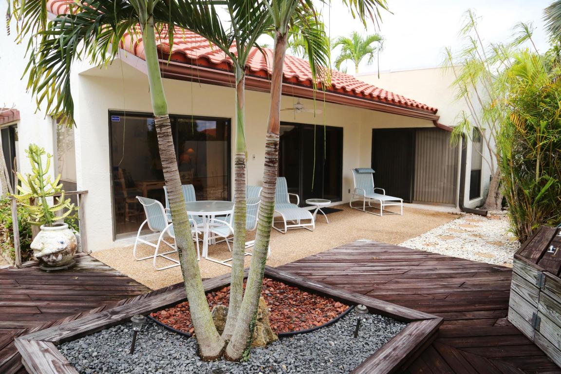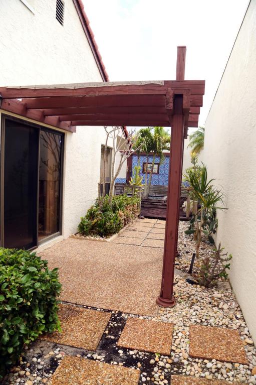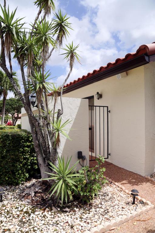 This is a three bedroom in the body of a two bedroom. Southwest inspired villa with 2 master bedrooms, 2 full bathrooms plus a separate entertaining area/den with wet bar and custom built-in office area. (Can be converted to 3rd bedroom). Home also boasts knock-down walls throughout and ceramic tile in main living areas. An open concept living/dining area features vaulted ceilings and a working fireplace. A private patio is covered and a backyard sun deck great for entertaining. Centrally located between I95 and FL Turnpike, PBIA and FLL airports, great restaurants, fabulous shopping, highly rated hospitals and all houses of worship. No rentals for the first year of ownership.