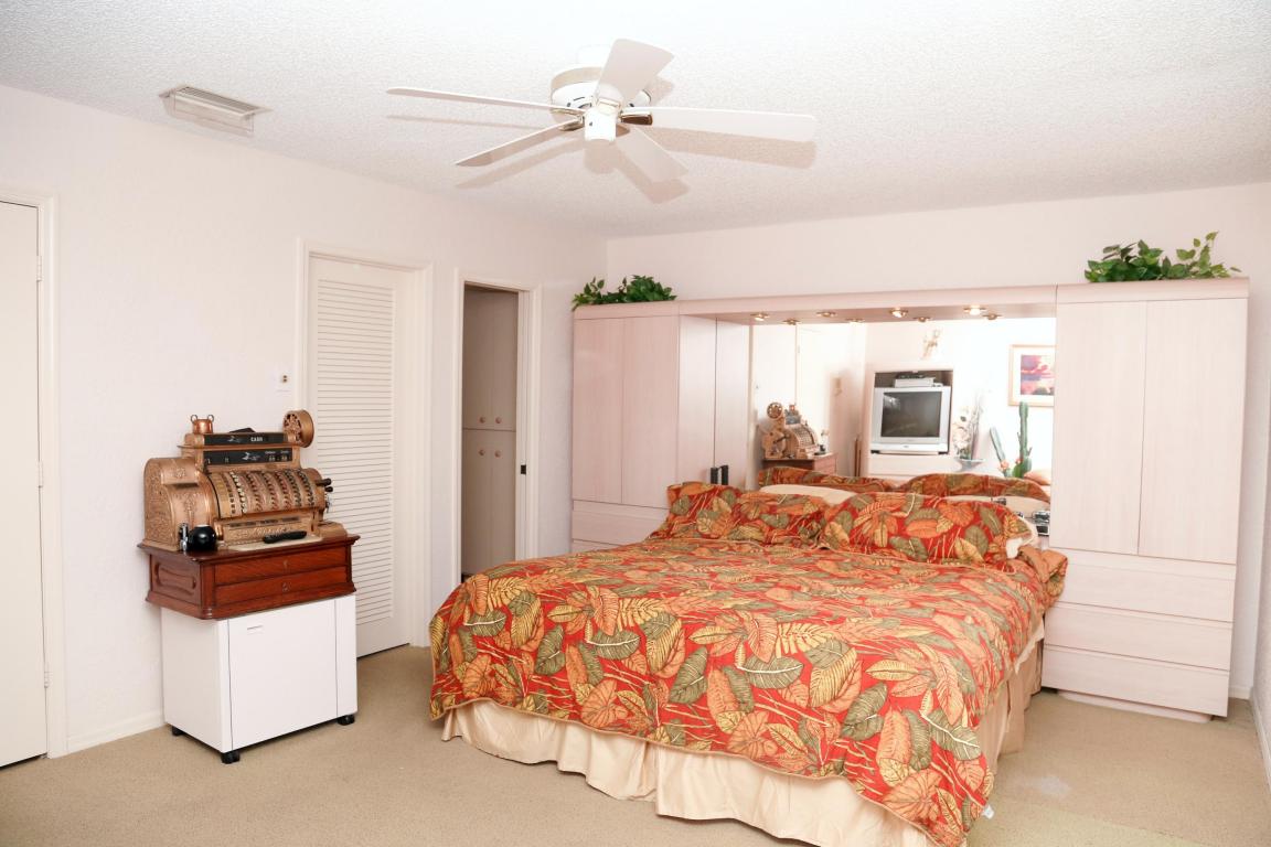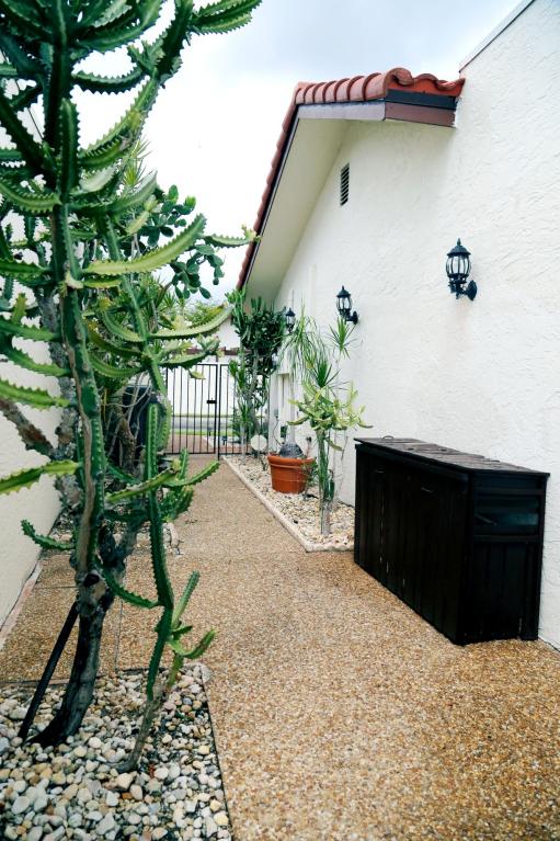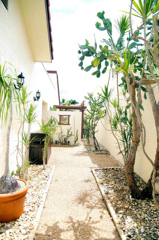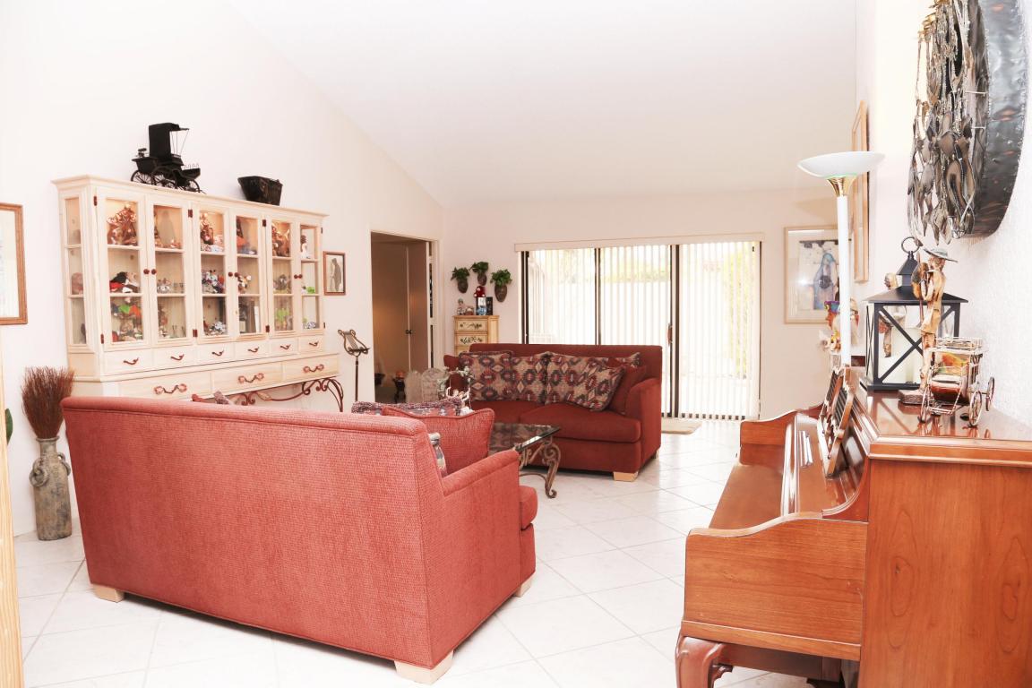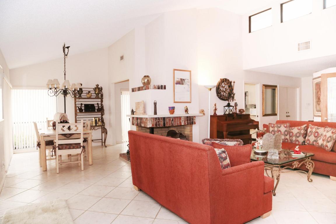 This is a three bedroom in the body of a two bedroom. Southwest inspired villa with 2 master bedrooms, 2 full bathrooms plus a separate entertaining area/den with wet bar and custom built-in office area. (Can be converted to 3rd bedroom). Home also boasts knock-down walls throughout and ceramic tile in main living areas. An open concept living/dining area features vaulted ceilings and a working fireplace. A private patio is covered and a backyard sun deck great for entertaining. Centrally located between I95 and FL Turnpike, PBIA and FLL airports, great restaurants, fabulous shopping, highly rated hospitals and all houses of worship. No rentals for the first year of ownership.