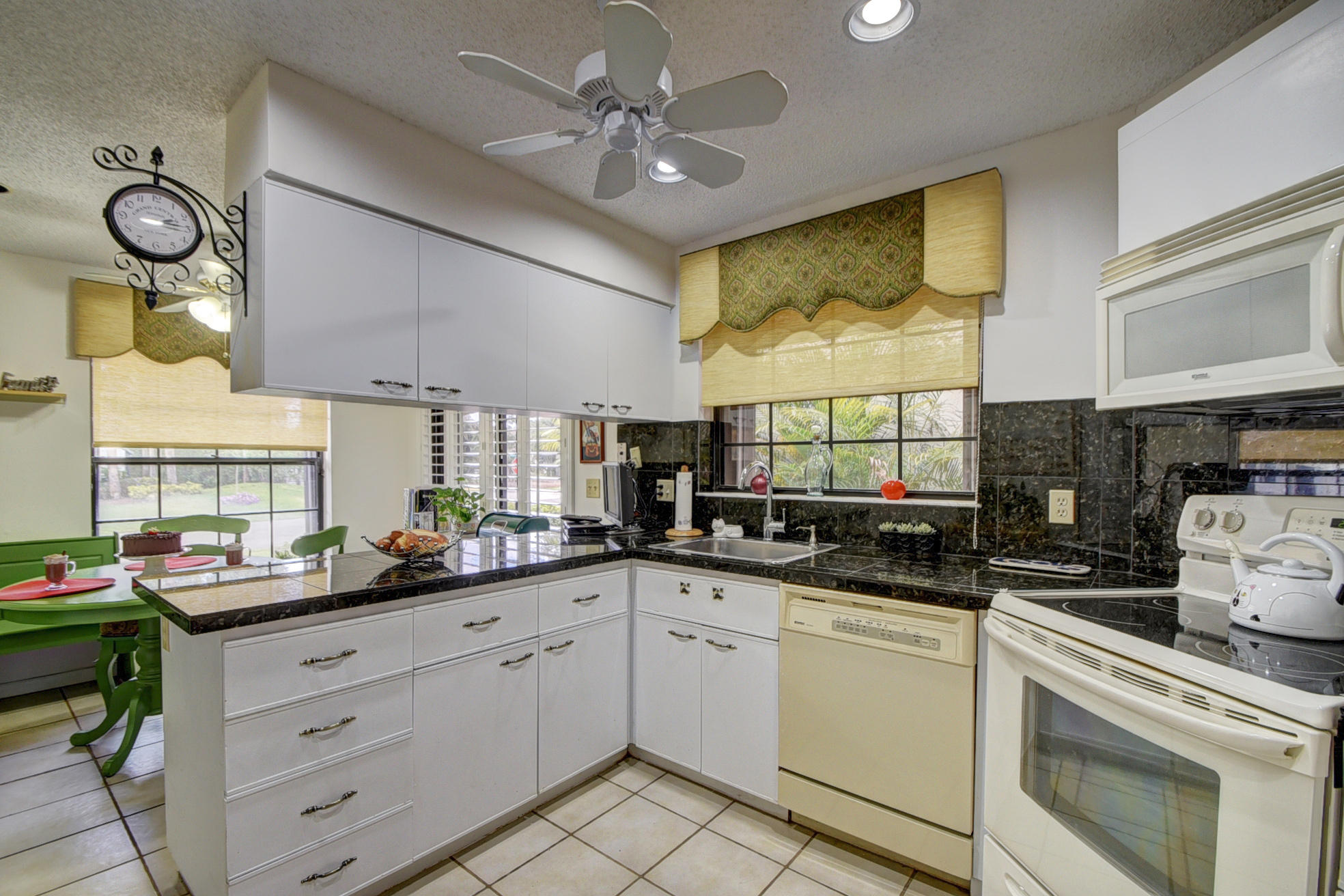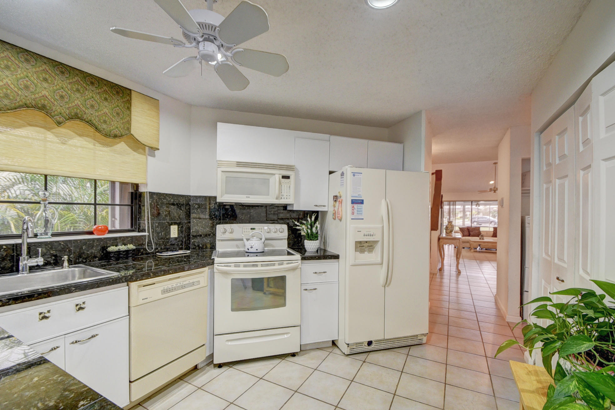 Peaceful & serene water front villa. High ceilings add to the spacious feeling. Eat-in kitchen w/granite counter tops & plantation shutters. Spacious Master Suite w/lake view is downstairs & has large walk-in closet & a sitting area. Tile in living areas and brand new carpet(a week old) in all bedrooms and staircase. newer full size washer/dryer. Lots of closets/storage. Enjoy your HUGE screened porch overlooking the sparkling lake. Large 1 car garage. Association installed new roof & gutters, painted exterior & paved roads January 2017 - Assessment is paid. Affordable HOA fee includes Basic Cable,lawn/landscaping, community pool, tennis, guard gate security, + reserves for roof & painting. Accordion Shutters/Brand new a/c & water heater/Great schools/pet friendly community.