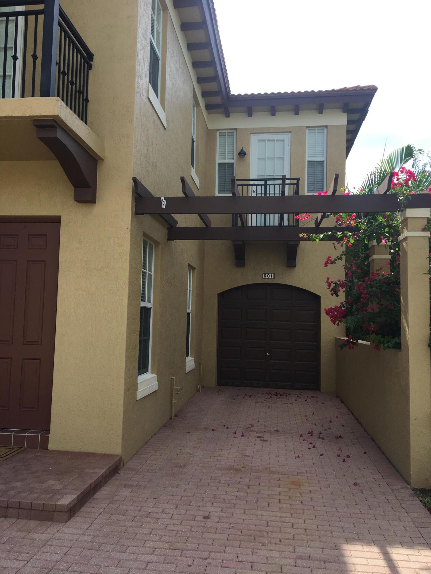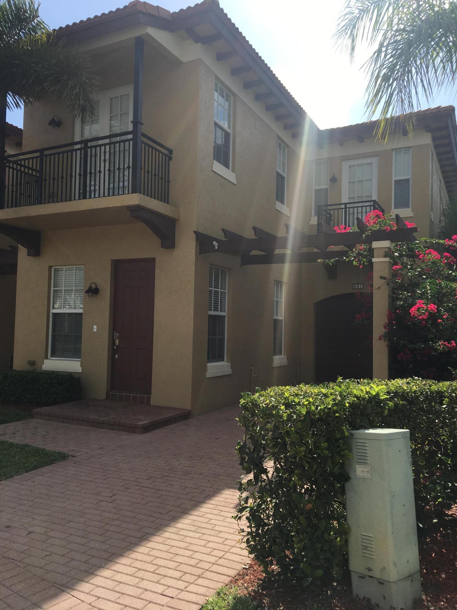 Large and spacious, end unit, 3 bedrooms 3 1/2 baths. Hurricane impact glass throughout.Community pool is across the street and is adjacent to the Emerald Dunes Golf Course.Enjoy the balcony off of the master bedroom. Master also features dual sinks and his and her walk in closets. Each bedroom has its own balcony and access to it's own bathroom.Located close to the FL Turnpike and I-95