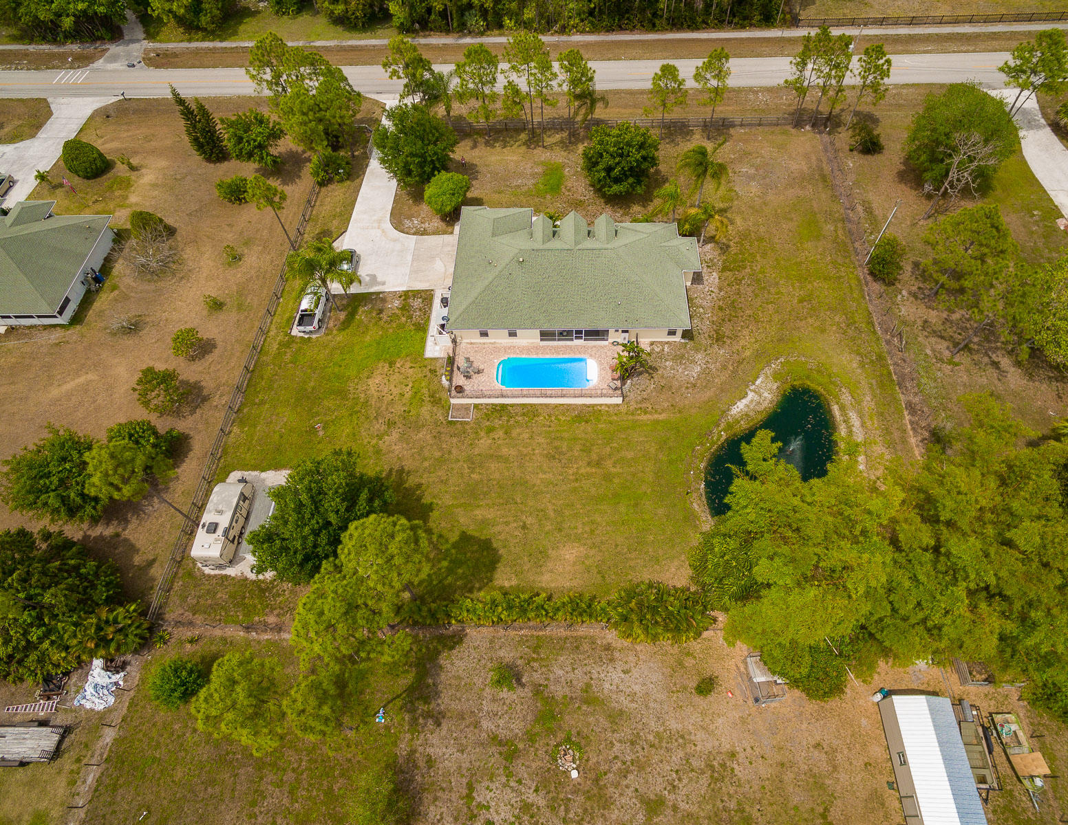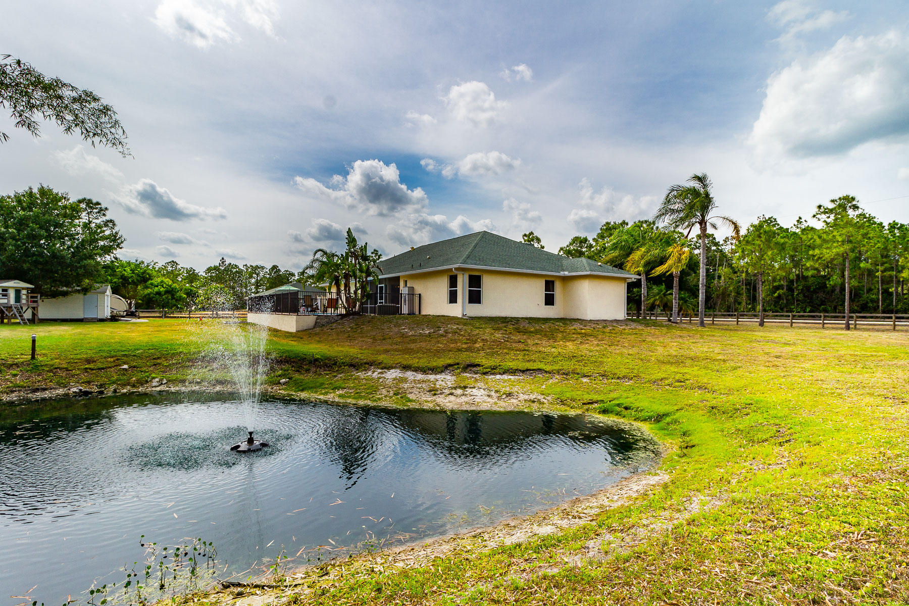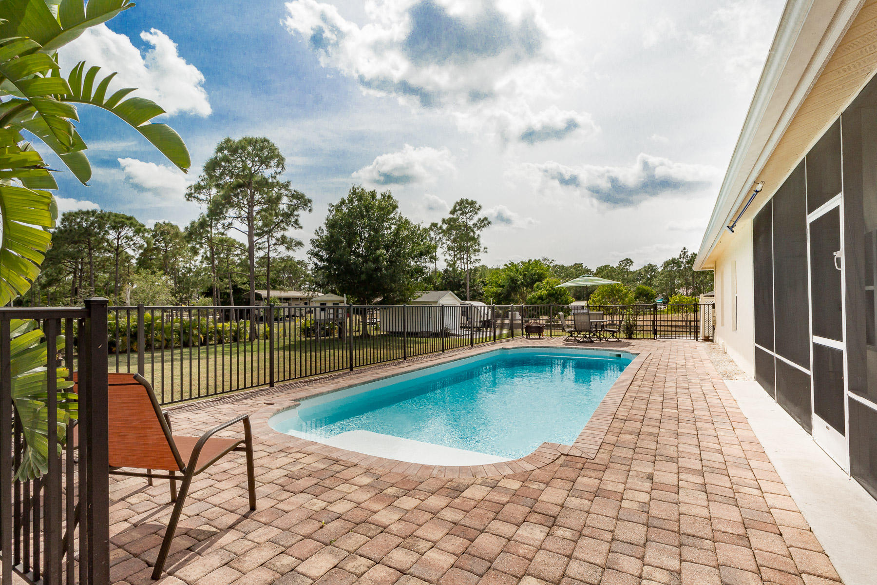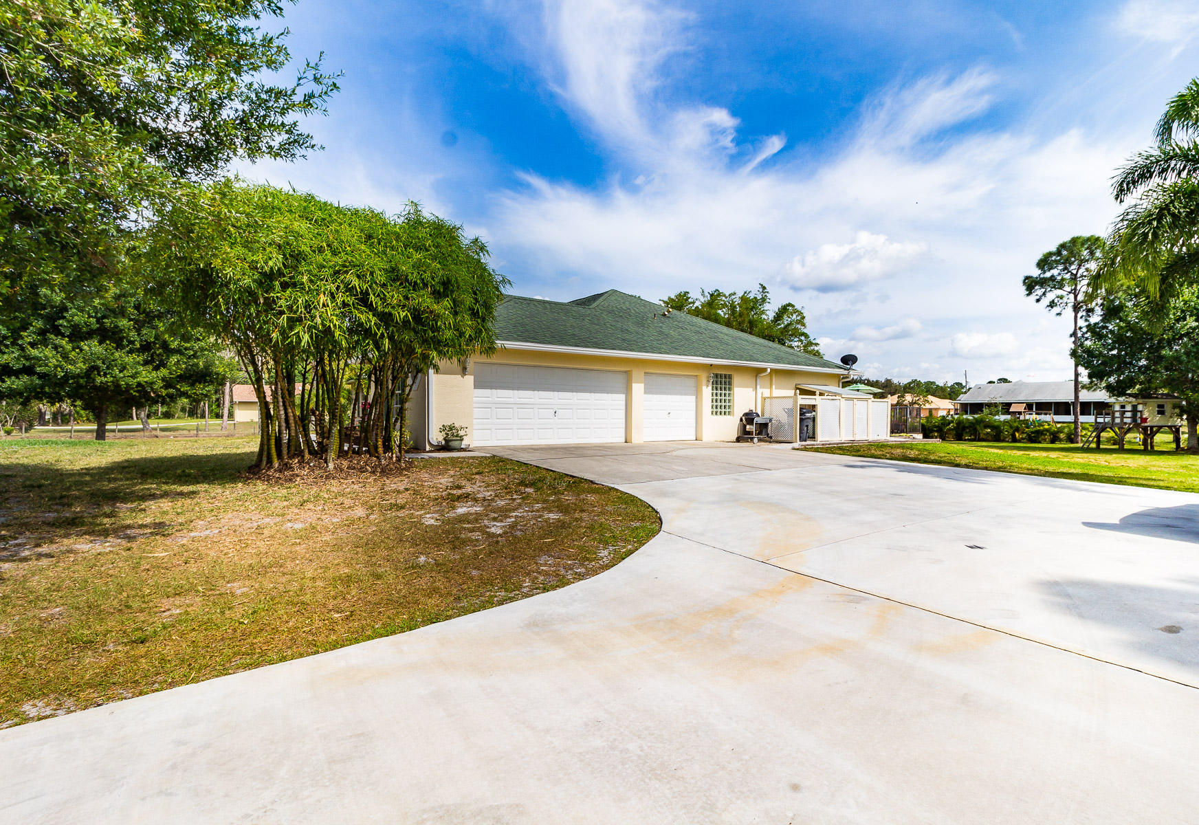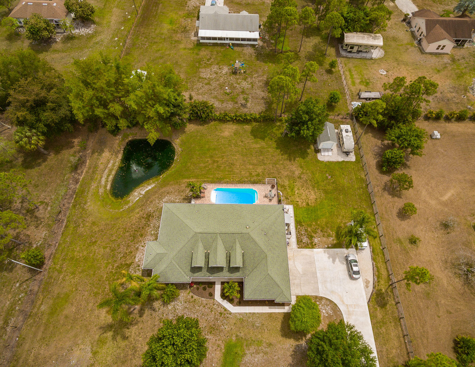 4 bedroom, 3 bath home with pool on paved street! What more could you ask for? Lushly landscaped 1 acre lot and a 3 car garage! Motorized gate for added privacy & security leads to a long extended concrete driveway. There is even a shed and playhouse for the kids! Kitchen offers large snack bar and full back splash. Appliances 3 years old. Water system is top of the line and only 2 years old. Paved pool deck elevated and fenced. One pond stocked with fish. Master bath has new light fixtures and vanity.