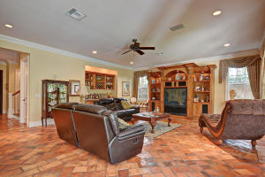 From gorgeous landscaping and curb appeal to flawless home maintenance to unique Spanish flair, this home has it all! Set on a corner lot in one of Boca's most desirable areas, this 4 bedroom, 3 1.5 bath home is sure to please! Enter the home through beautiful wooden solid double doors into the spacious foyer and hang your in the Northern style coat closet. Off to your left is the private guest suite. To the right is the formal dining room with solid wood floor. The main level boasts a powder room and French roof tile floors. In the spacious living room is the built-in wet bar with handmade custom cabinetry by Geoff Chater in Leek, Staffordshire, England. The matching built-in entertainment center and whole house sound system complete the room for a cozy yet elegant feel.