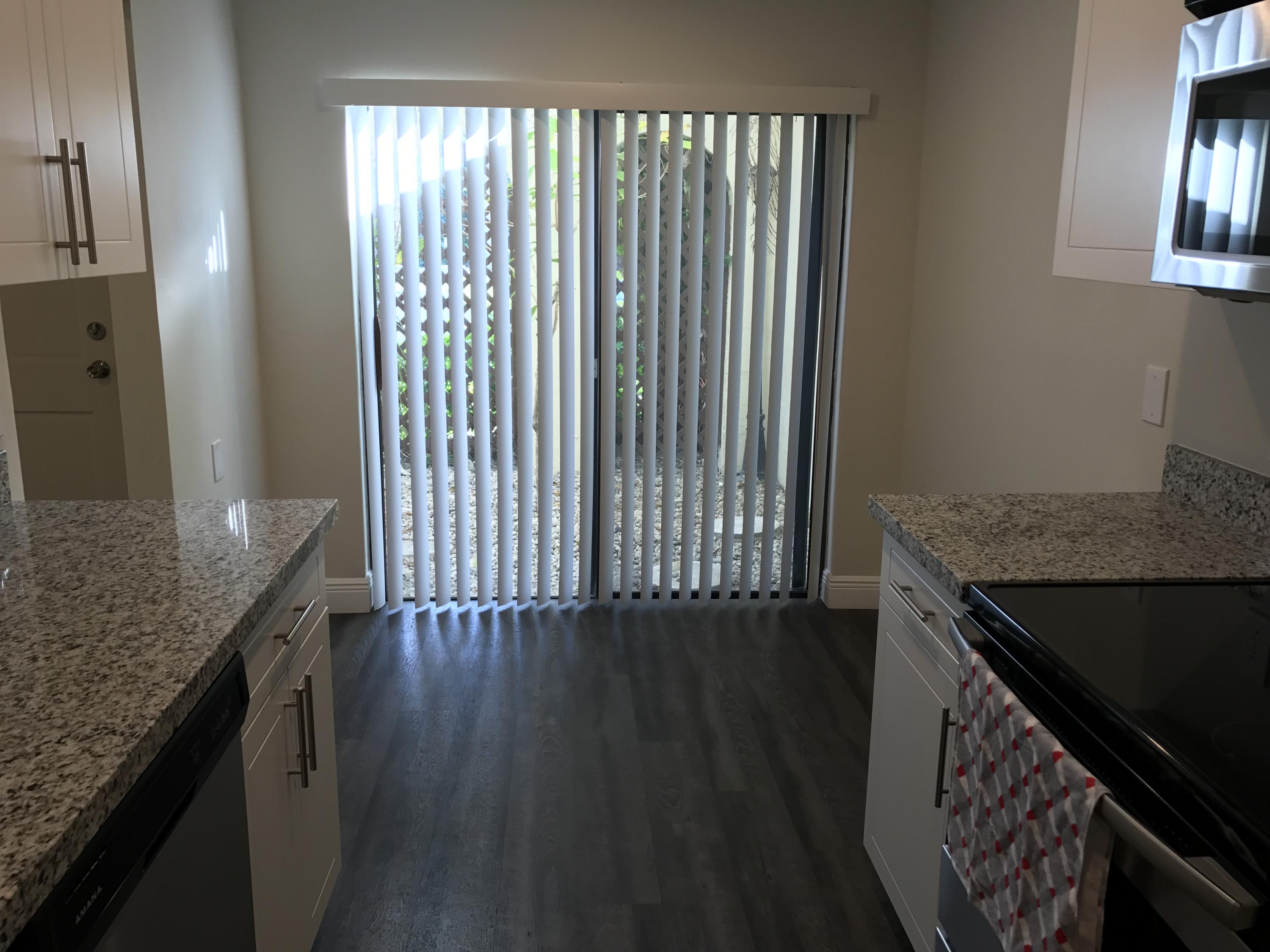 Come and see this contemporary beautiful totally remodeled condo. Amazing gray laminate throughout the entire apartment gives it incredible amplitude. Garden access through sliding doors with roller shutters allow to enjoy the unique Florida weather. Brand new custom kitchen with granite countertops and brand new stainless steel appliances. All vanities are of European style, clean and sleek, both upstairs vanities are dual. Huge walking closet in master, additional and convenient storage space. Close to major shopping, beaches and highways. Community pool and close to great golf courses. This is a great place to call home. A great 55+ community for the active young at heart