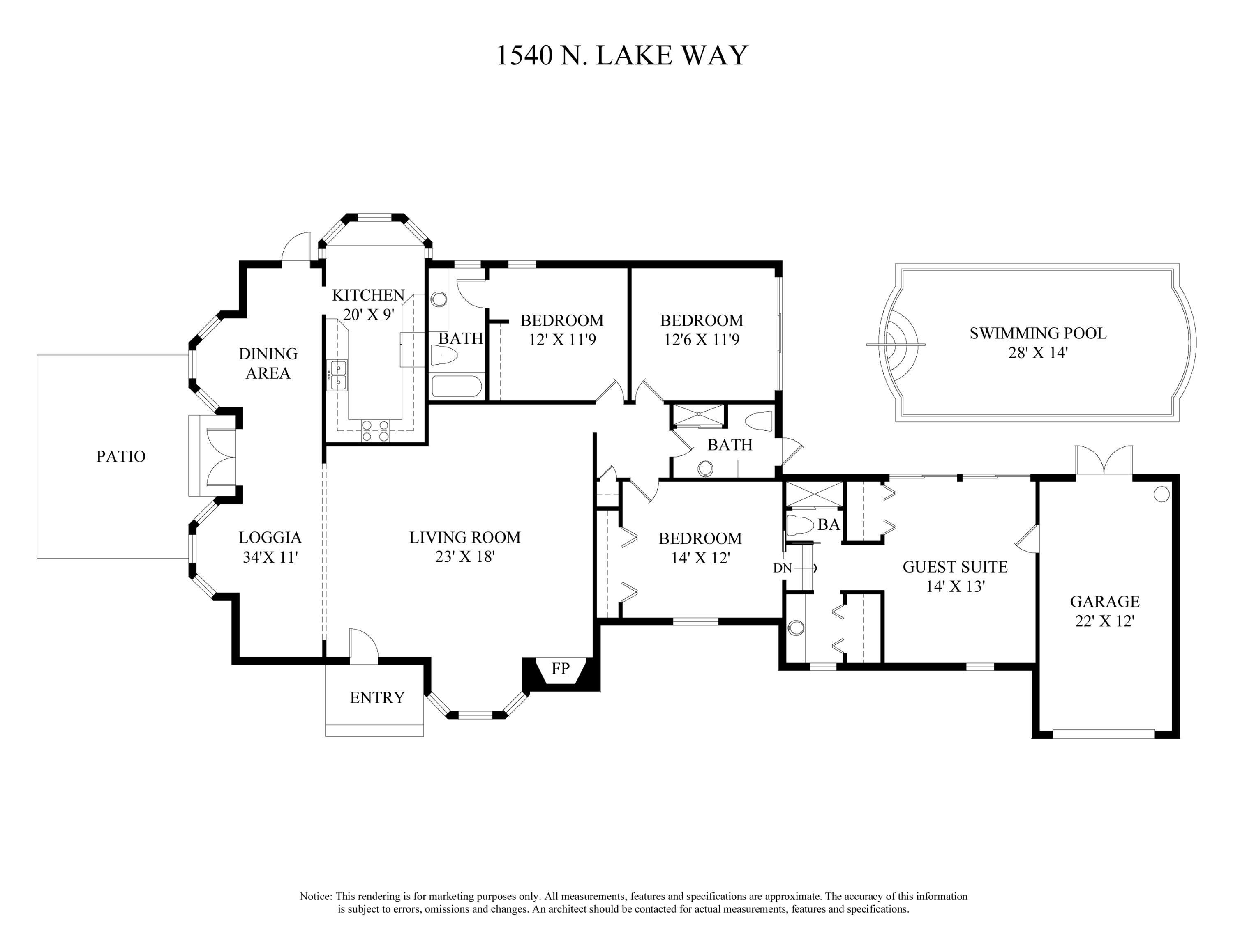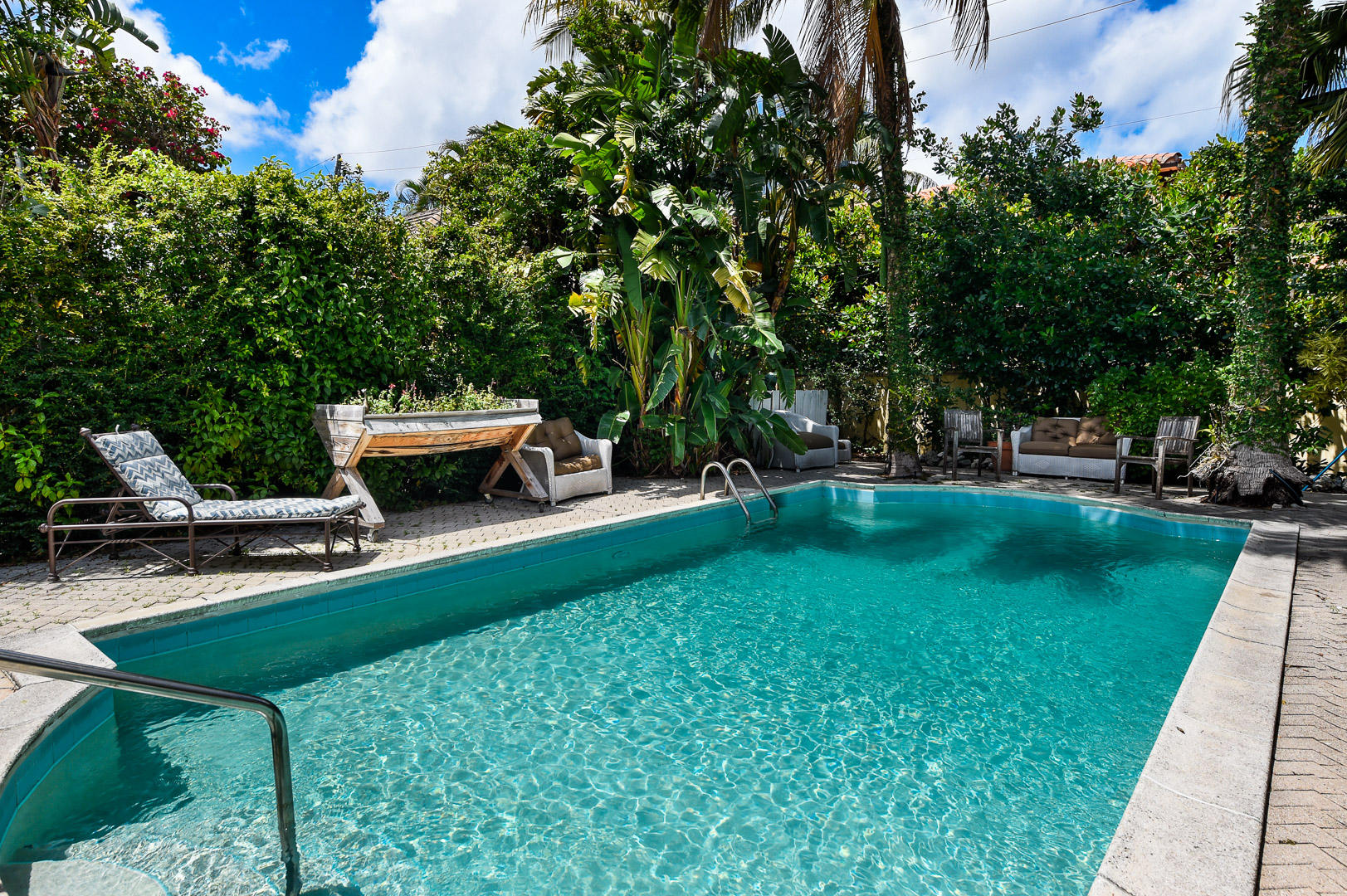 Charming light and bright 3BR/3BA Beach Bungalow with fireplace, garage, and large pool. Located at the corner of Caribbean Road and North Lake Way - great North End location with beach access. Lot size approximately 10,000 square feet.