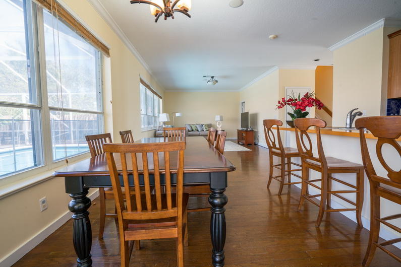 Fabulous large pool home with home theater, hurricane screen windows and total fenced backyard. This impressive 4 bedroom (plus bonus room upstairs), 2 1/2 bath home is loaded with top of the line upgrades. Included is a Media Room with 120 inch HD screen and projection system. All bathrooms remodeled with marble throughout, hardwood plank floors cover the entire house, custom kitchen with butcher block counters, natural cherry cabinets, and slider drawers with Stainless steel French door refrigerator and dishwasher, and new stove and microwave.