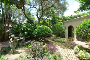 Mizner-style mini estate nestled in the lushly landscaped historic district of Old Floresta. Unique architectural arches and niches throughout this 1-story 3bed/3bath spacious home with open flowing floor plan situated on one of the largest lots in the neighborhood. Open kitchen- great for entertaining, with stainless steel appliances, gorgeous wood cabinetry and large pantry. French doors lead from family room to the side patio. Huge bonus media room with brand new TV, surround sound and built-in (all included). Large bedrooms and plenty of closet space. Sitting area in master suite. New A/C, Roof 2007, High Impact doors and windows throughout. Corner lot and large backyard...room for a pool!
