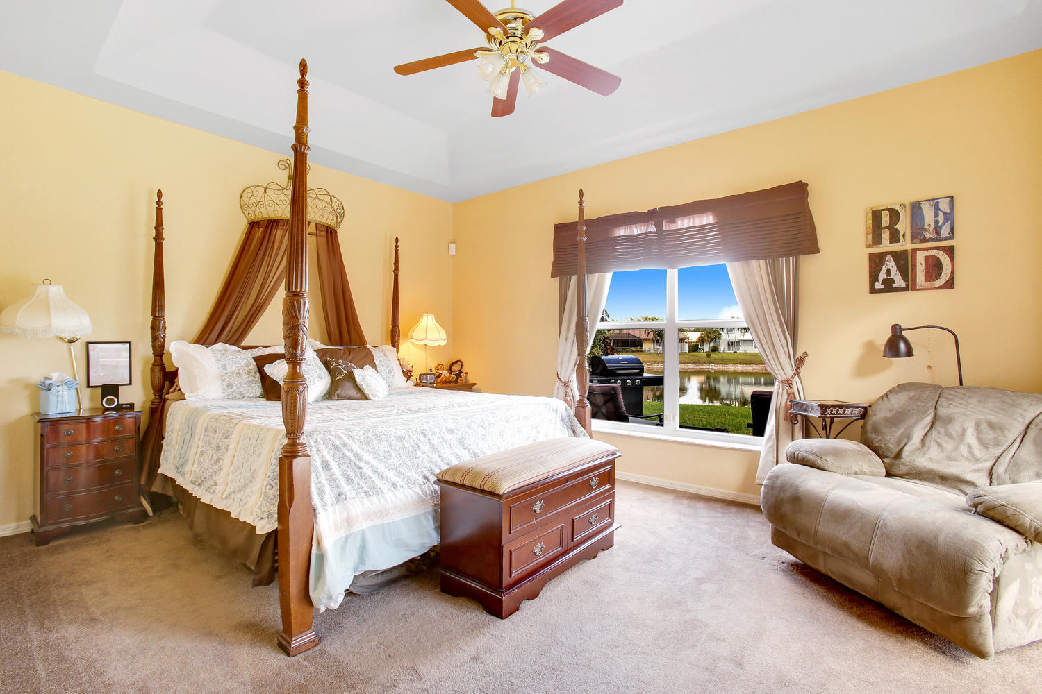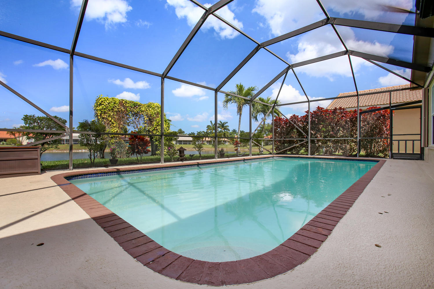 Double water views immediately draw your eye to the backyard of this stunning 4-bedroom home in west Boca Raton. The expansive lake views can conveniently be seen from all the main rooms of this ideal family home. High ceilings and warm neutrals paint the house in bright natural light. The split floor plan accommodates any family, and is perfect for entertaining with ample space inside and out. The kitchen has been renovated with stainless steel appliances and granite countertops to add to the luxurious feel of the home. A screened in pool deck, covered seating area with ceiling fan, and exposed patio make bbq'ing a breeze. Enjoy the South Florida lifestyle in the ideal community with a location that is both private and in the heart of Boca Raton!
