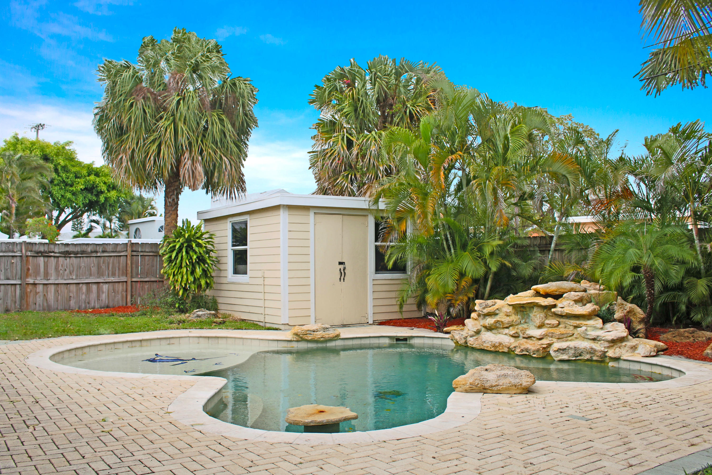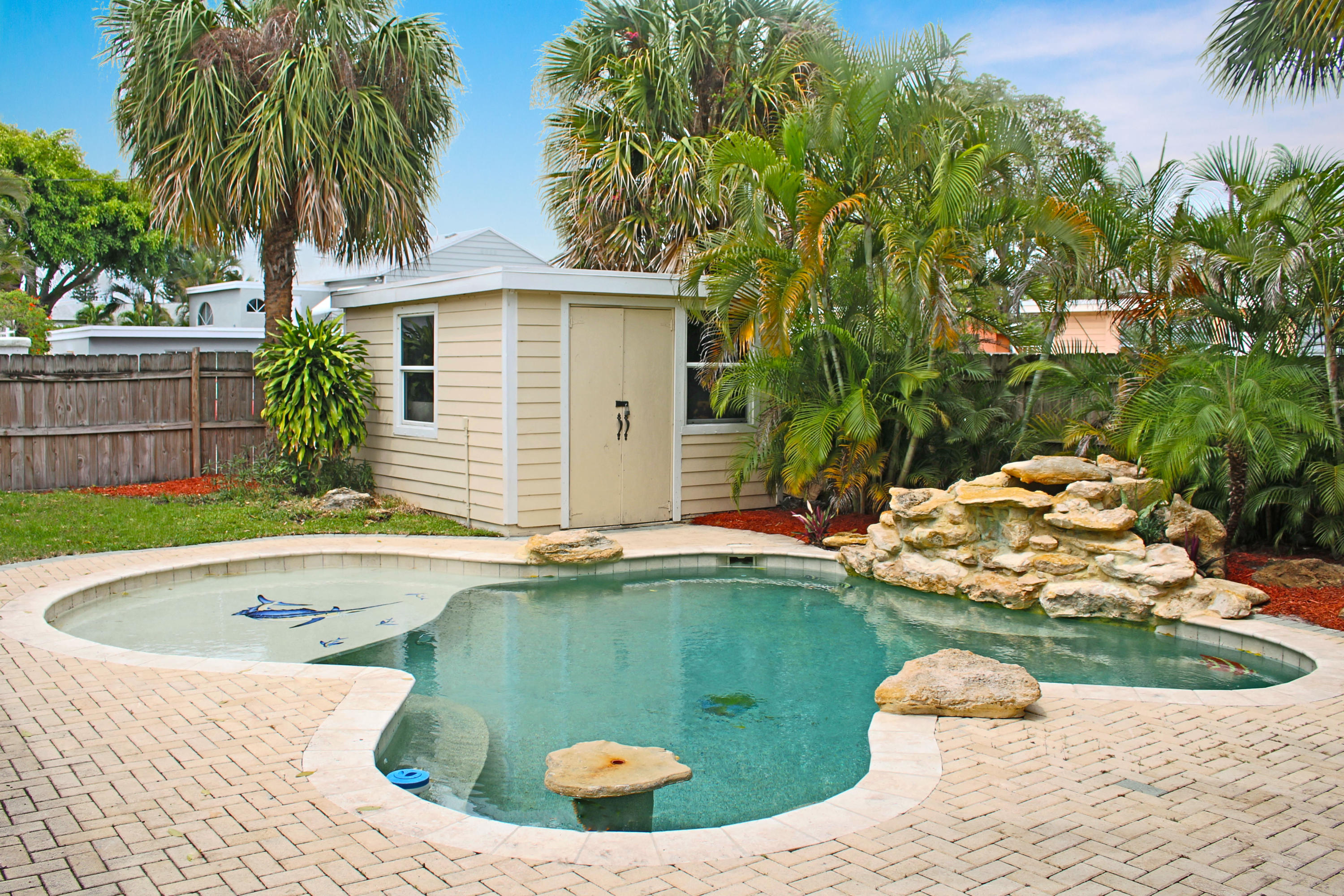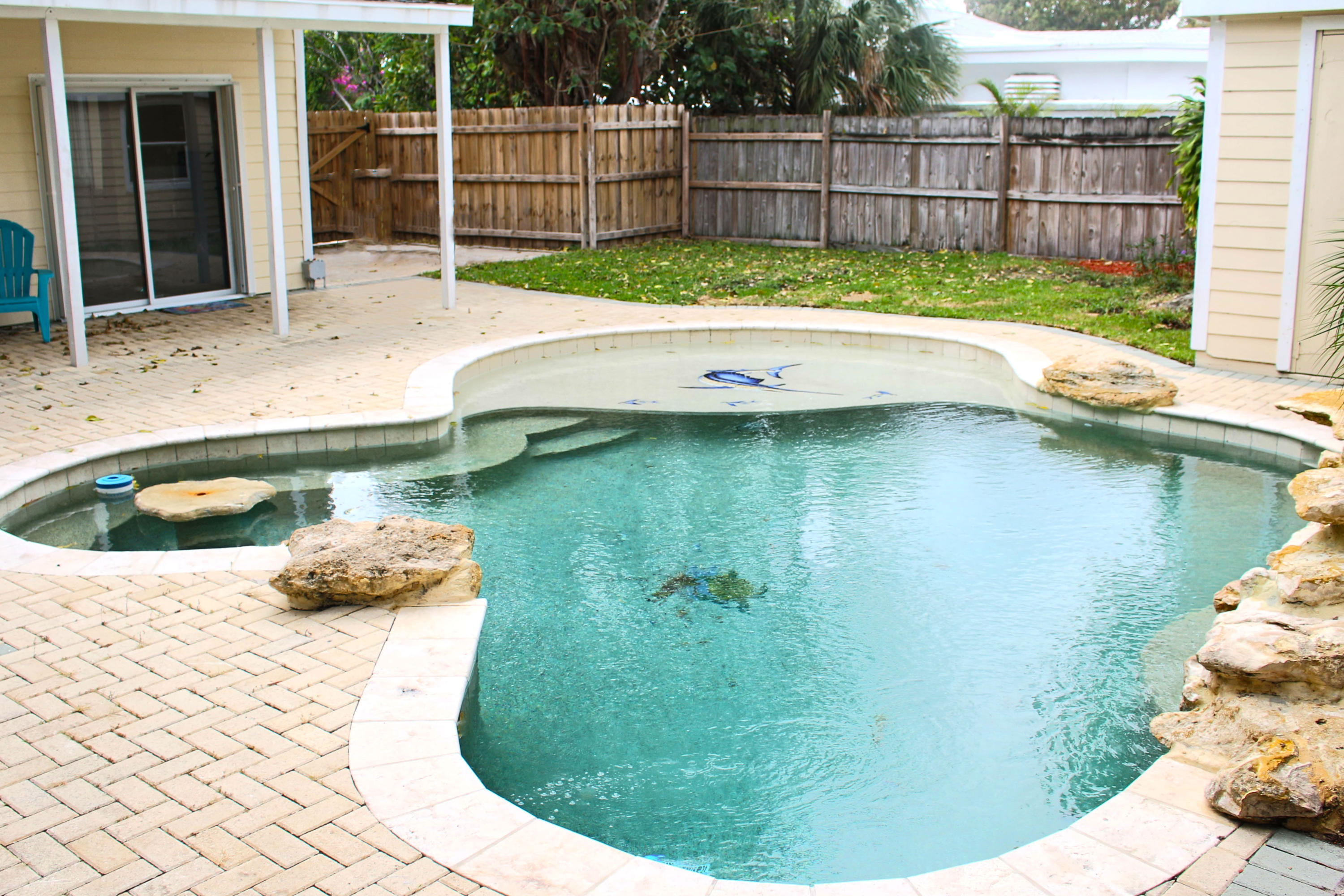 Wow, what a great opportunity to own a pool home in an excellent location! This centrally located home in the Forest Ridge Park neighborhood of West Palm Beach has no HOA. You'll love the charm of this updated mid century home. With 3 bedrooms, an open living area with vaulted ceiling, plus an additional family room, you will have plenty of space. Plus, the large backyard with pool is entirely fenced. The pool is astounding, it is a unique shape with custom tile work and beach entry. There is even an in-pool bar/seating area which you'll love having on hot summer days. There is a shed for storage and lots of space for a grill and outdoor furniture. You'll love the open kitchen and dining area which has all updated cabinets and stainless steel appliances, and even a huge pantry closet too!
