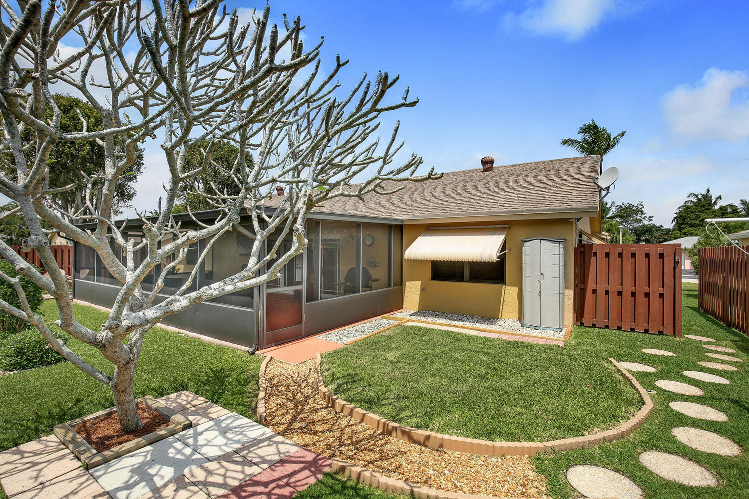 This home exudes pride of ownership from the minute you drive up and see the large,impeccably maintained corner lot! Stone look tile & laminate floors throughout. Dreamy eat-in kitchen has custom honey maple cabinets w/42'' uppers, silestone counters,stainless double sink, tumble marble backsplash, mullion cabinet doors w/accent lighting plus under cabinet lighting. Large pass-thru opens to spacious dining room. Split bedroom plan for extra privacy. Vaulted ceilings. French doors lead out to the 15'x30' foot screened porch where you can relax and enjoy the beautifully landscaped backyard. Impact windows and shutters provide hurricane protection. Master Suite has updated bathroom with wood vanities,granite counters, walk-in closet & a dressing area.Low HOA fees! Community pool & playground.